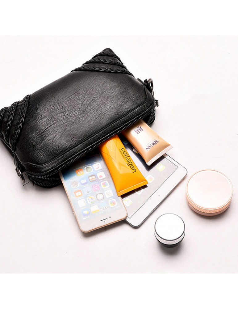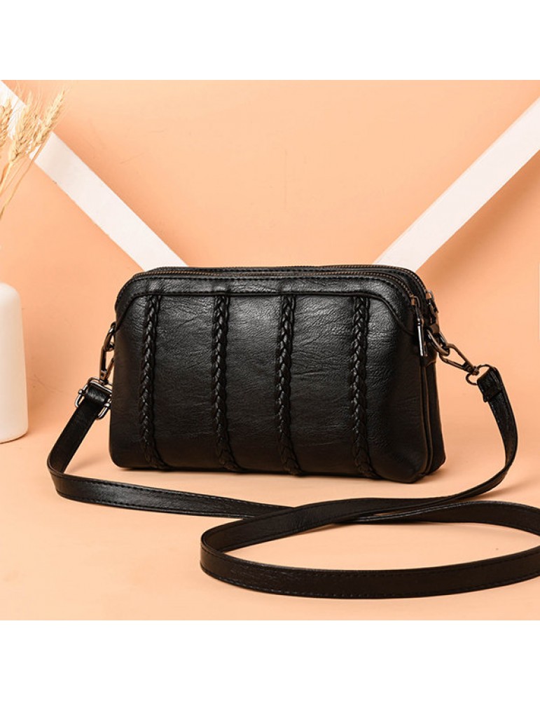 Women Vintage Soft PU Leather Crossbody Bag Solid Double Layer Shoulder Bag