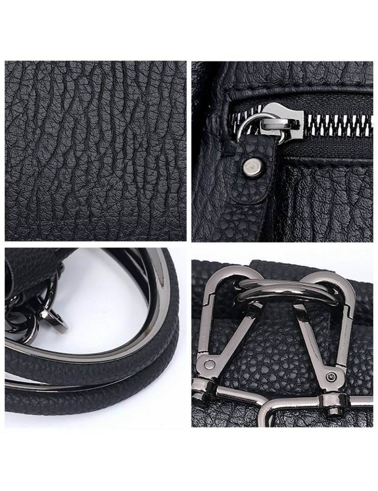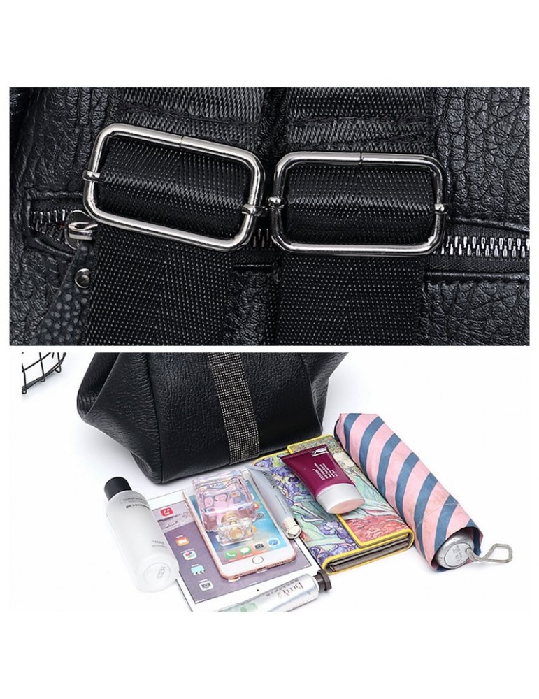 Women Faux Leather Black Multifunctional Shoulder Bag Backpack Handbag