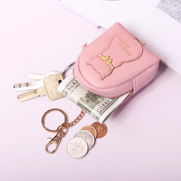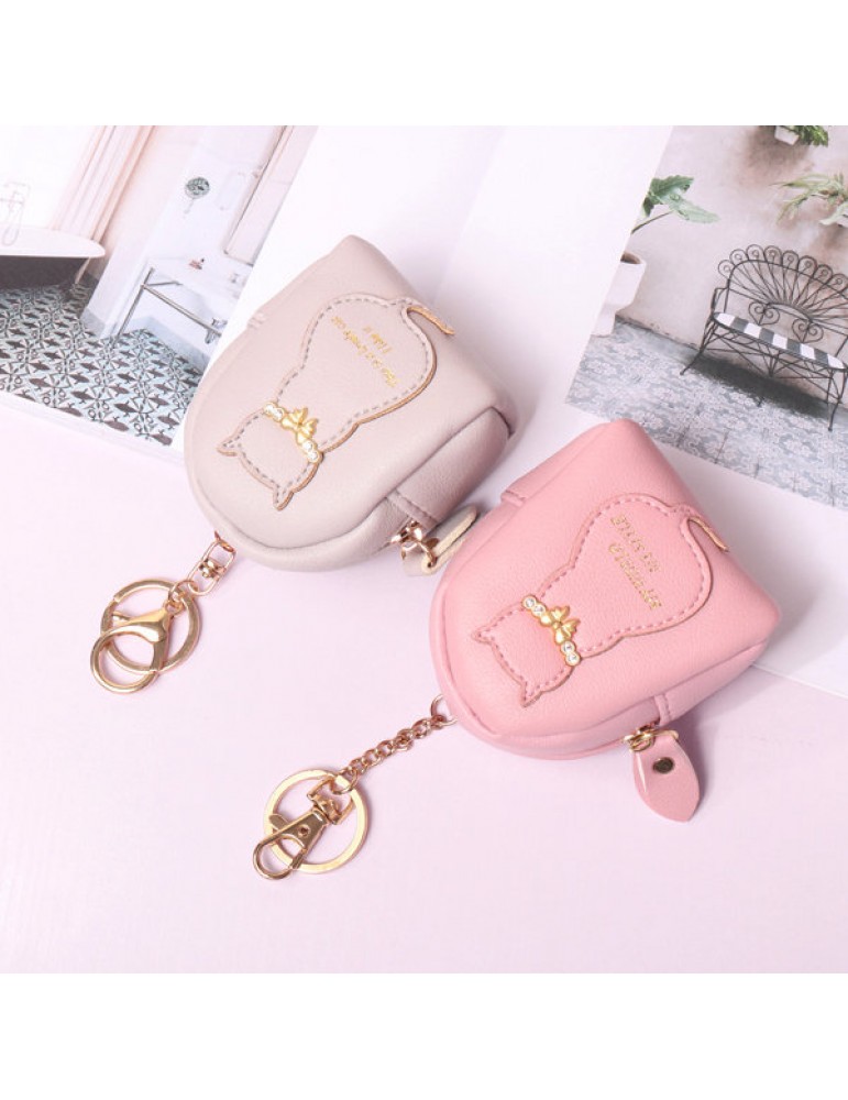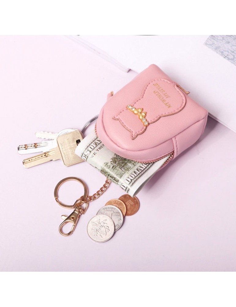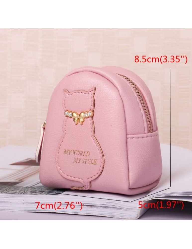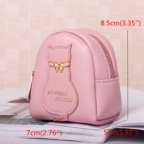 Women Cute Cat Coin Bag PU Leather Animal Shape Key Bag