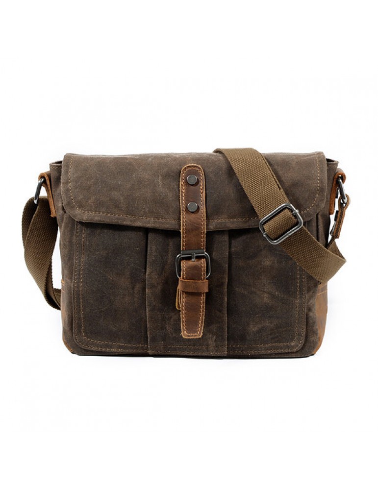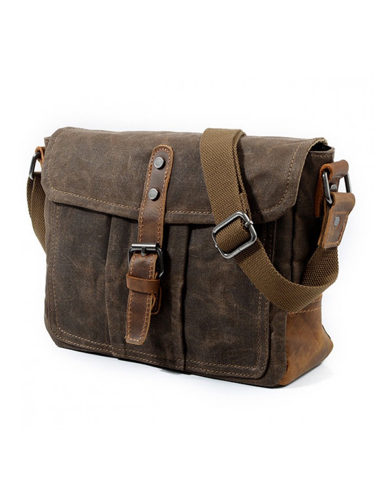 Vintage Canvas Genuine Leather Waterproof Shoulder Bag Messenger Bag Crossbody Bag For Men