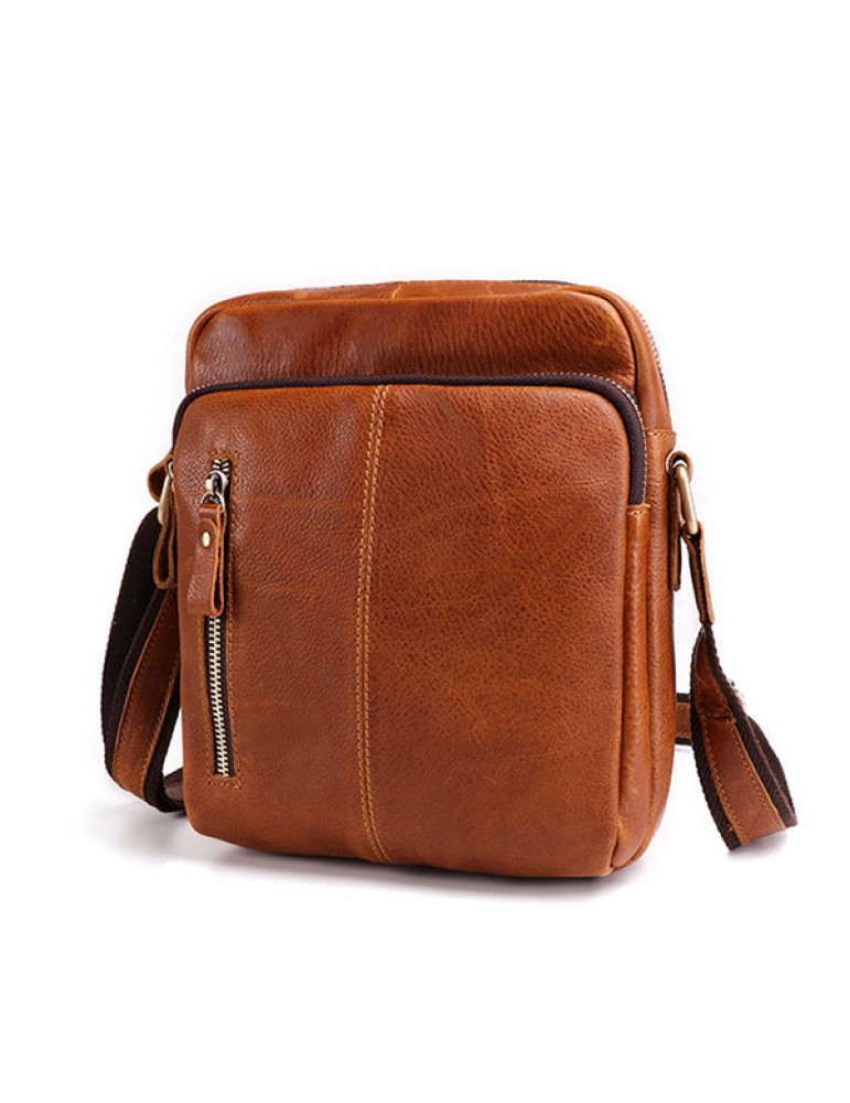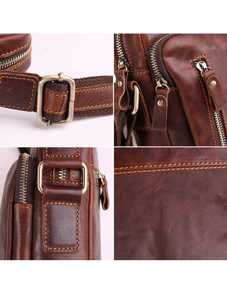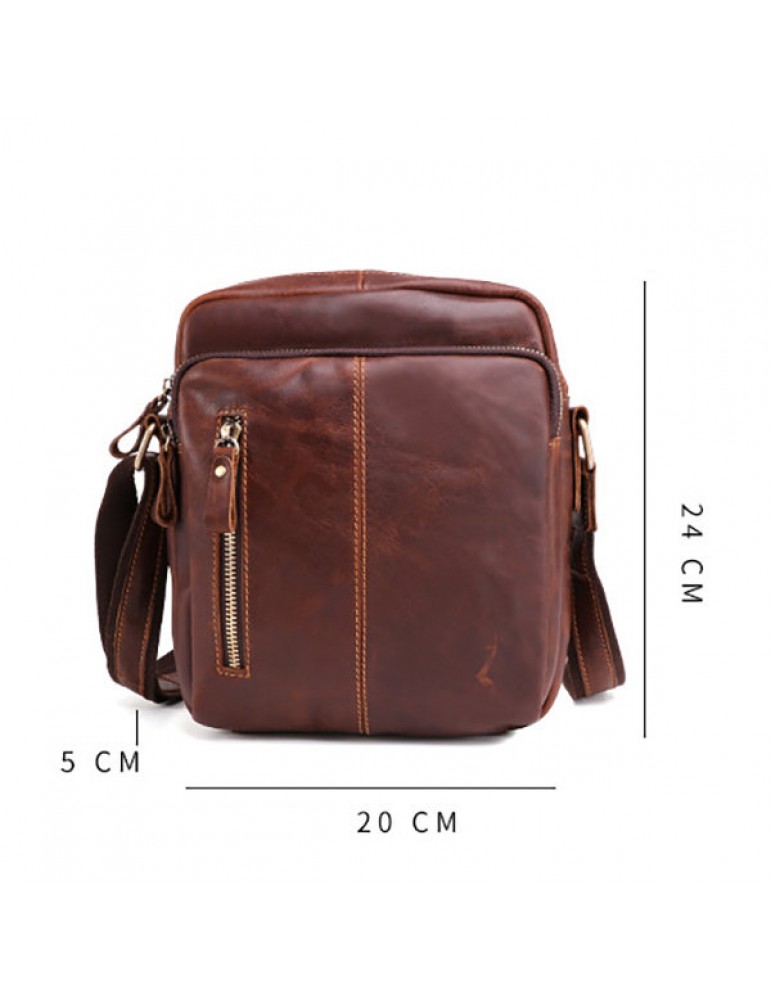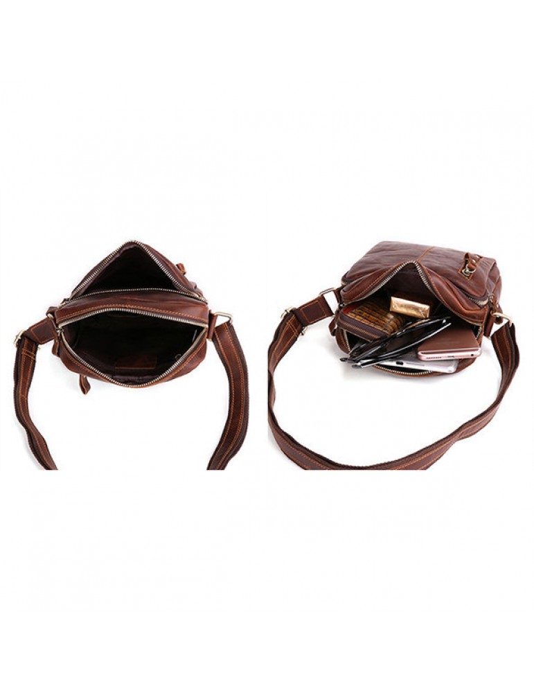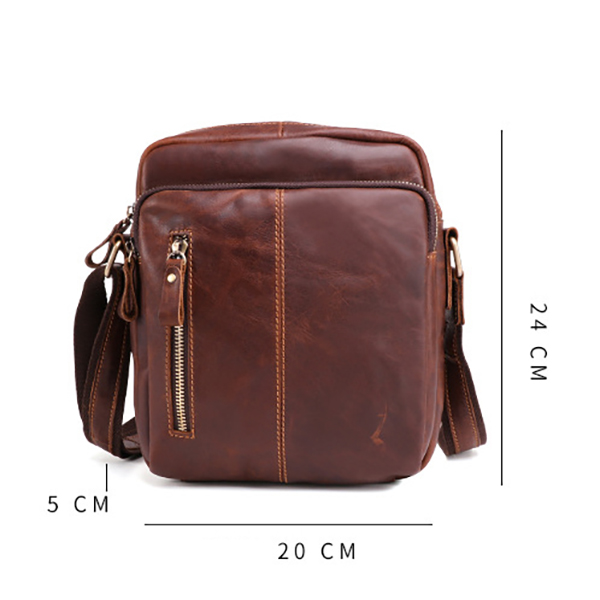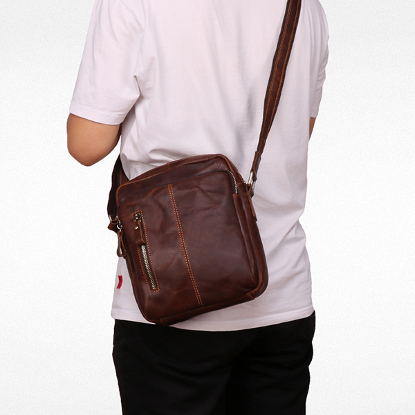 Men Vintage Genuine Leather Solid Crossbody Bag Shoulder Bag