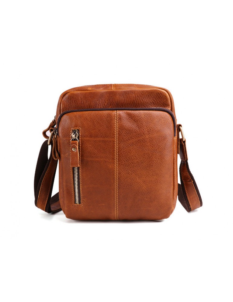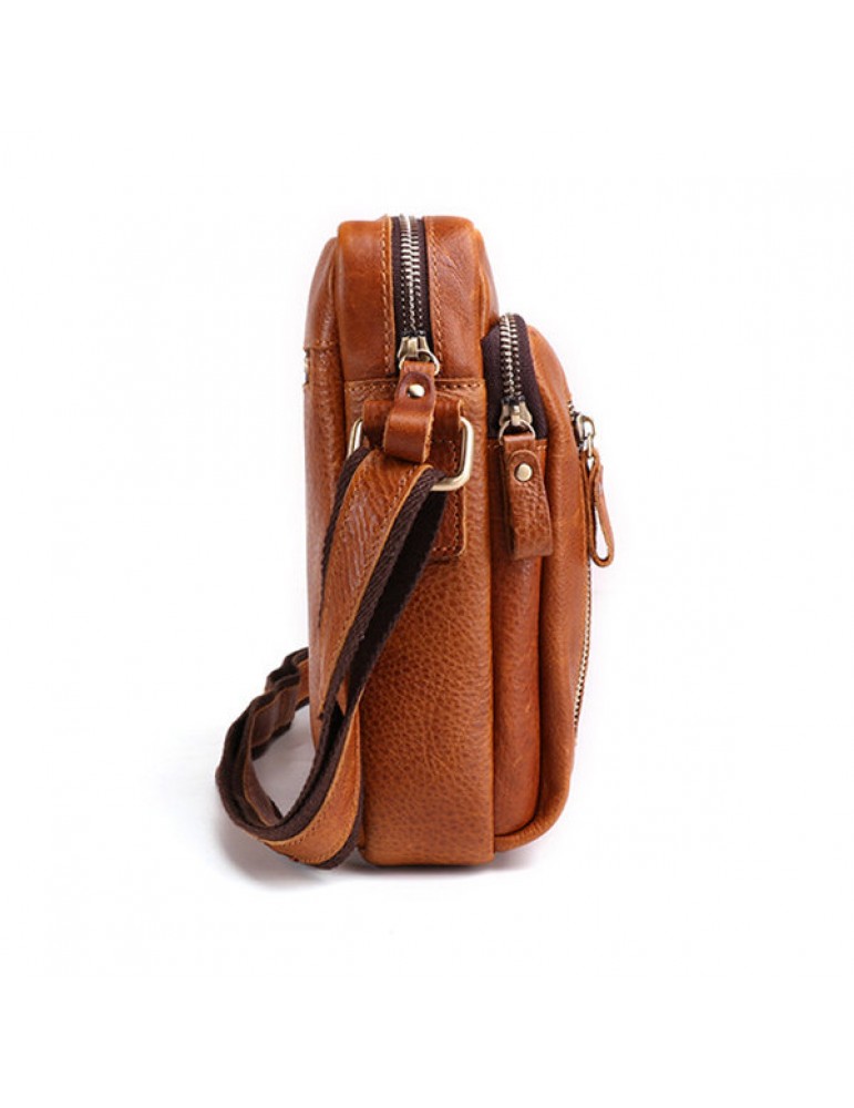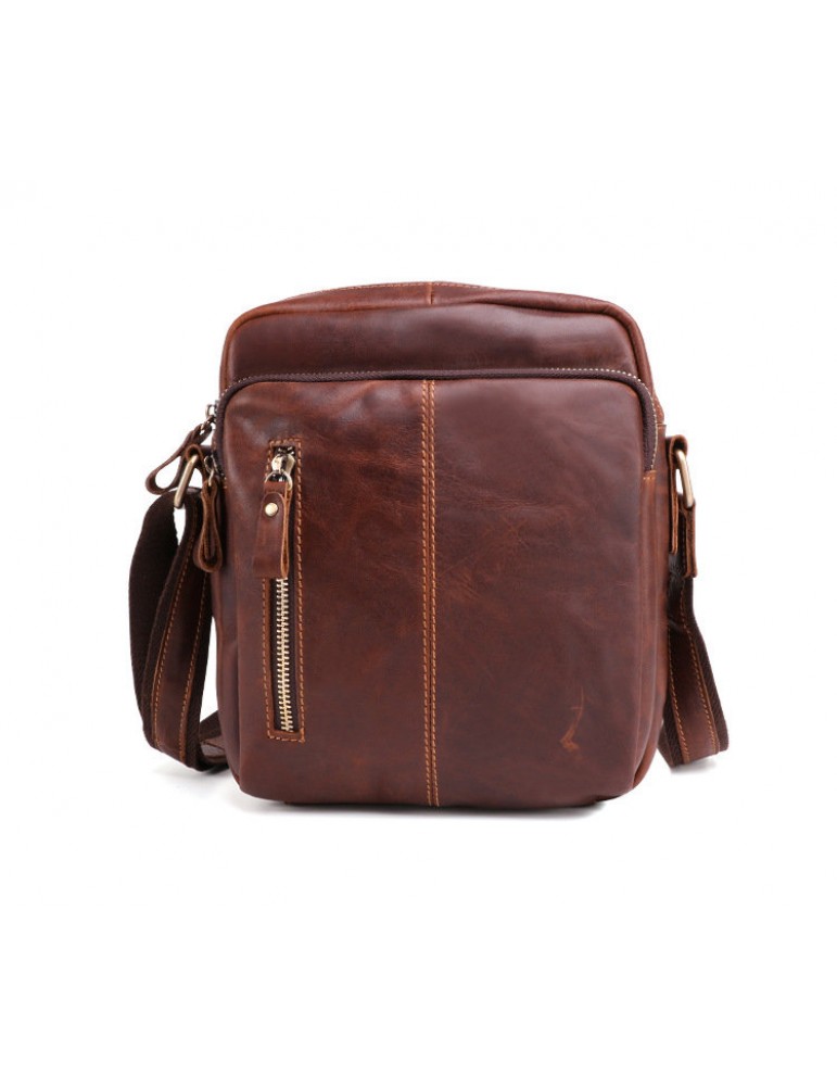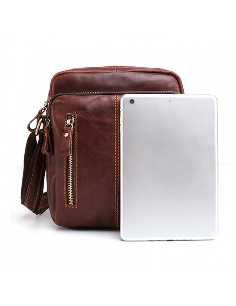 Men Vintage Genuine Leather Solid Crossbody Bag Shoulder Bag