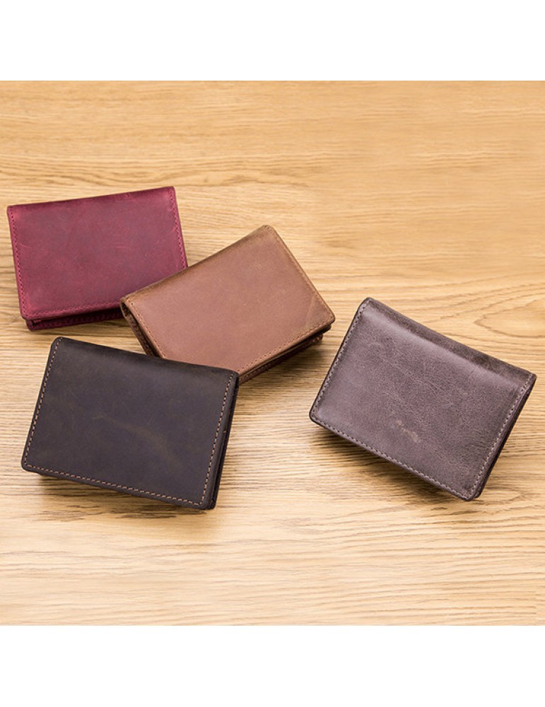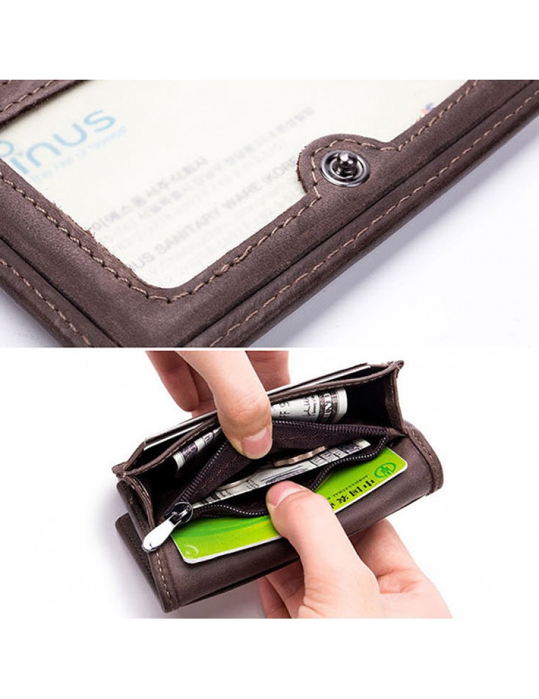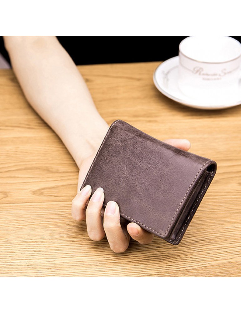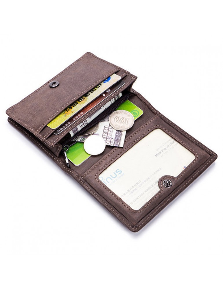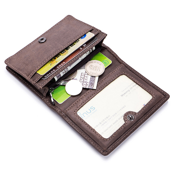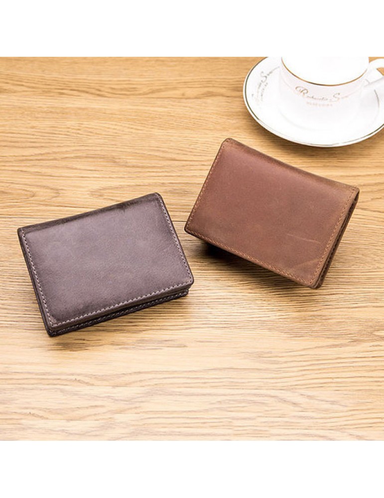Men Genuine Leather Short Wallet Coin Purse 2 Card Slot Card Holder