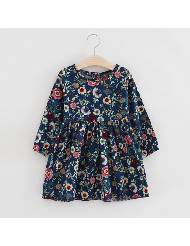 Flower Girls Dresses Long Sleeve A Line Casual Dress For 3Y-11Y