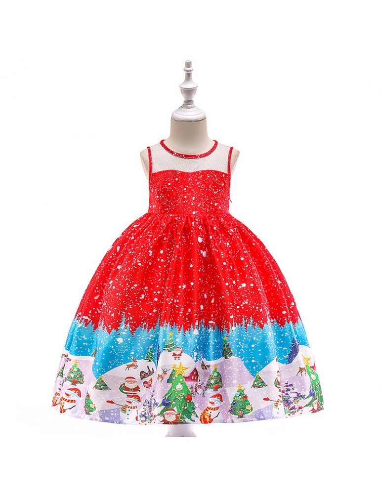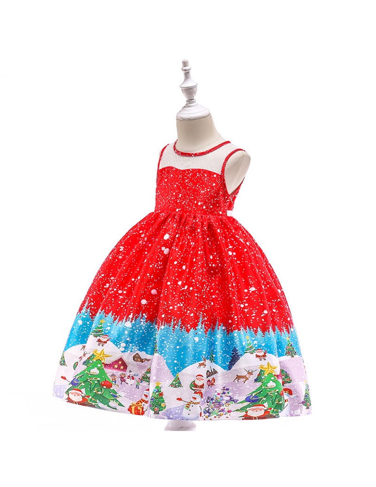 Girls Dress Christmas Eve Xmas Snow Holiday Party Dresses For 3Y-13Y