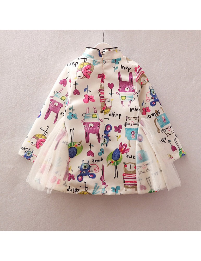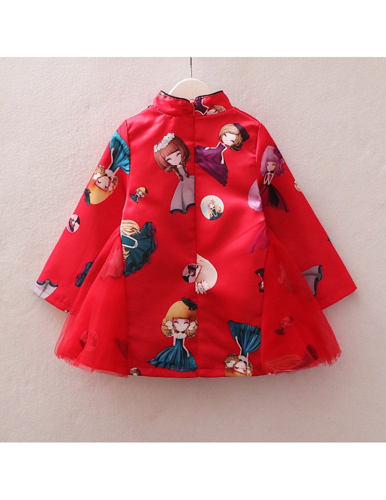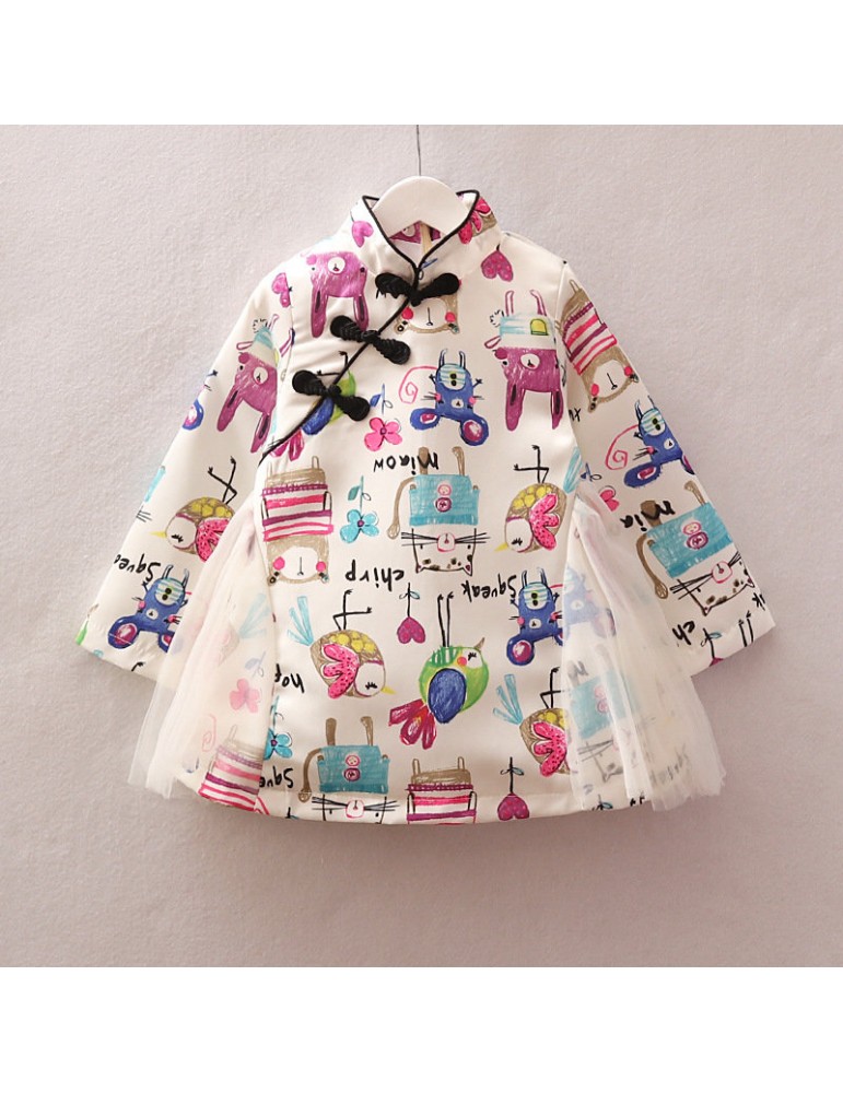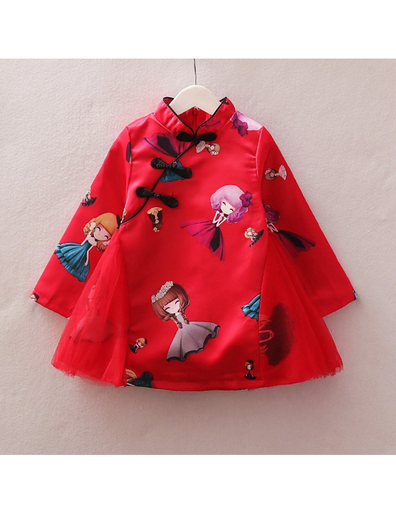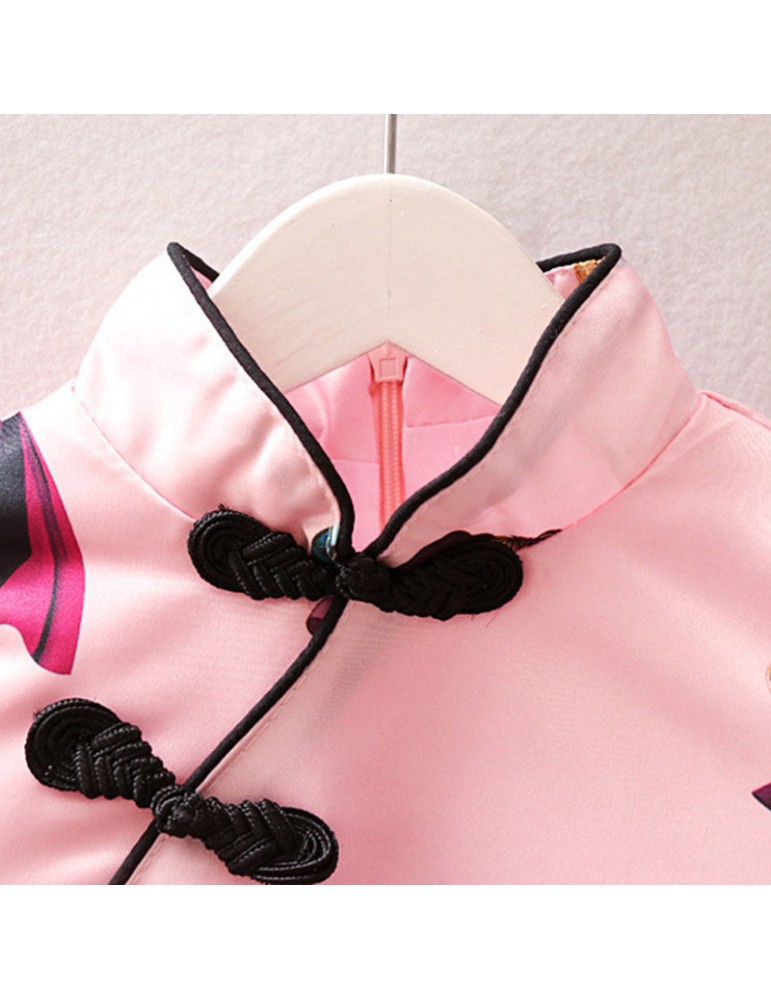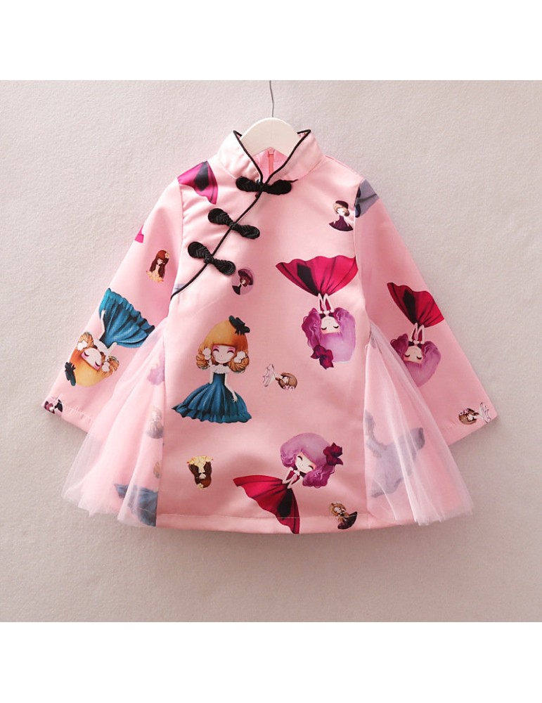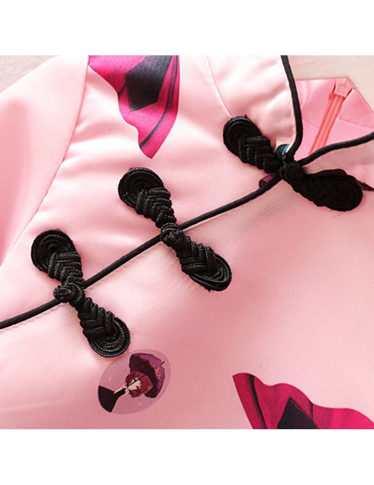 Vintage Chinese Style Toddler Girls Printed Dress For 2-7Y