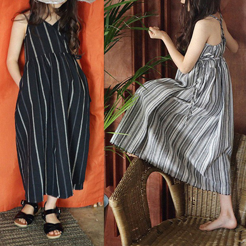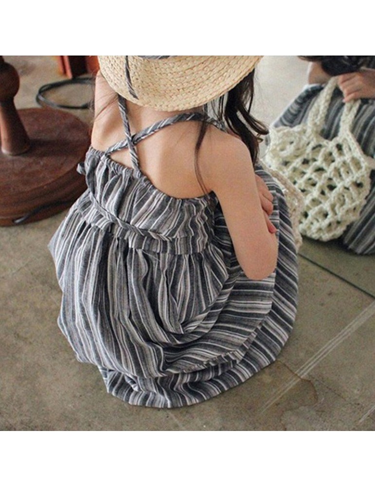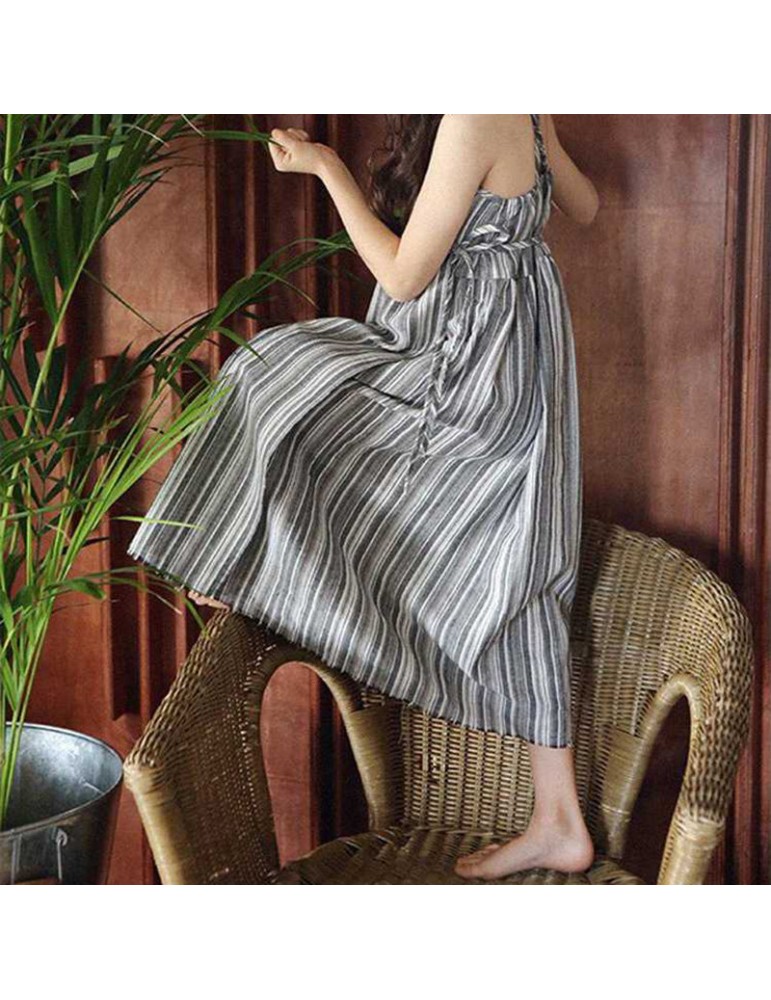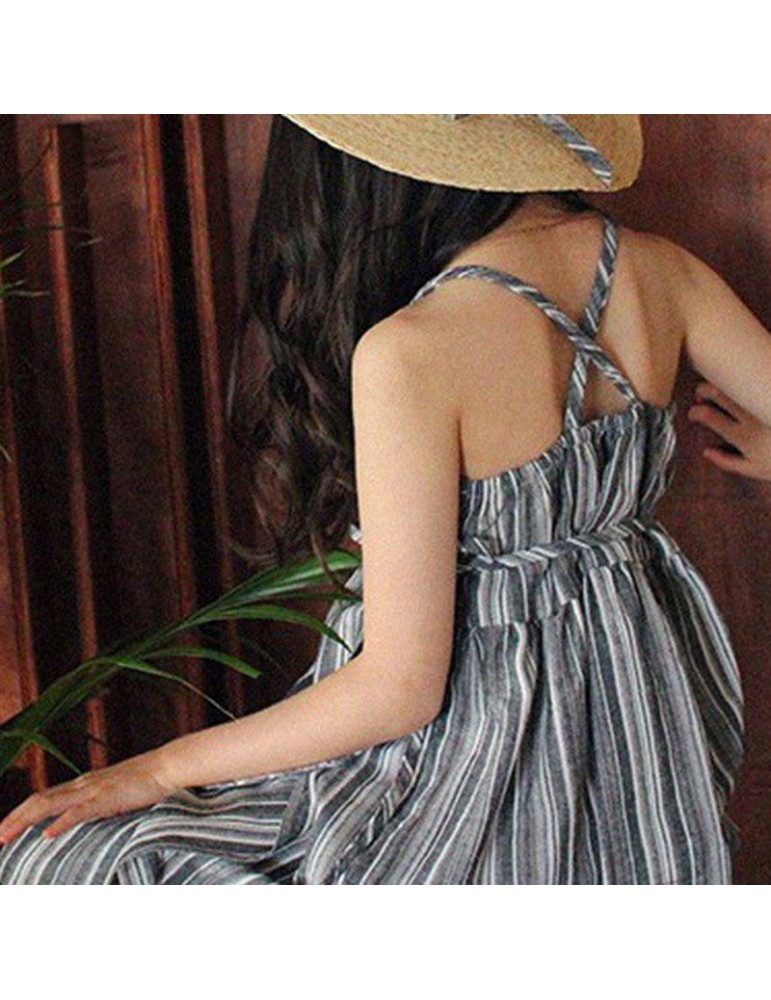 Leisure Girls Kids Striped Sleeveless Vintage Casual Dresses For 3Y-13Y