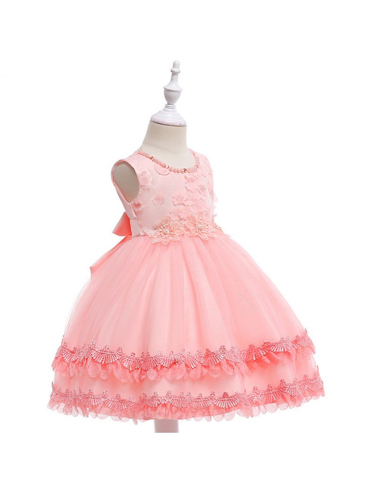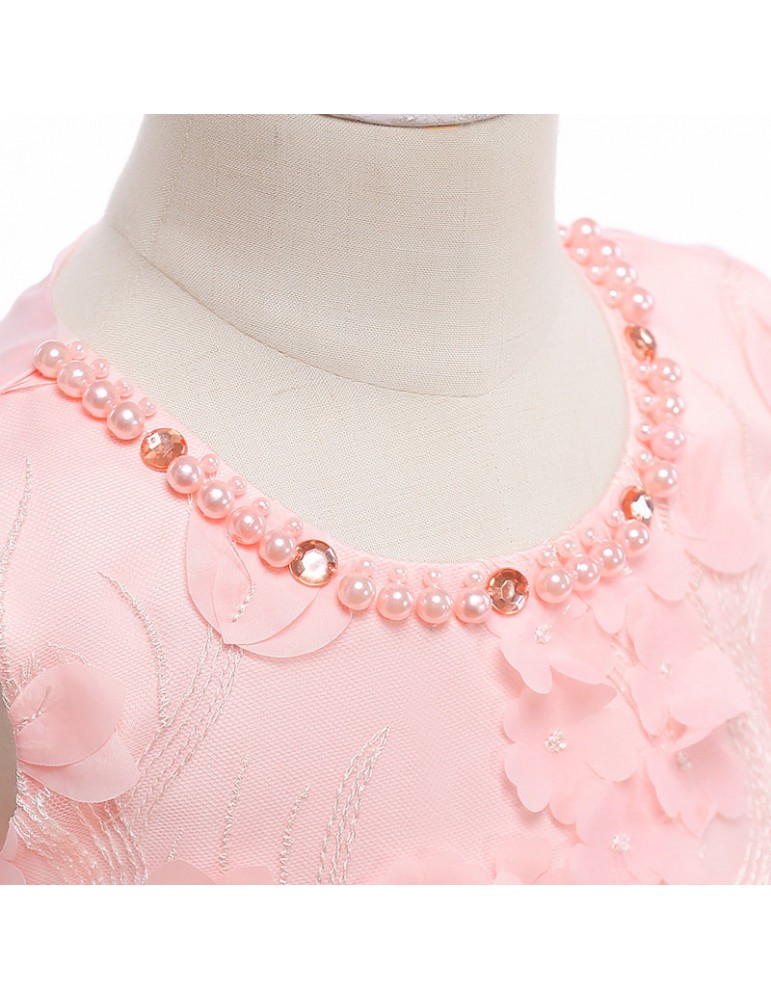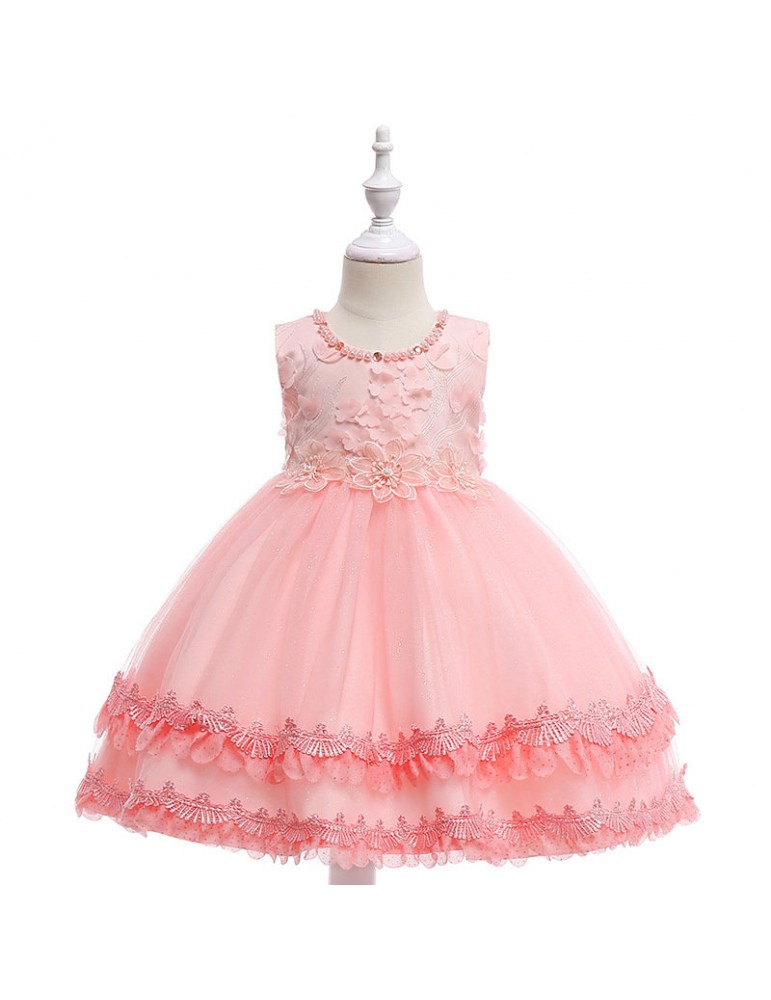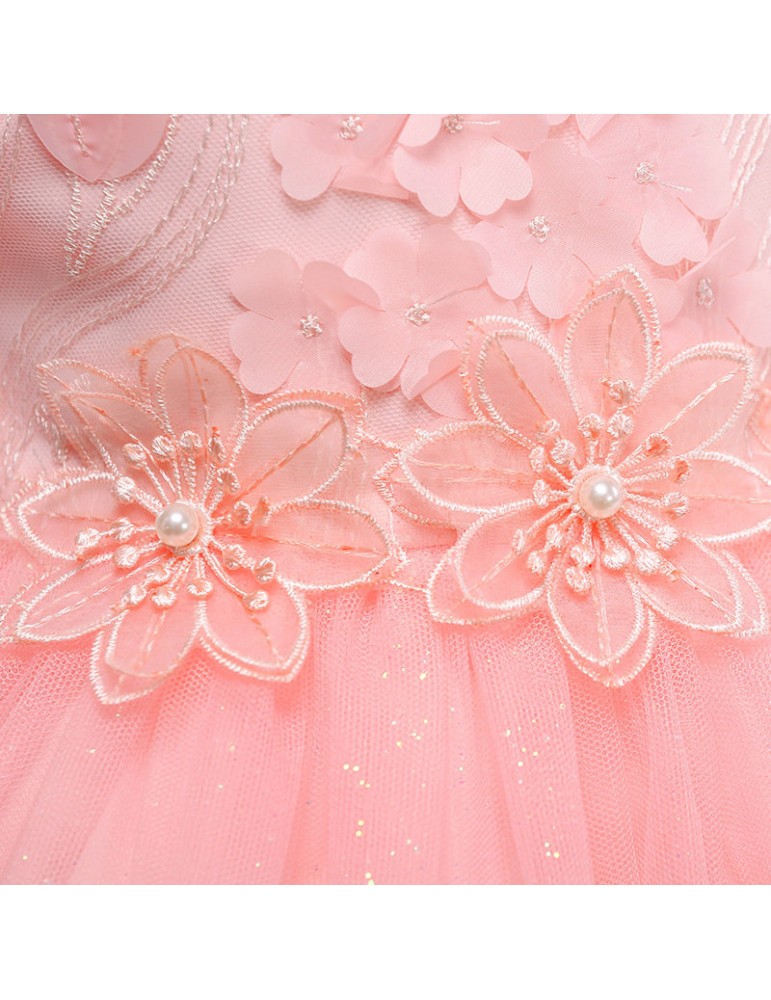 Diamond Toddler Girls Flower Appliques Lace Wedding Princess Dress For 4Y-13Y