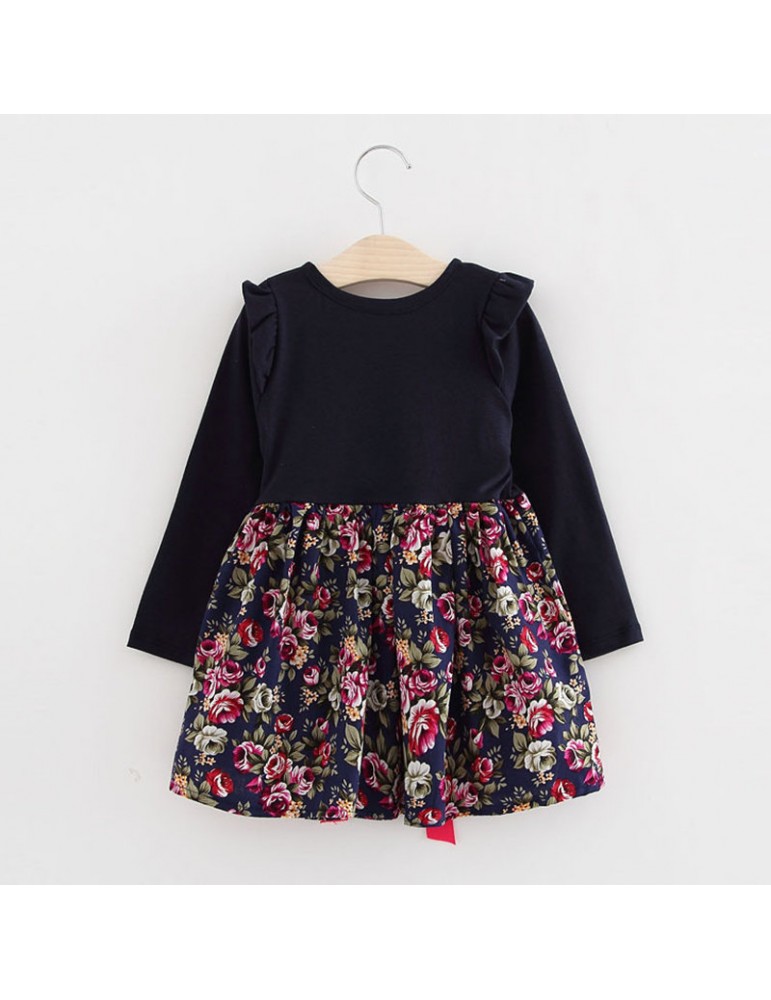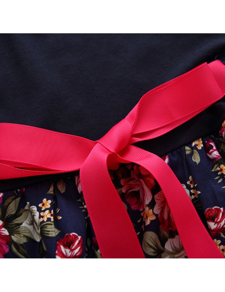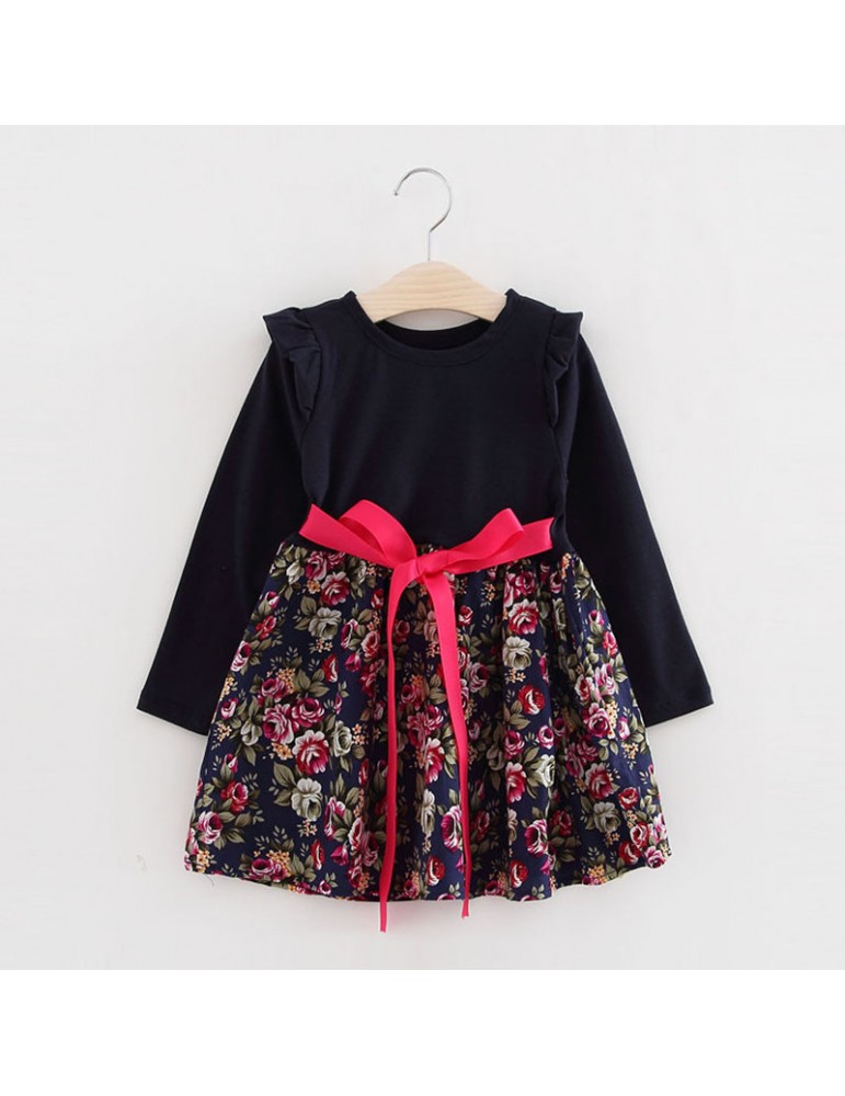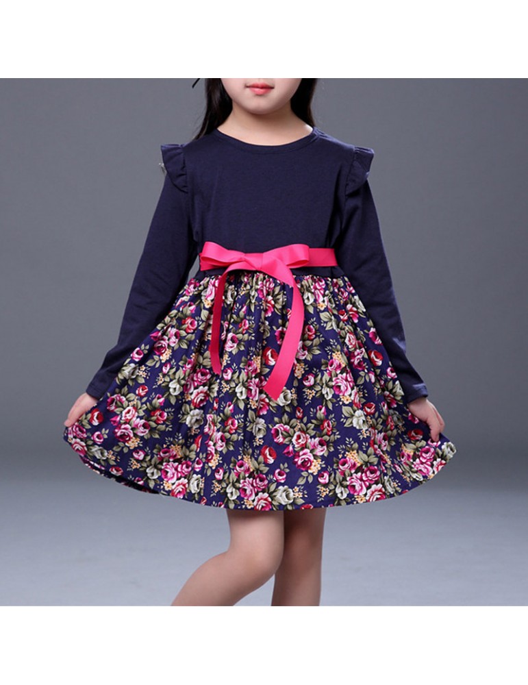 Flower Girls Dresses Long Sleeve Ruffles Patchwork Dress For 2Y-9Y