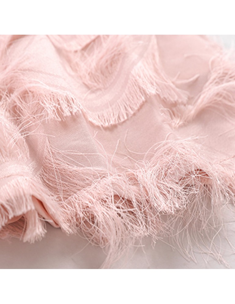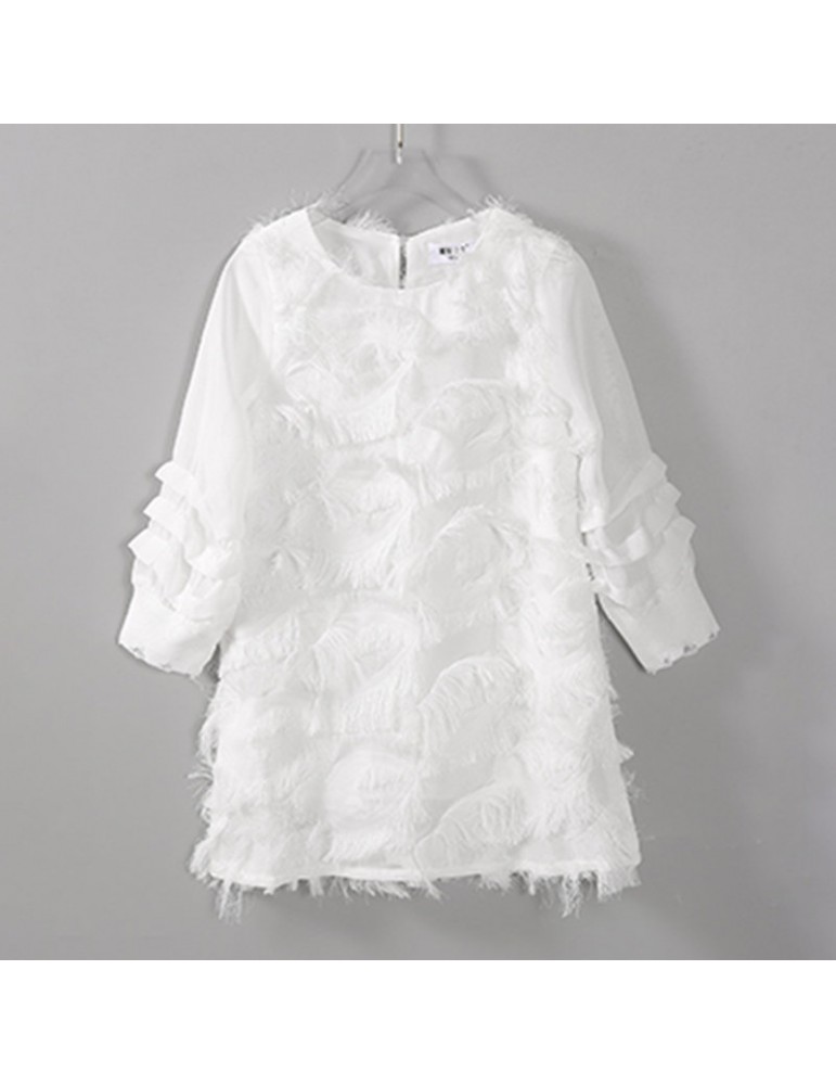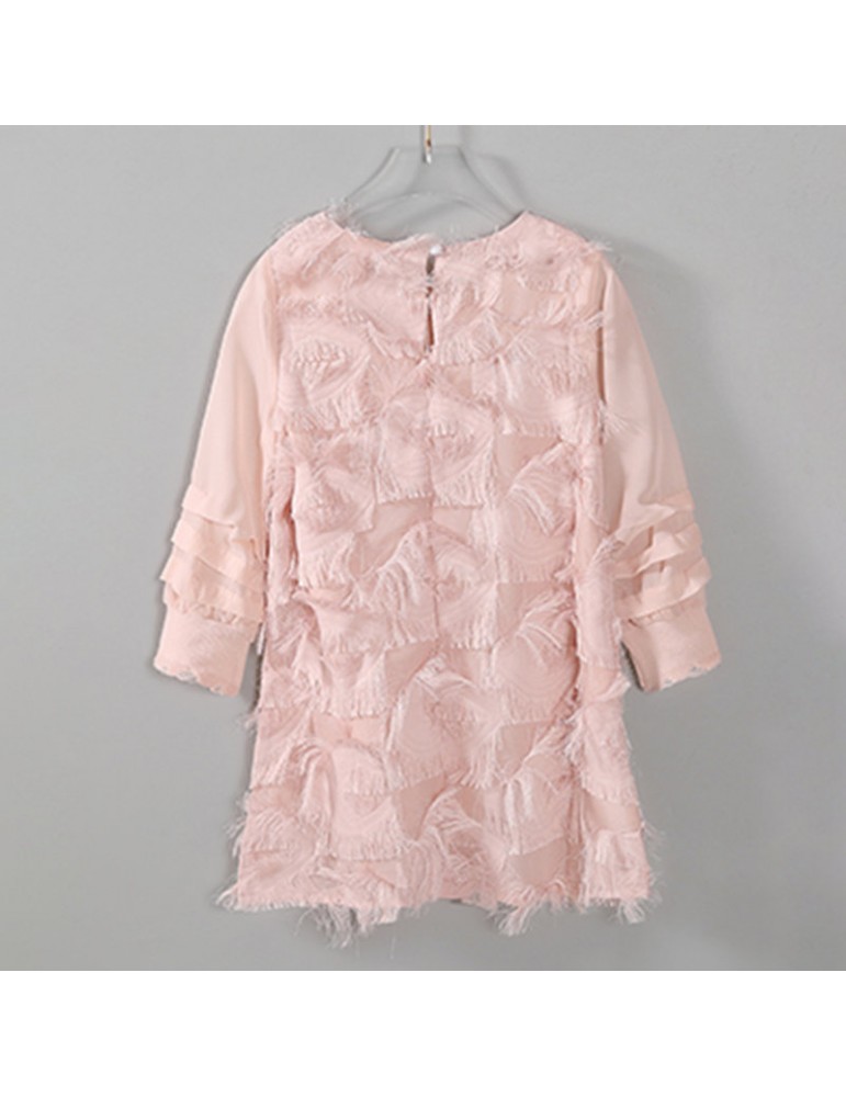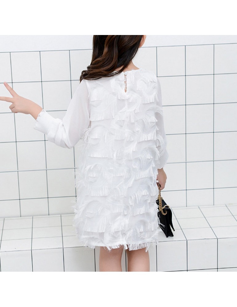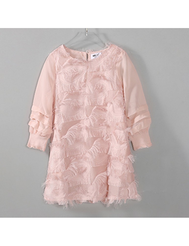 Solid Color Girls Long Sleeve Feather Dress For 4Y-15Y