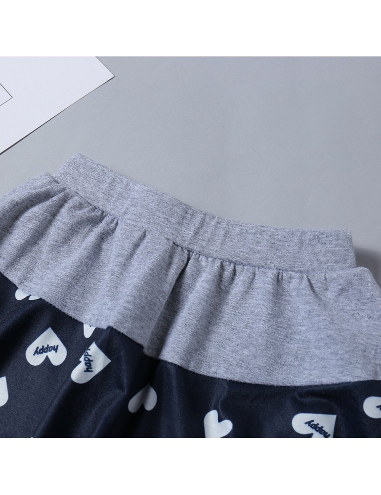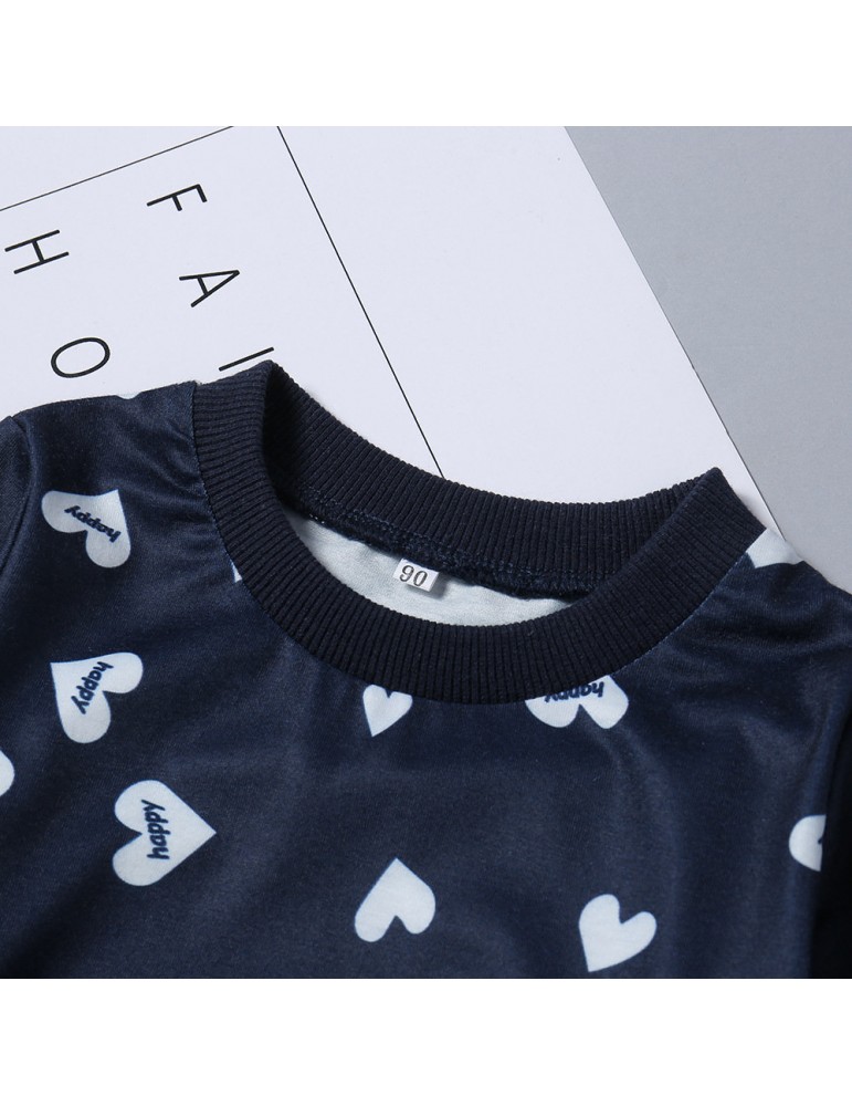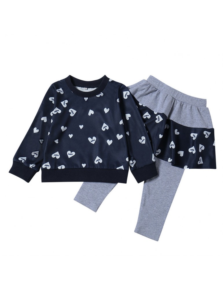 2Pcs Heart Print Girls Casual Set Tops + Skirt Pants For 1Y-9Y
