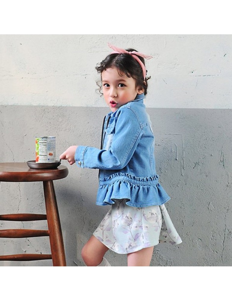 Ruffles Girls Denim Coat Kids Fancy Outerwear Jackets
