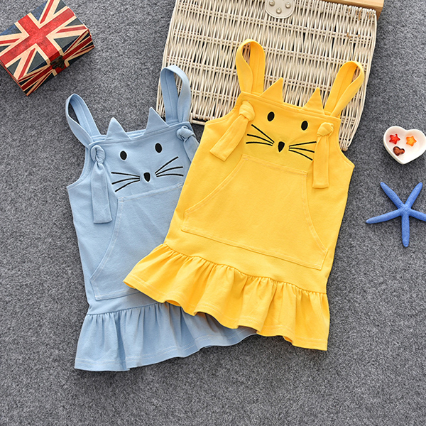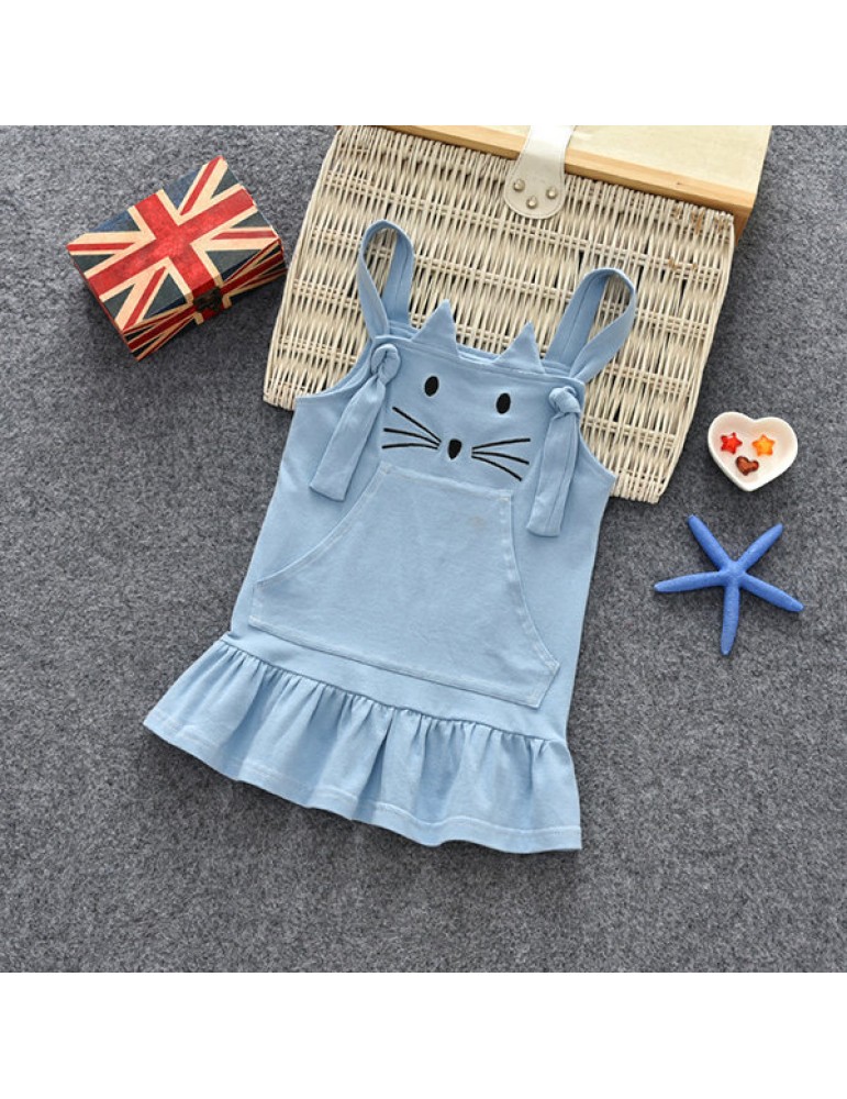 Cute Cat Toddler Girls Casual Strap Party Ruffle Princes Dresses For 1Y-9Y