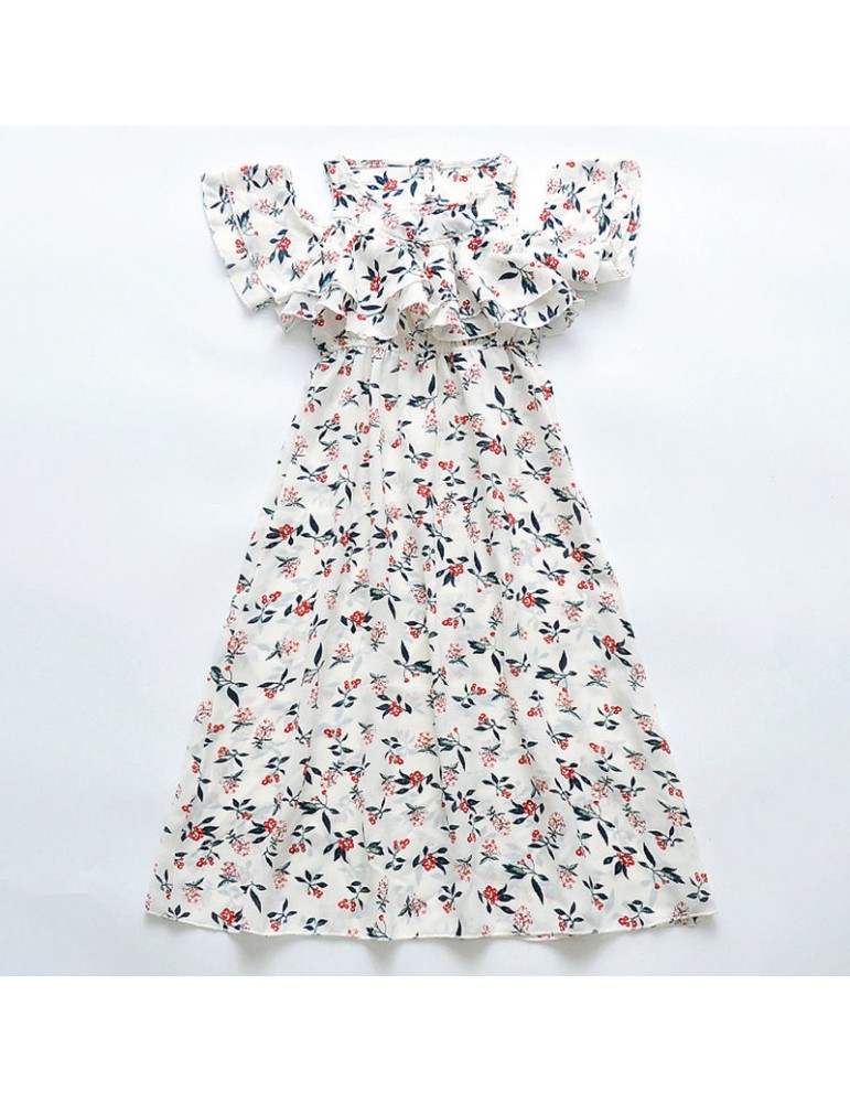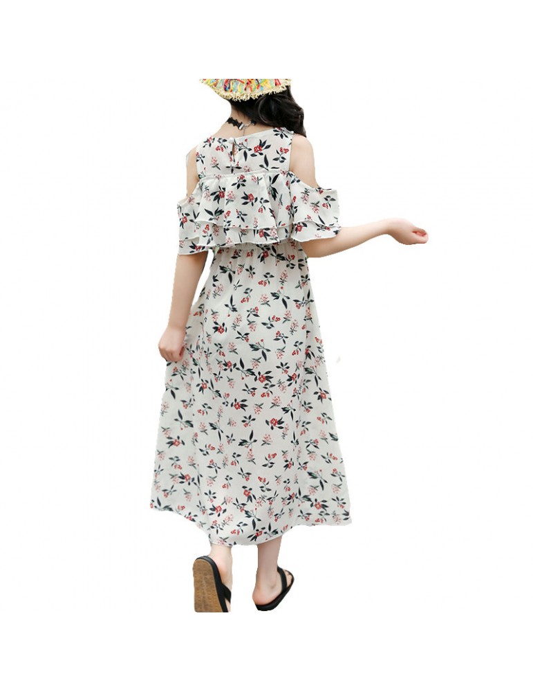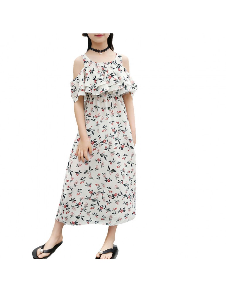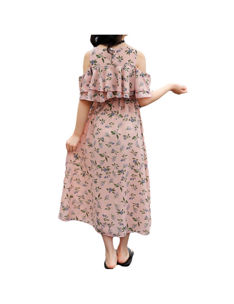 Floral Girls Off Shoulder Chiffon Dress For 6-15Y