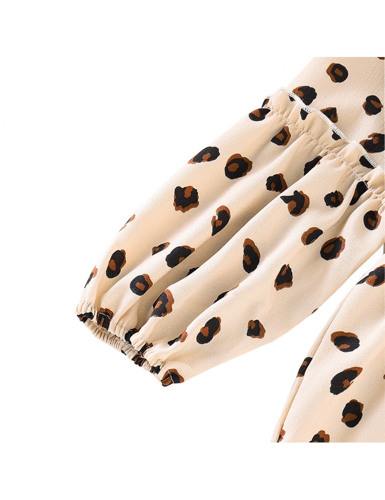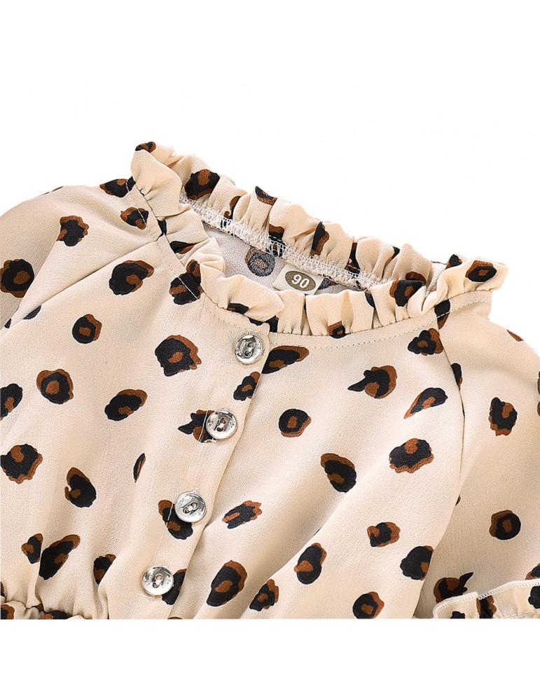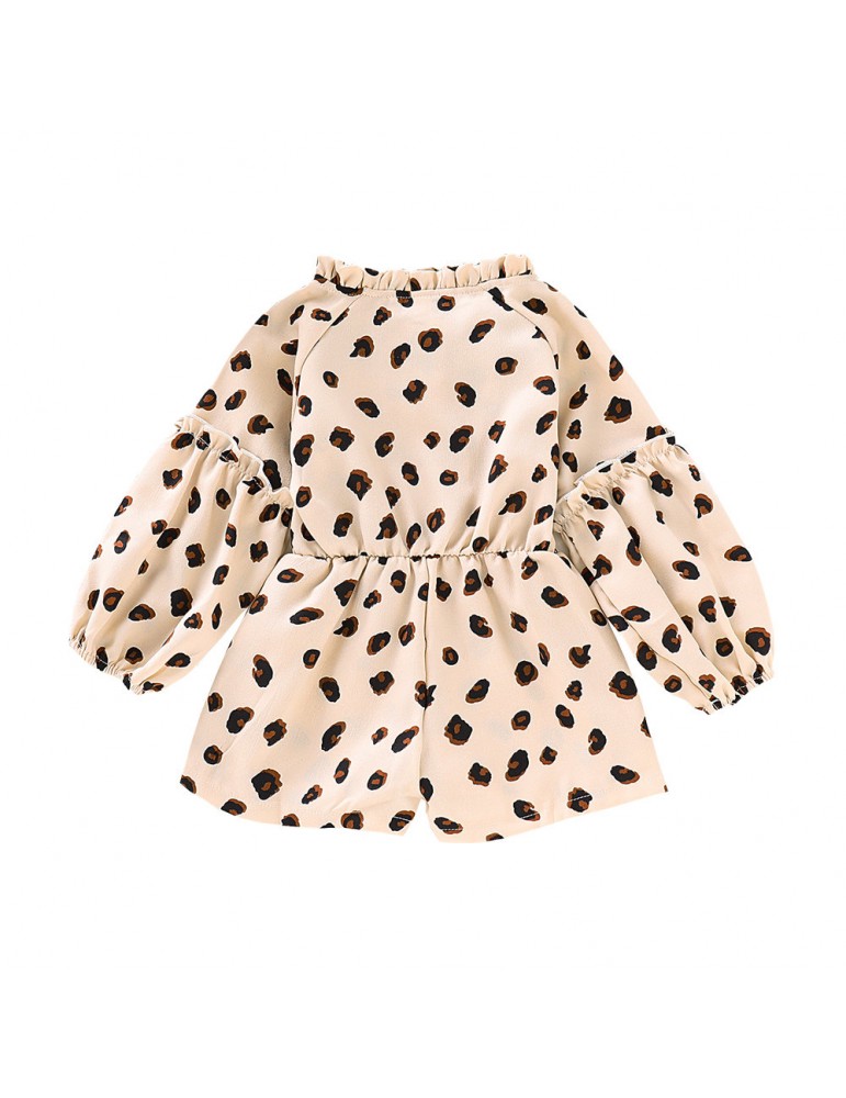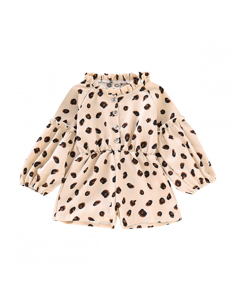 Casual Printed Girls Long Sleeve Button Rompers For 2Y-9Y