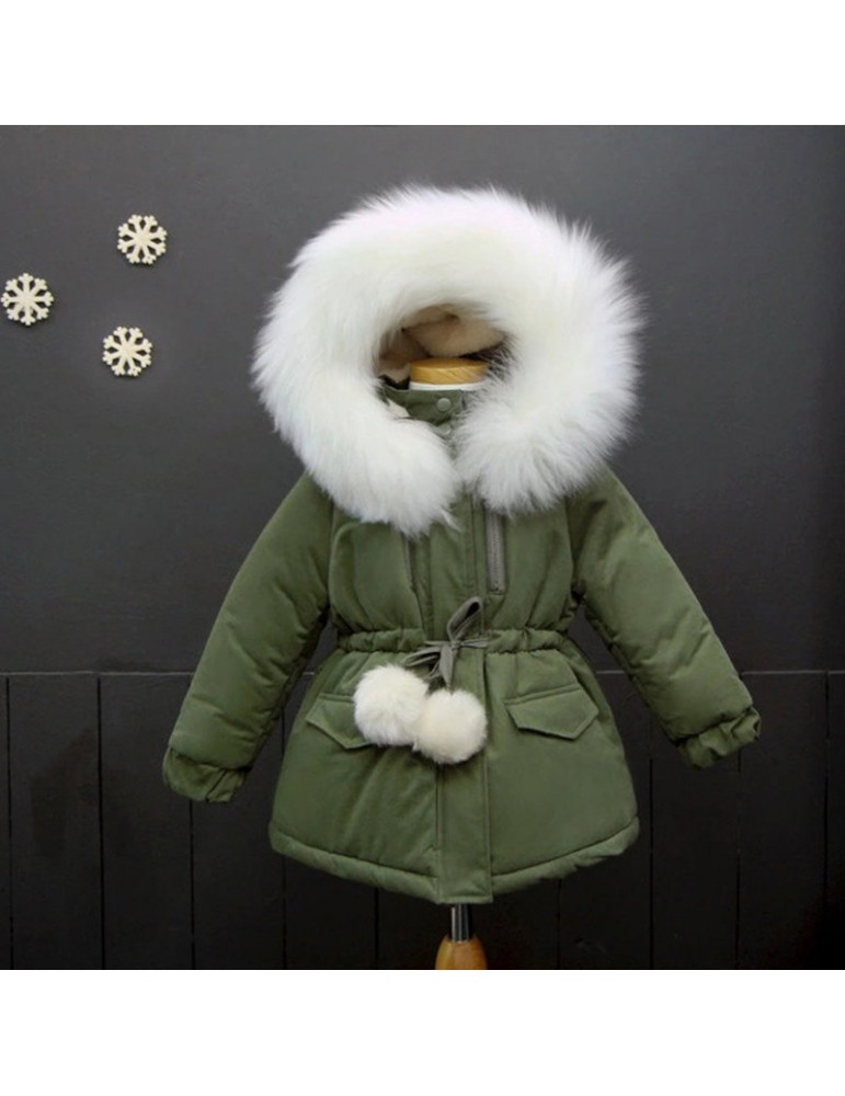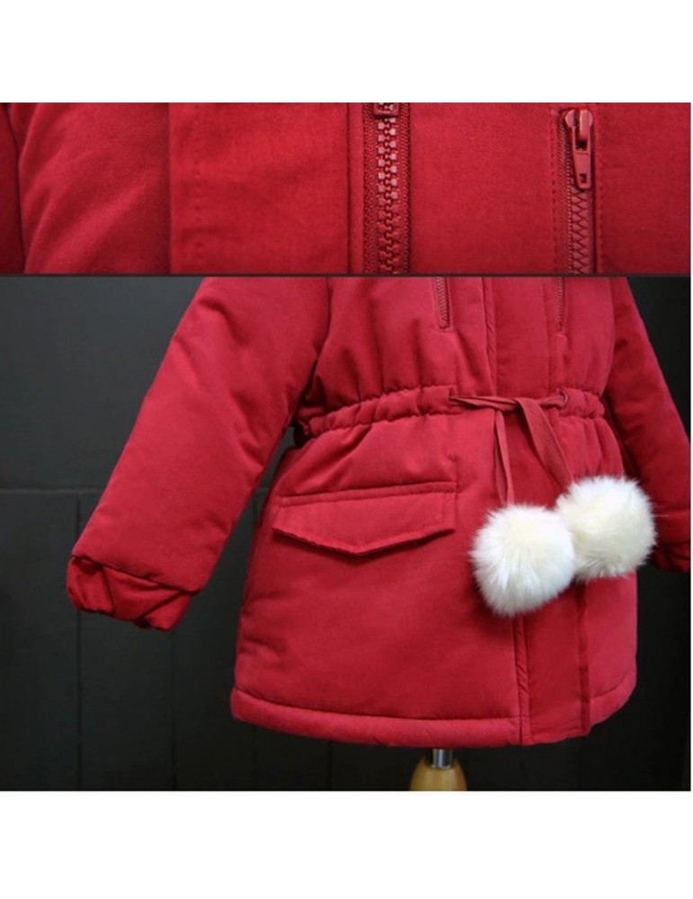 Girls Winter Coats Kids Detachable Fur Thicken Jackets For 3Y-15Y