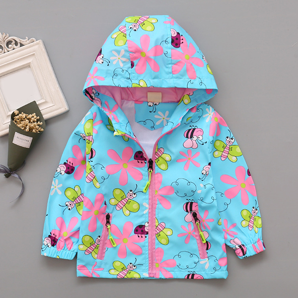 Floral Printed Girl Hooded Coat Jacket Windbreaker Toddler Girls Clothes Spring Autumn