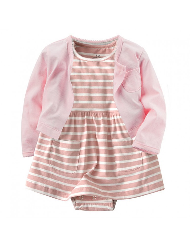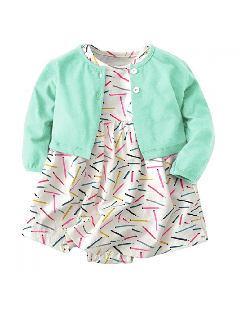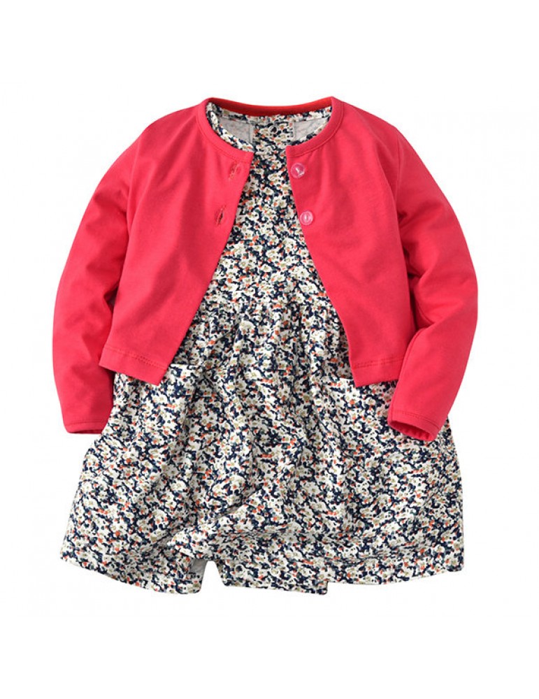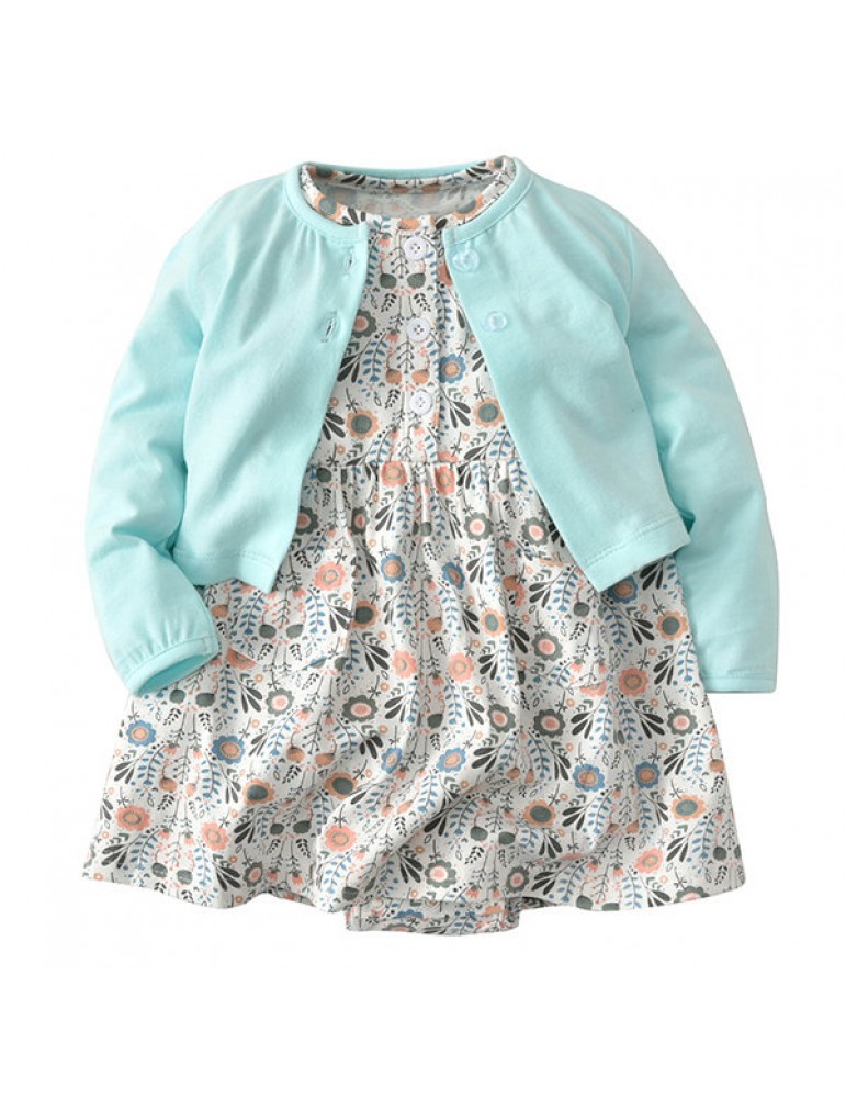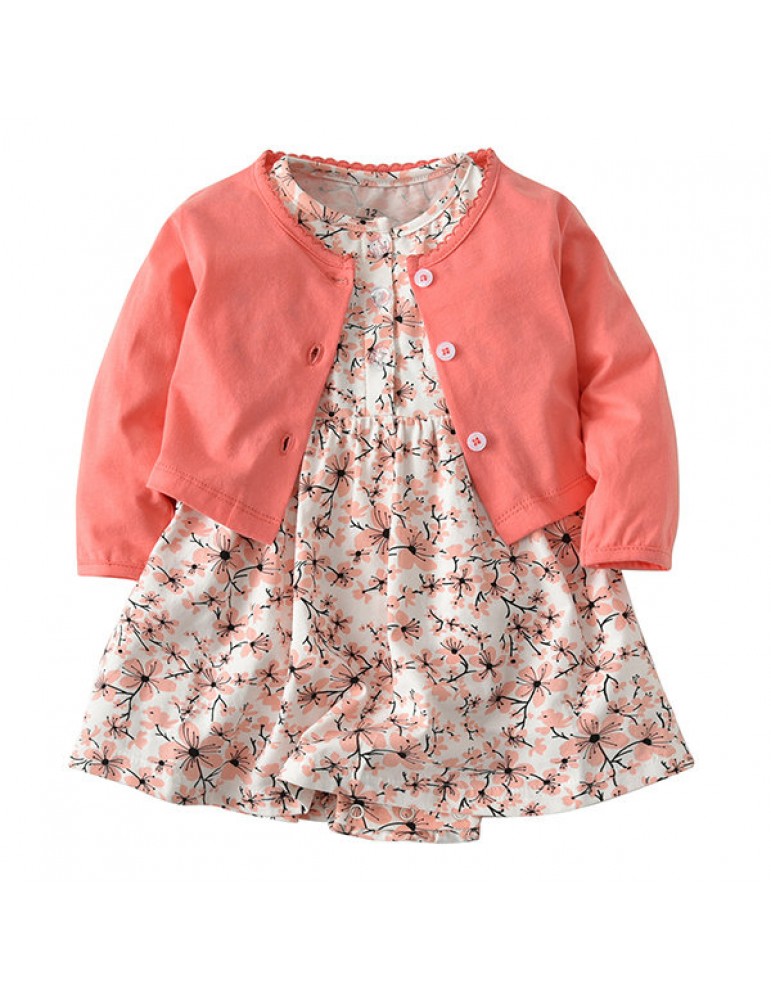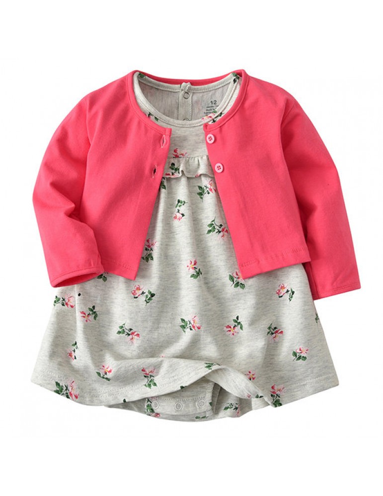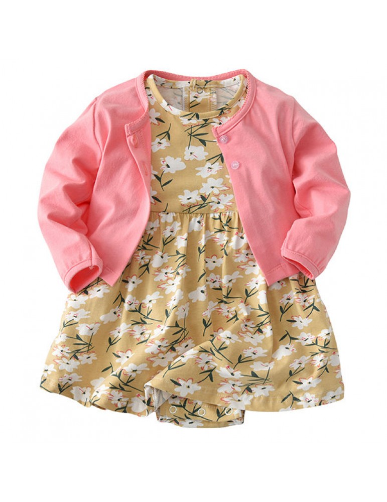 2pcs Floral Baby Girls Romper Dresses with Coat Clothing Set For 0-36M