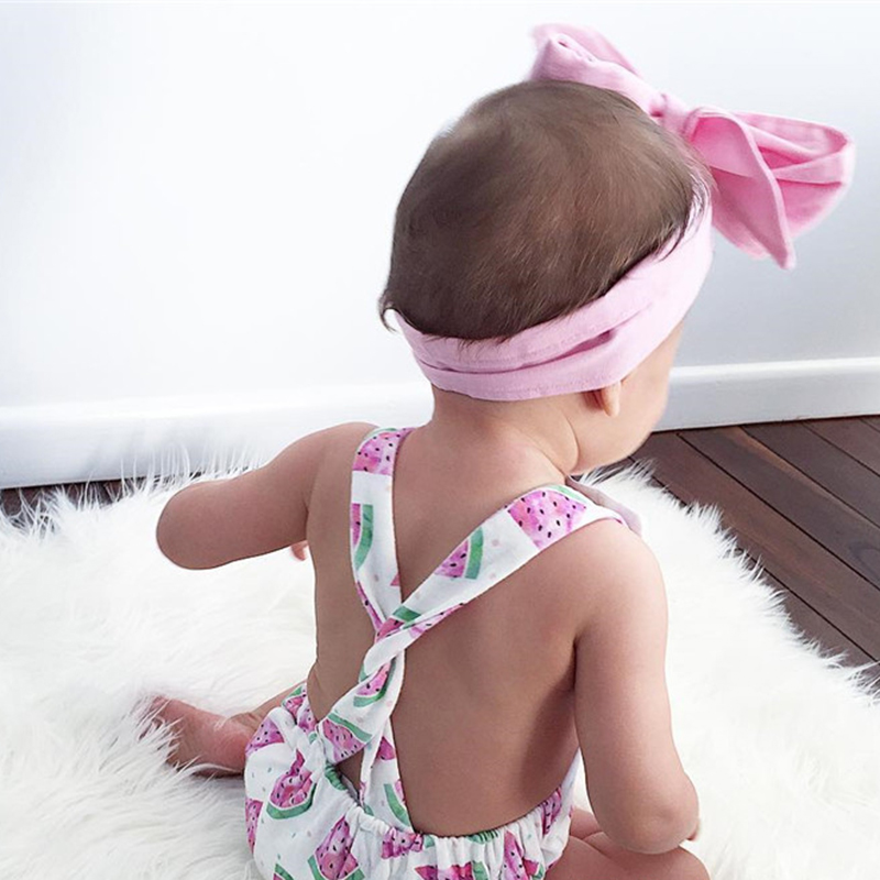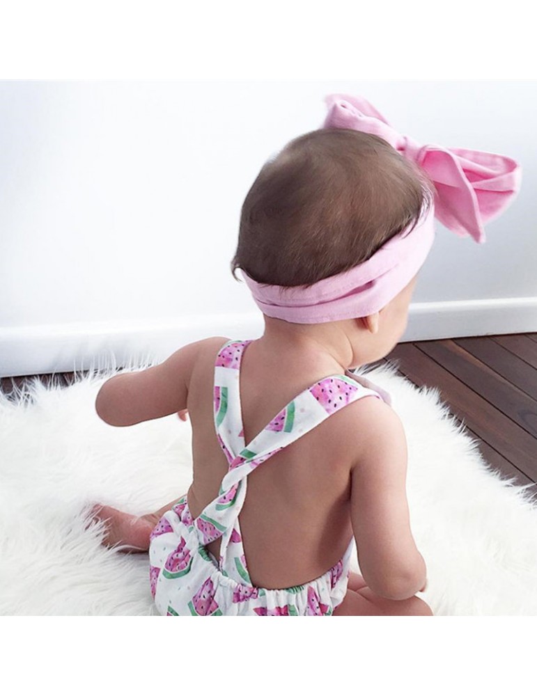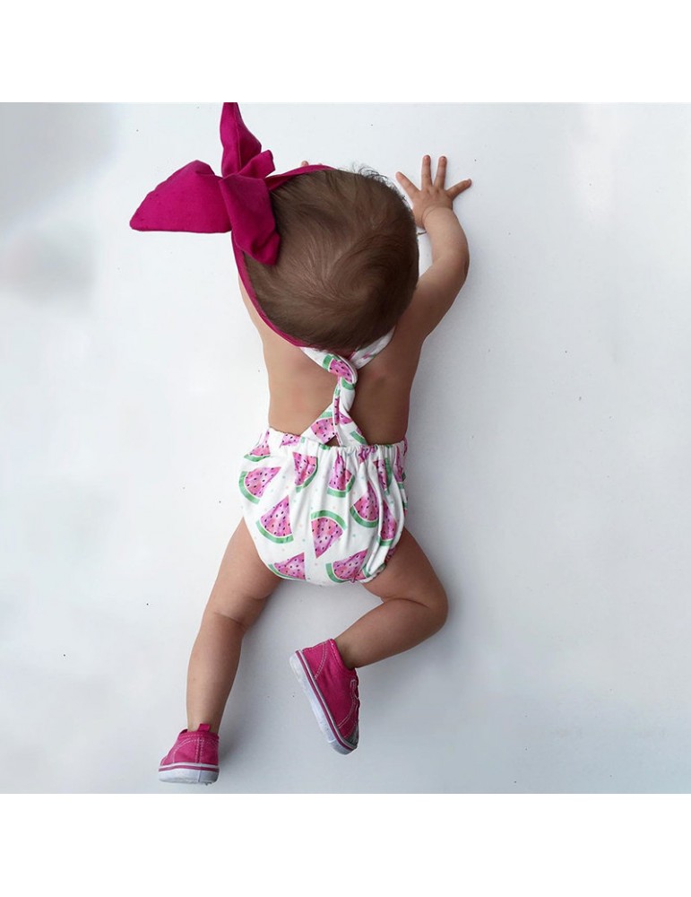Baby Girls Watermelons Print Backless Ruffle Bodysuit With Headband