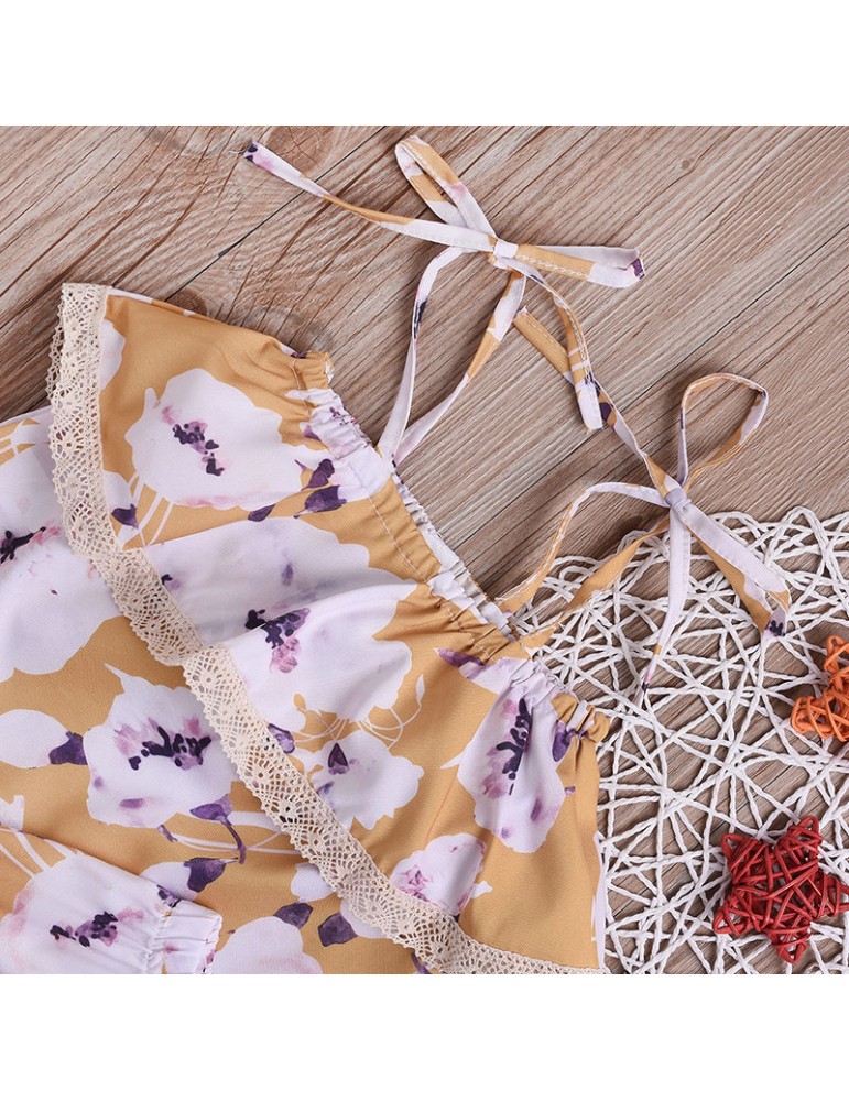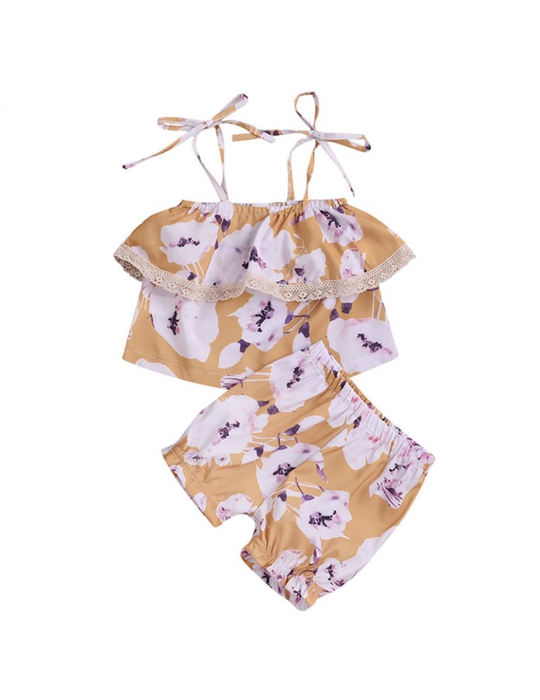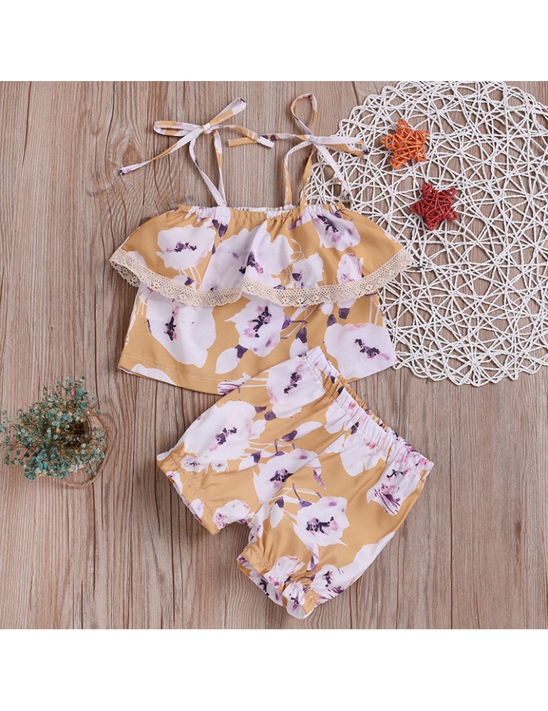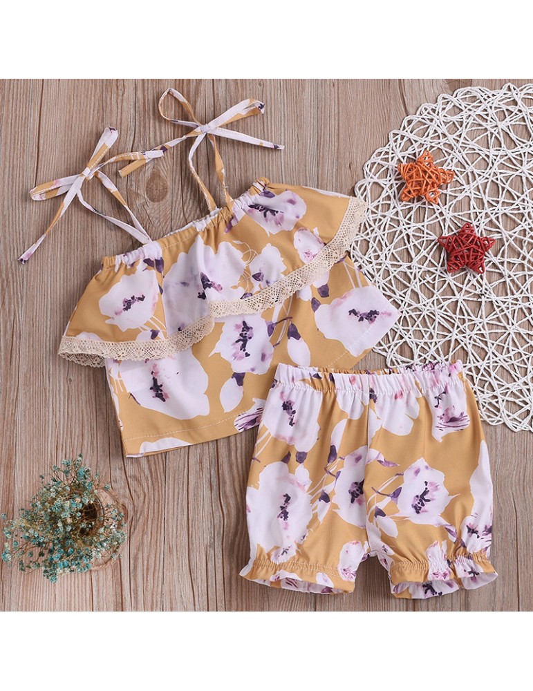 Flower Girls Clothing Sets Strap Tops+ Short Pants For 1Y-7Y