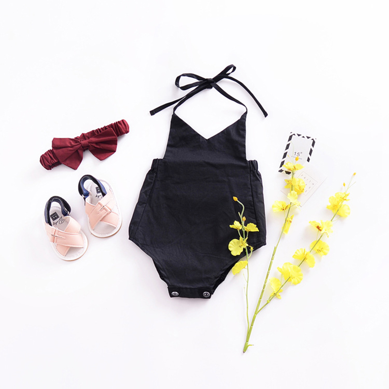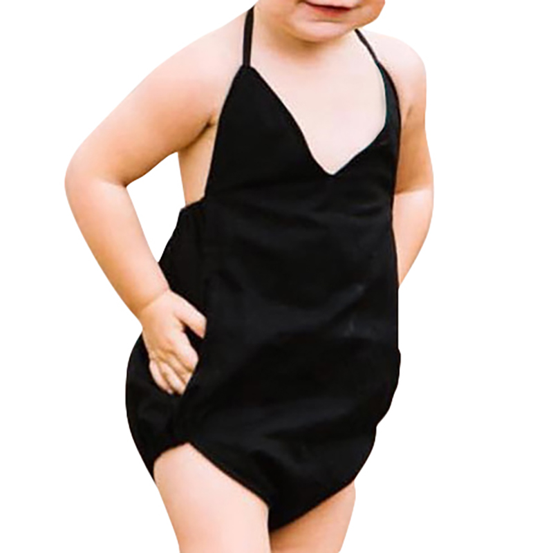 Black Cotton Strap Baby Girls Romper For 0-24M