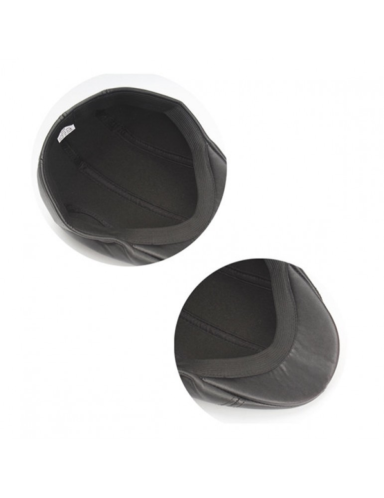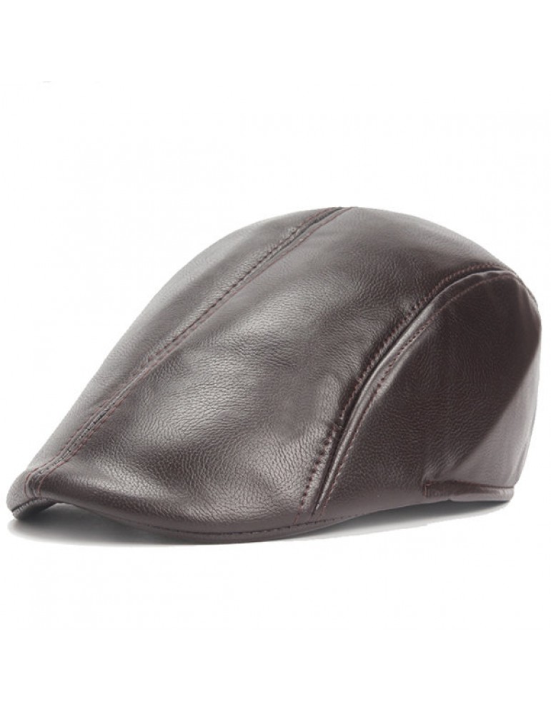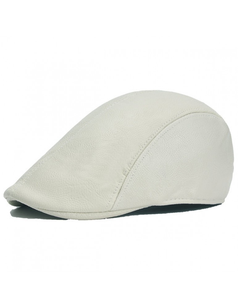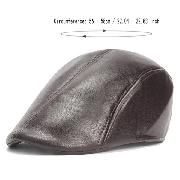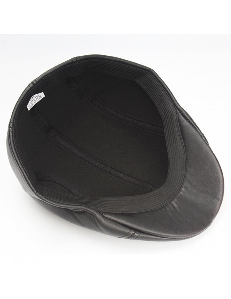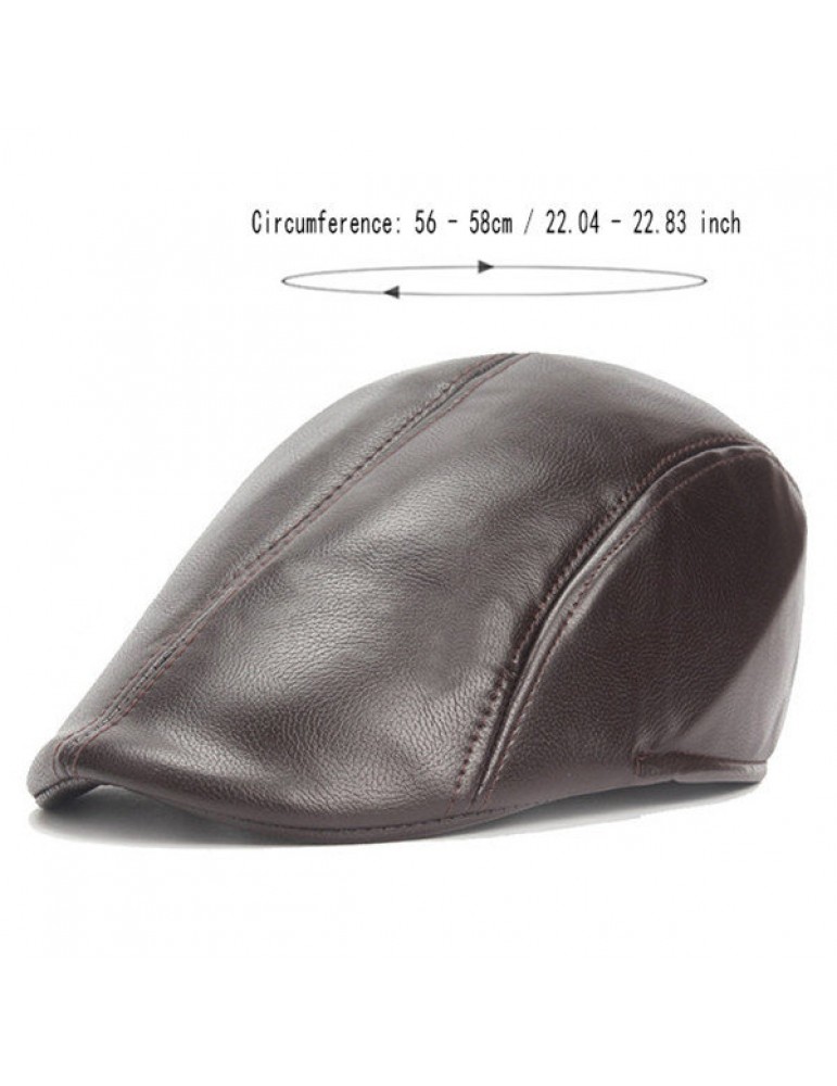 Mens Vintage PU Leather Solid Beret Cap Casual Newsboy Golf Comfortable Cabbie Hat Forward Cap