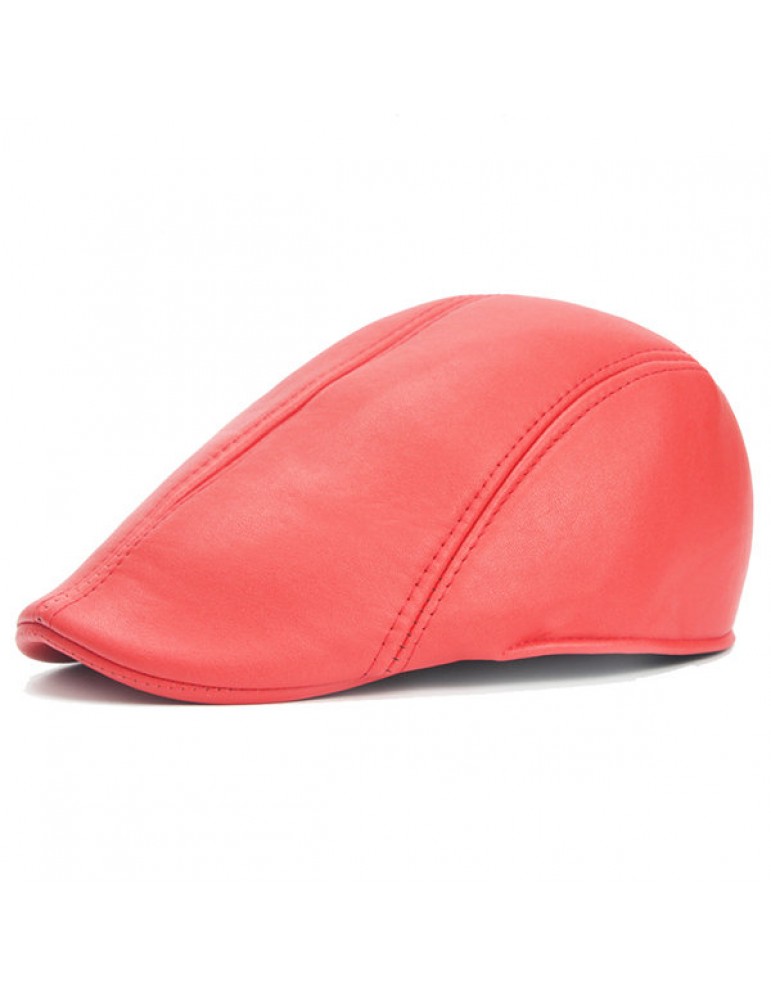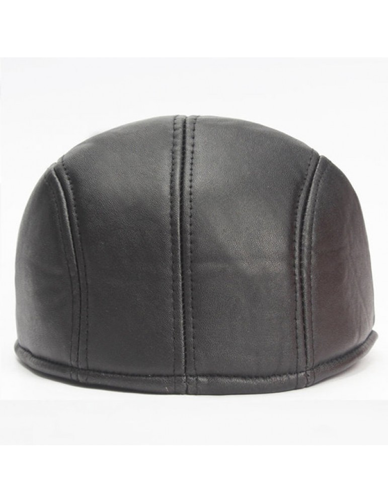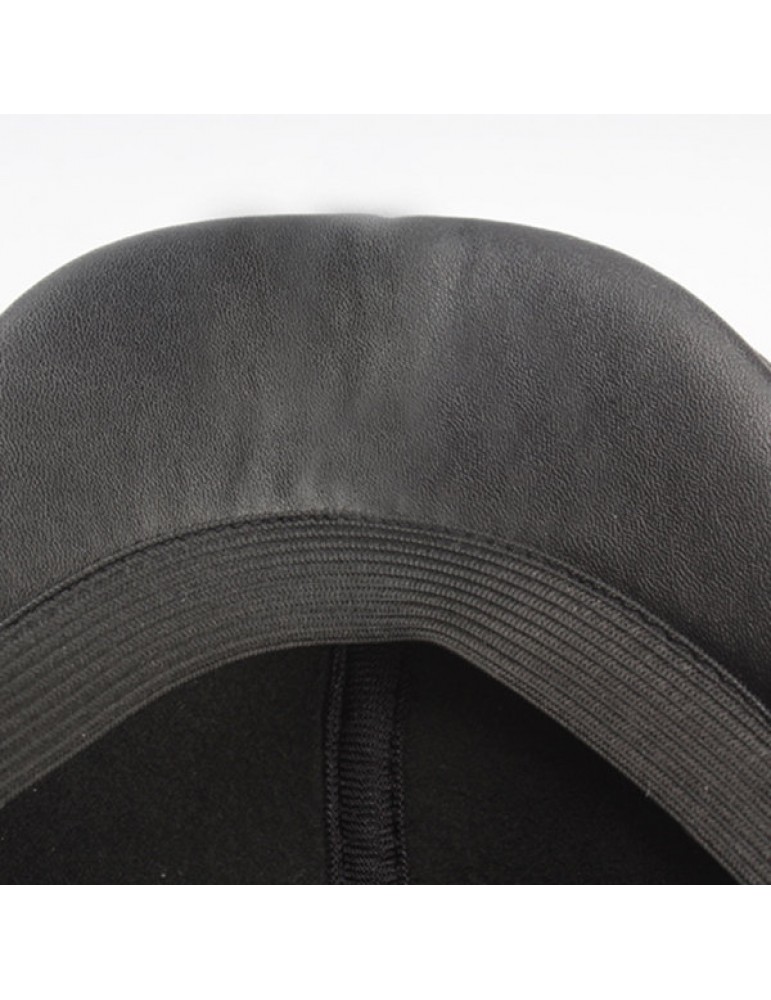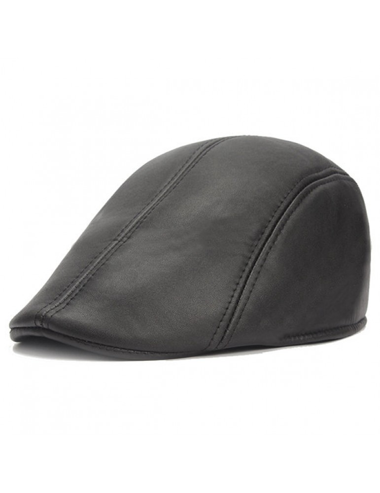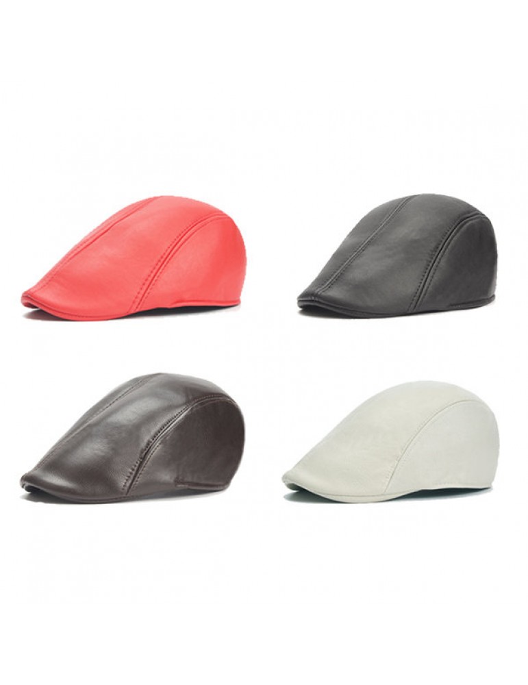 Mens Vintage PU Leather Solid Beret Cap Casual Newsboy Golf Comfortable Cabbie Hat Forward Cap
