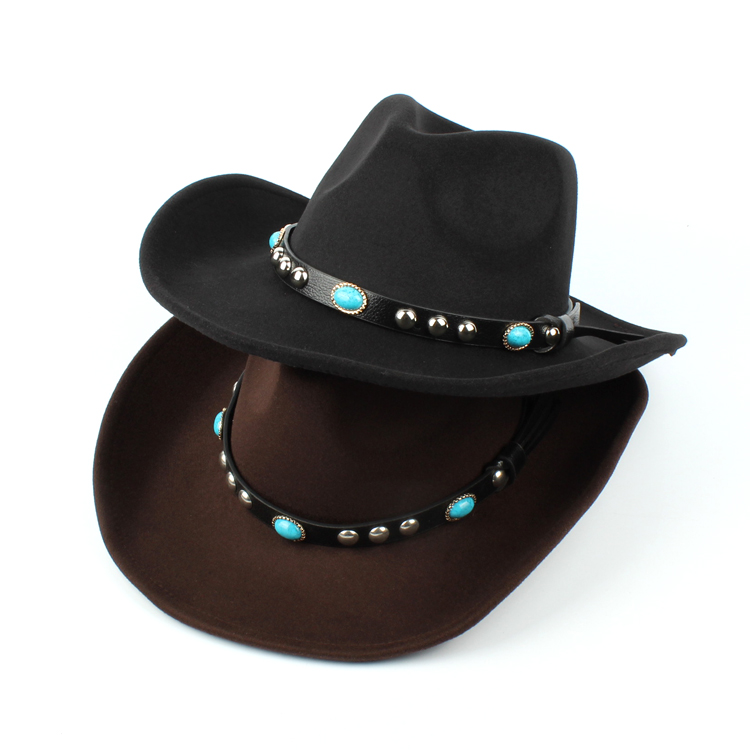 Mens Women Woolen Western Cowboy Hat Vintage Wide Brim Cowgirl Jazz Cap Horse Riding Hat