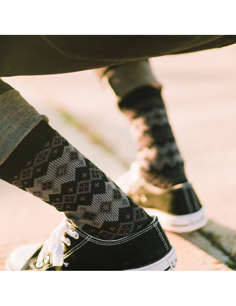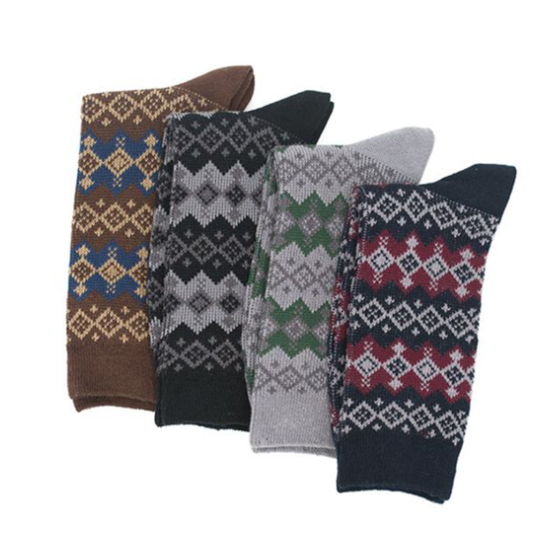 Mens Winter Warm Vintage Vogue Wool Diamond Socks Casual Comfortable Middle Tube Socks