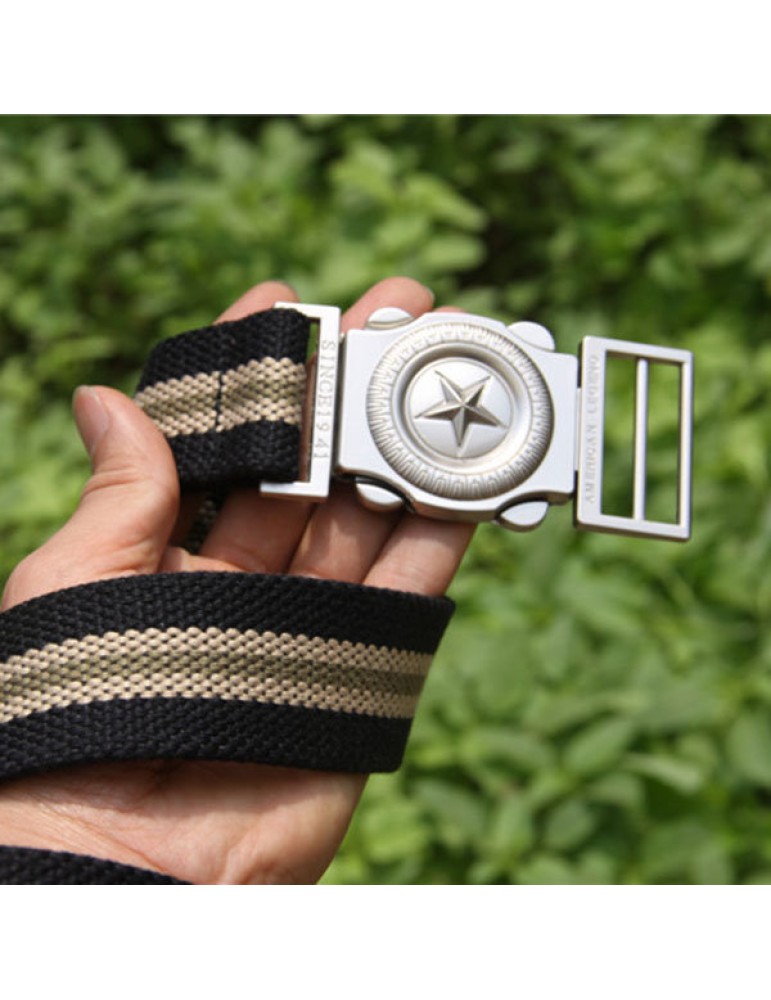 120cm Men Automatic Buckle Casual Outdoor Canvas Belt Thickening Alloy Buckle Pants Strip