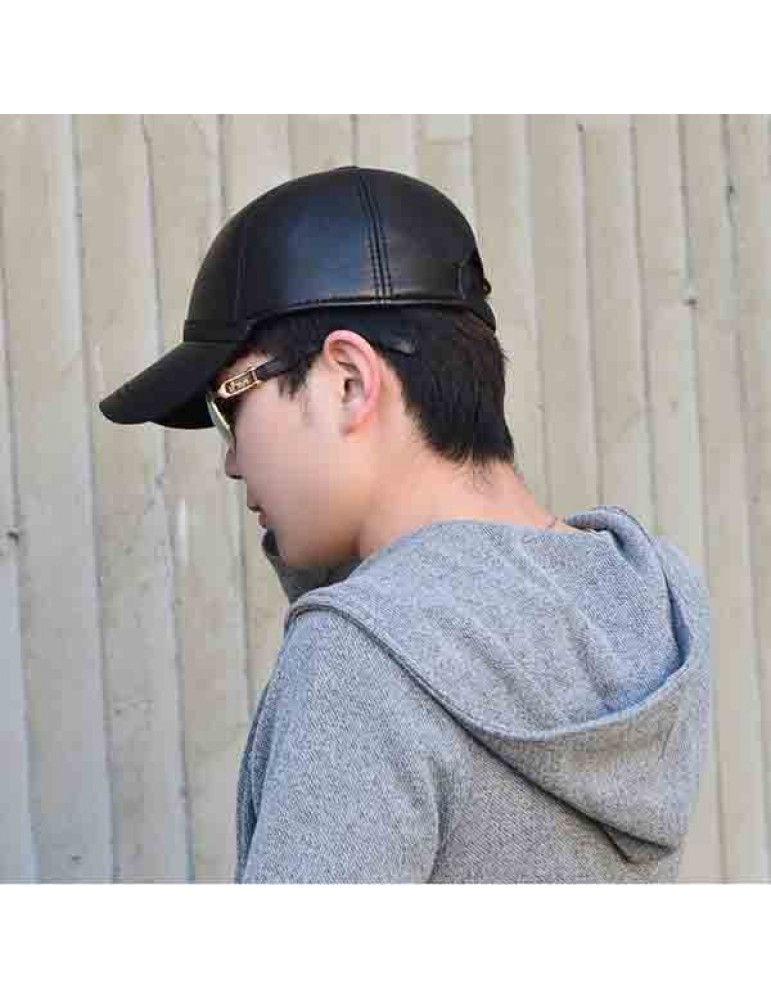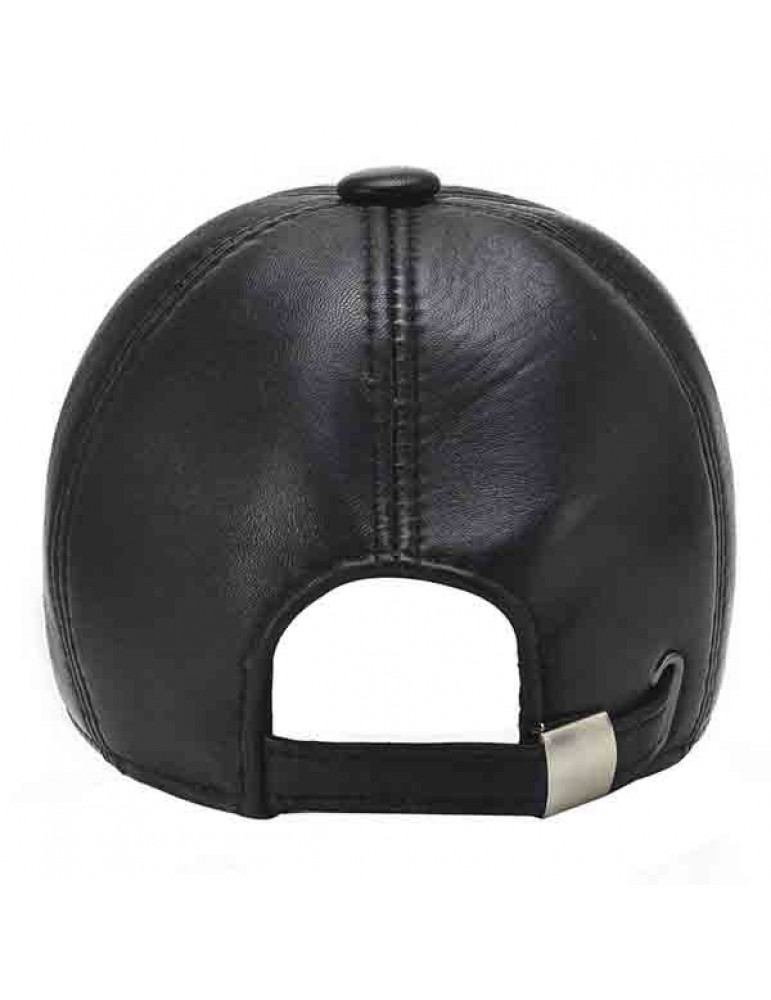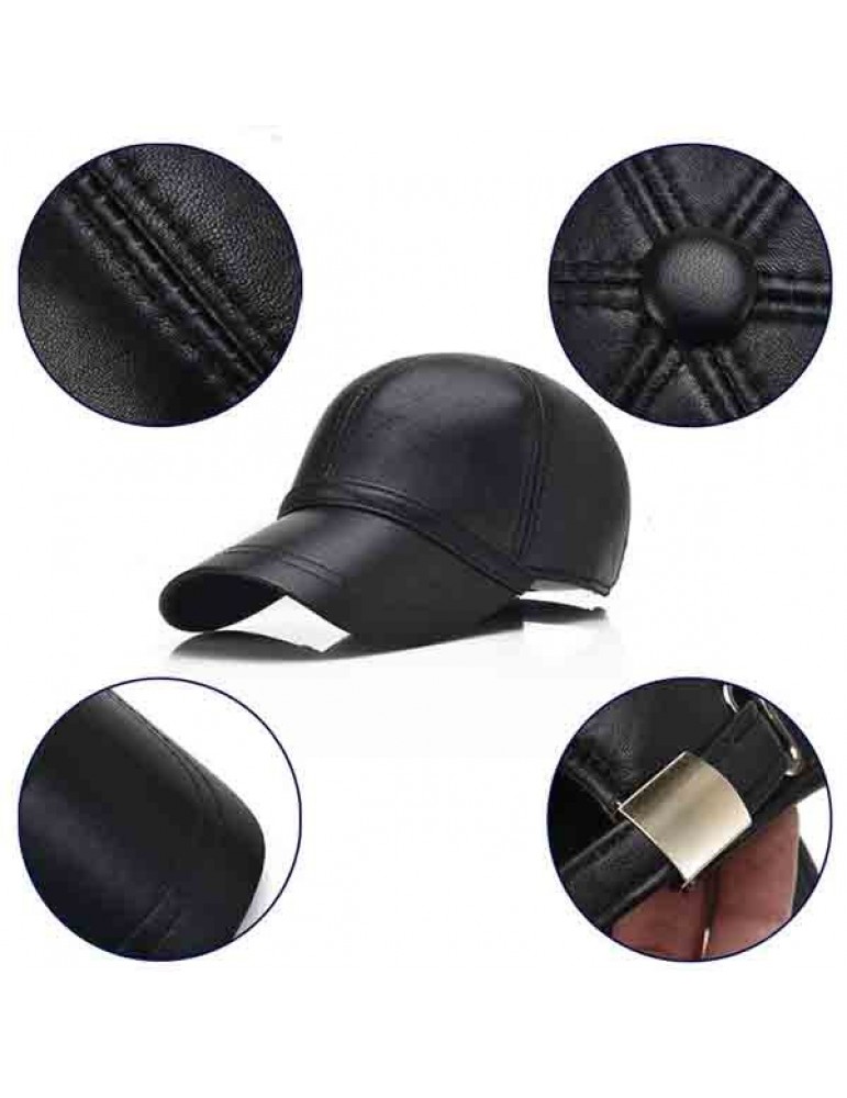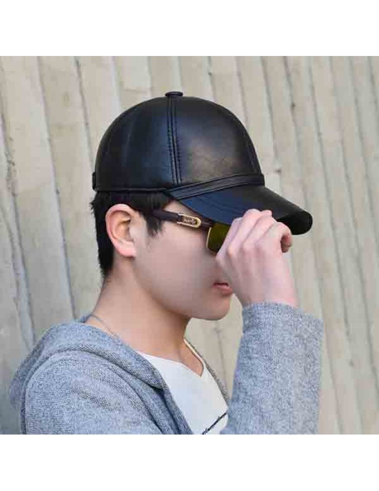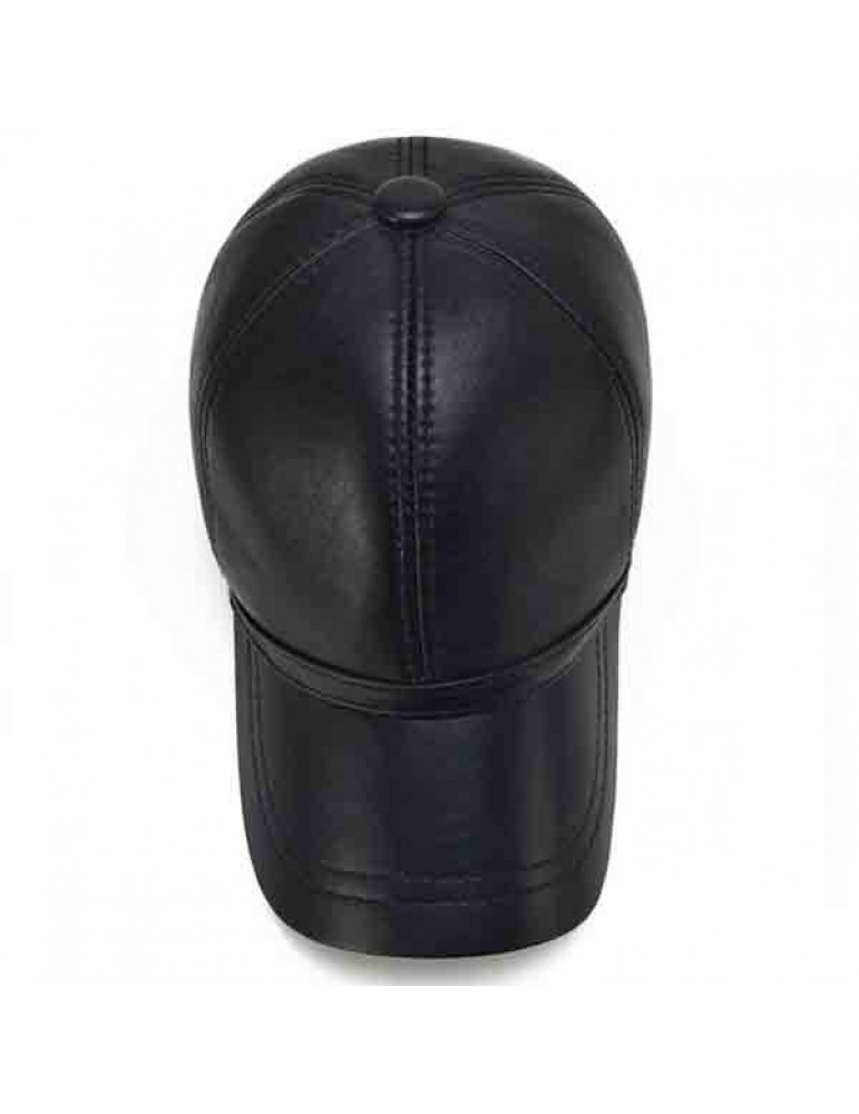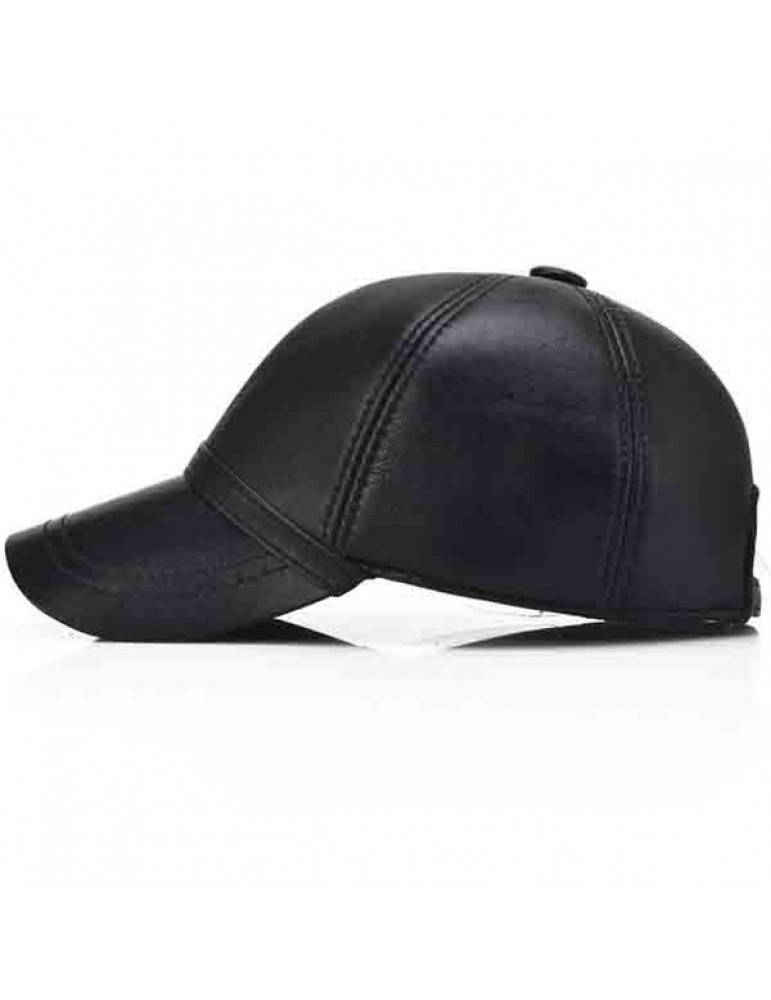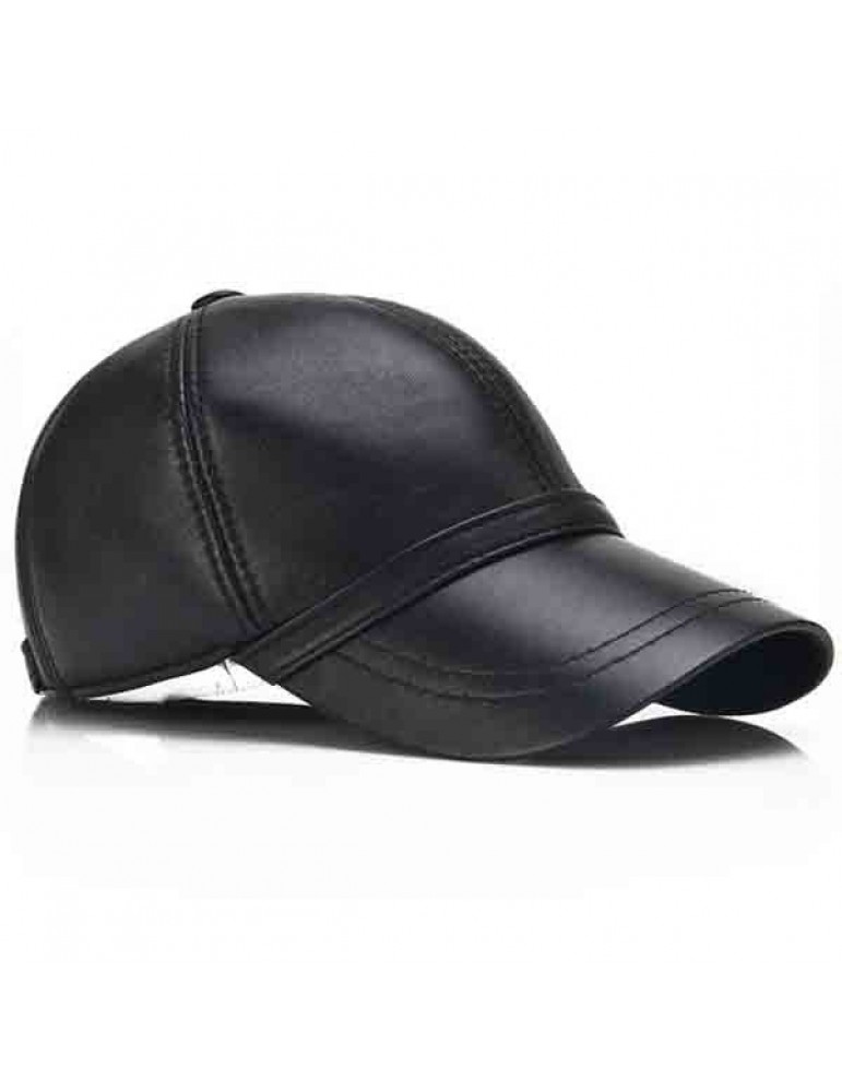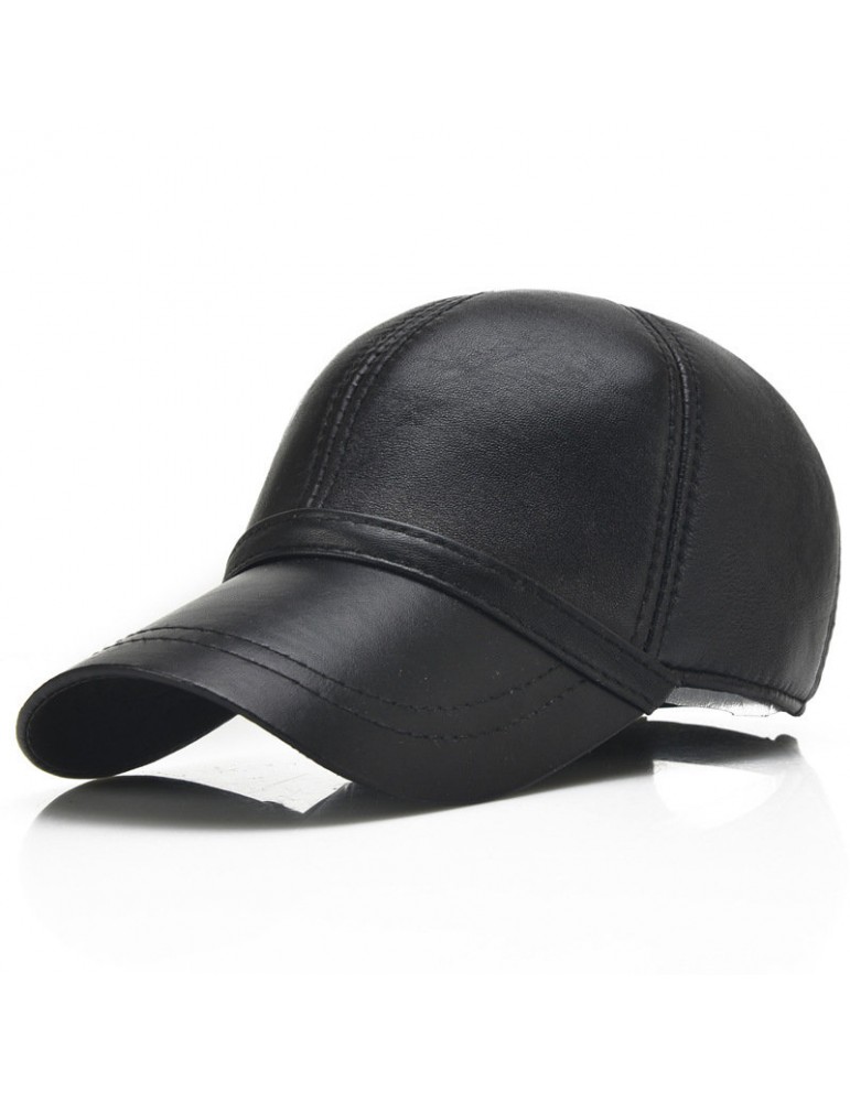 Men Sheepskin Genuine Leather Baseball Cap Solid Adjustable Flat Cap Casual Visor Trucker Hats