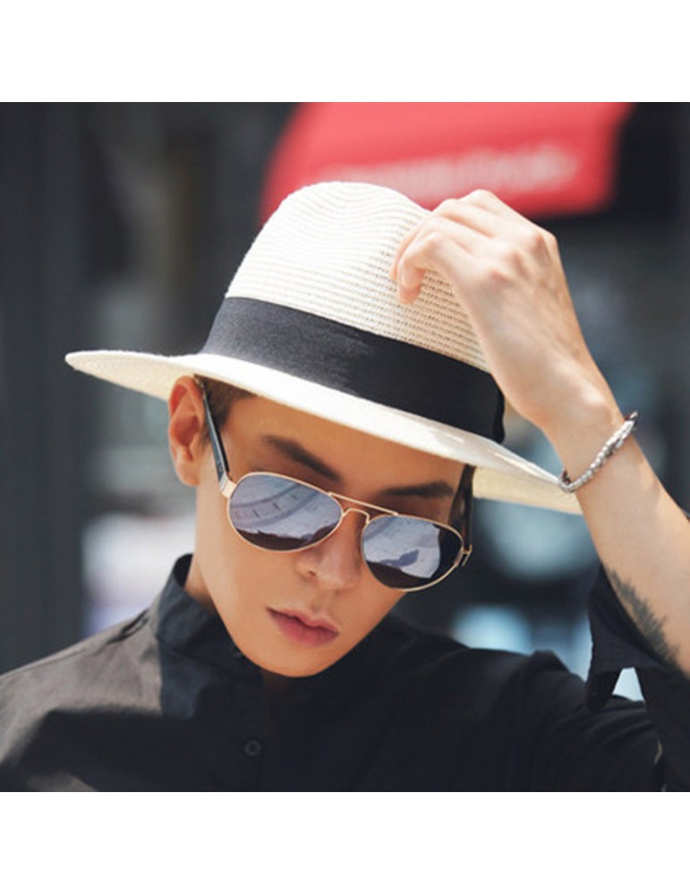 Men Straw Breathable Pure Color Sunshade Fashion Durable Outdoor Bucket Cap