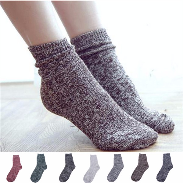 Women Retro Socks Winter Warm Foot Cotton Cord Knitted Mid-Calf Sock