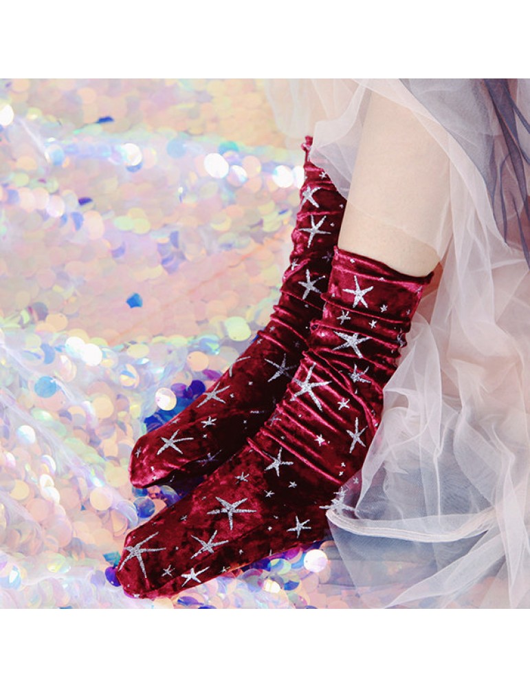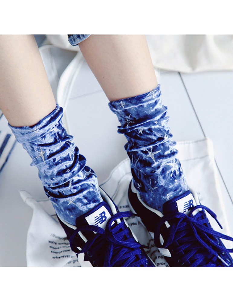 Women Shiny Star Socks Velvet Stretch Long Tube Socks Casual Pile Heap Socks