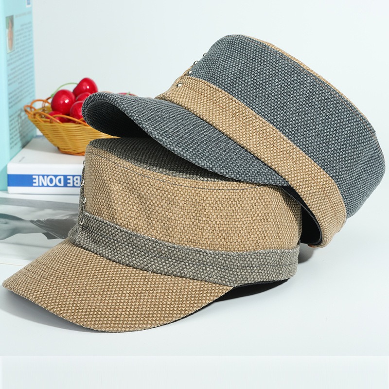 Men Women Rivet Color Matching Flat Cap Vogue Outdoor Visor Tactical Military Cap Adjustable