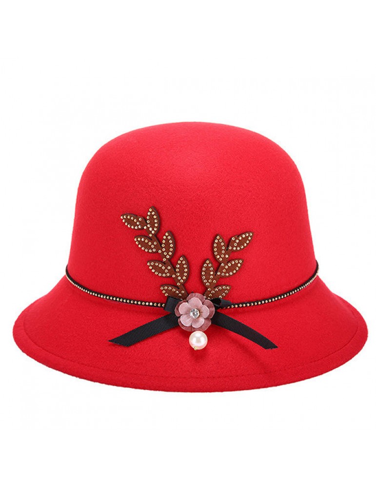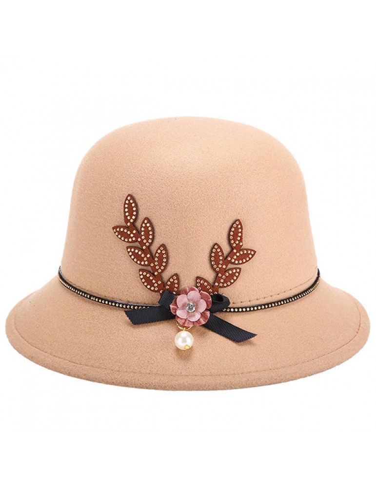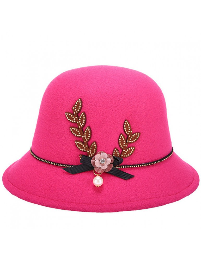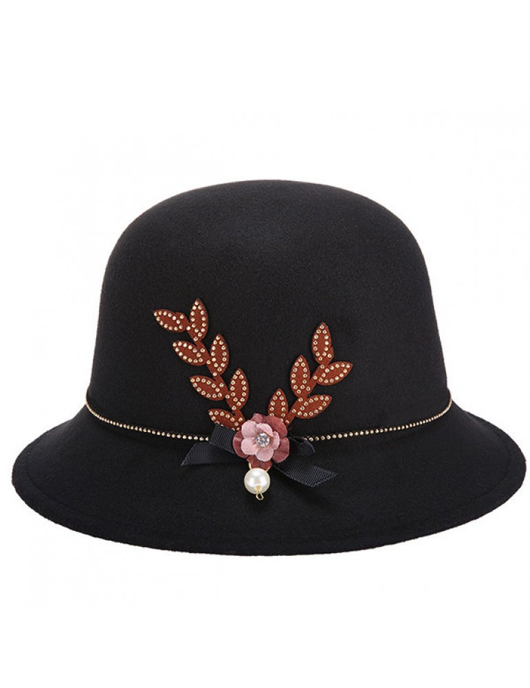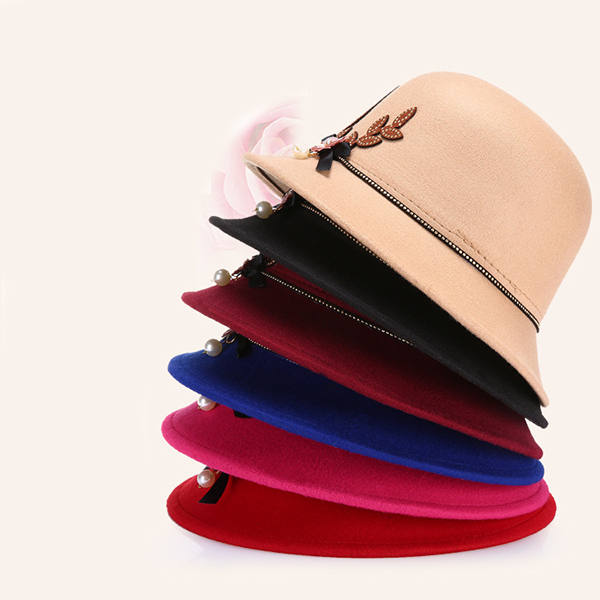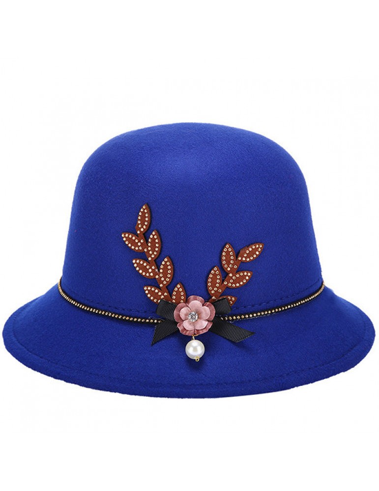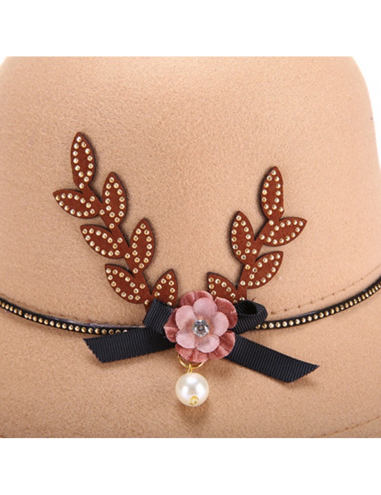 Women Elegant Felt Fedoras Top Hat Casual Floral Bowknot Decoration Bucket Hat