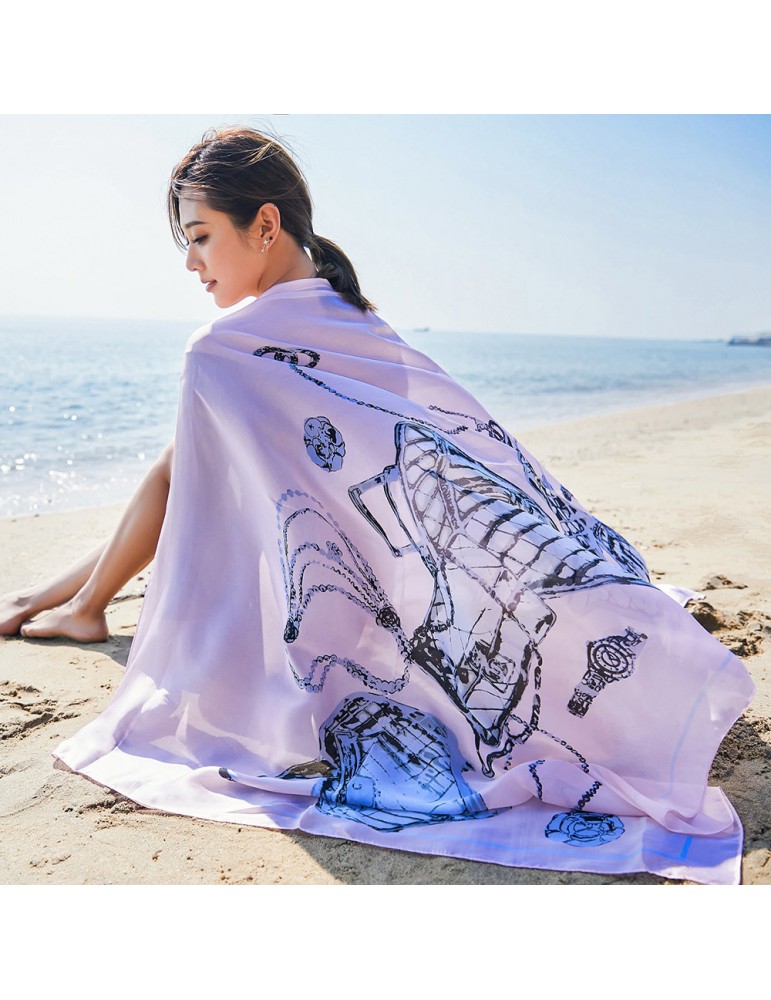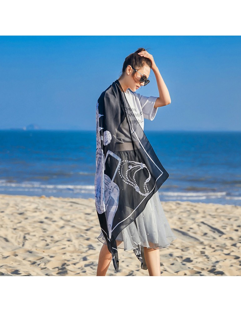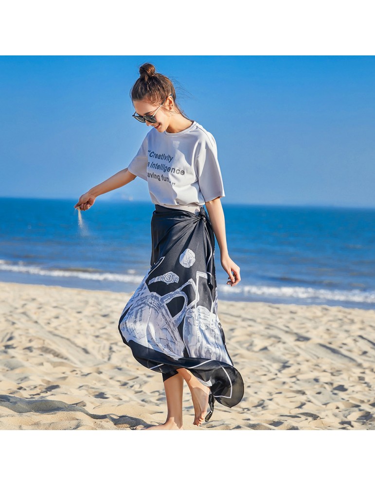 Women Summer Vintage Multifunction Silk Scarf Outdoor Beach Sun Scarf Shawl