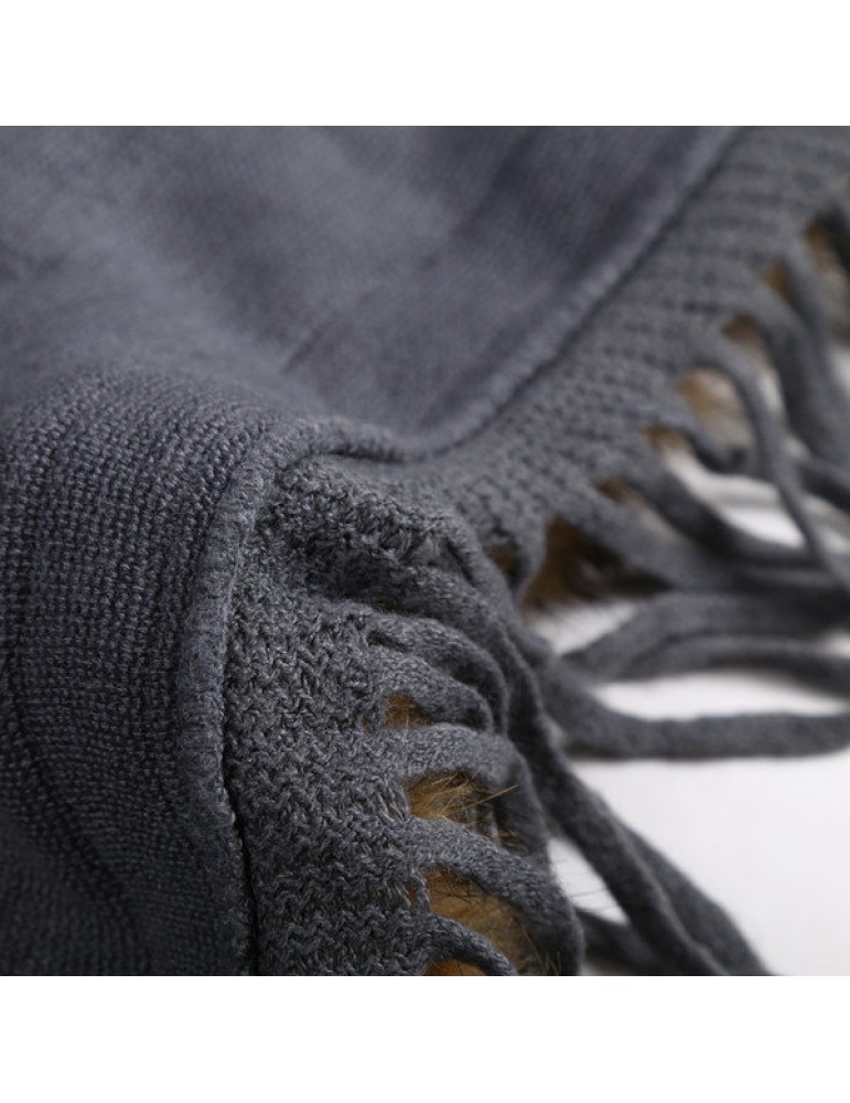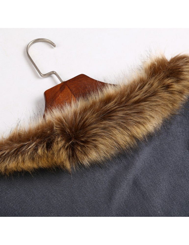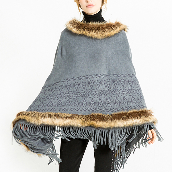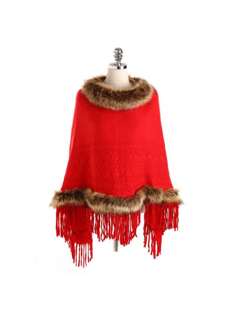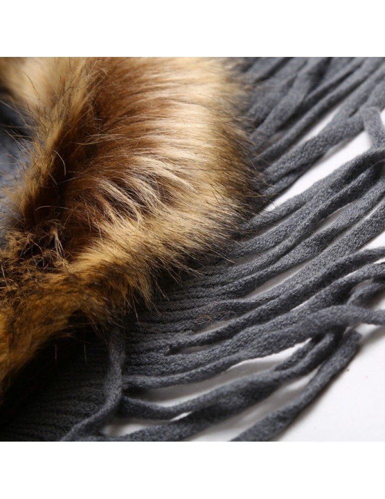 Women Tassel Solid Artificial Fur Poncho With Hood Warm Scarves Cloak Shawl Fashion Fur Hooded Shawl