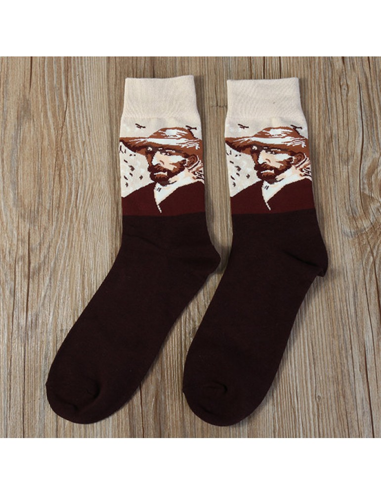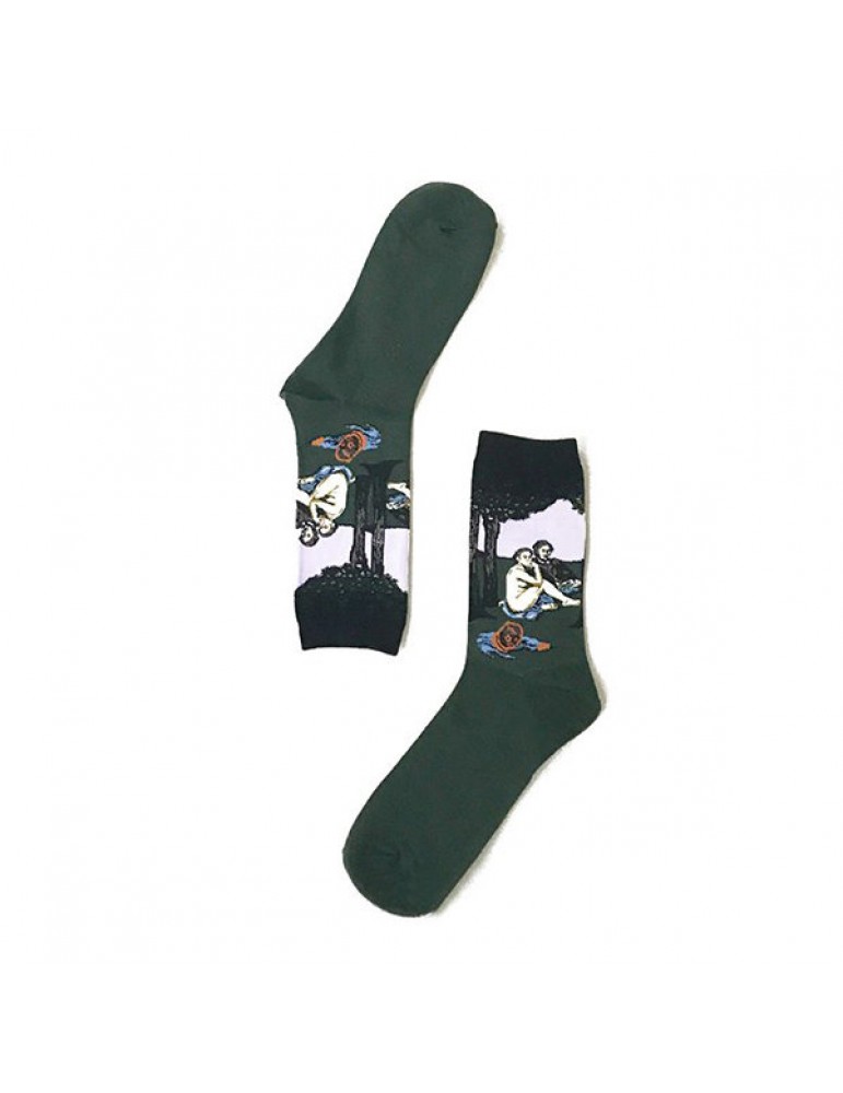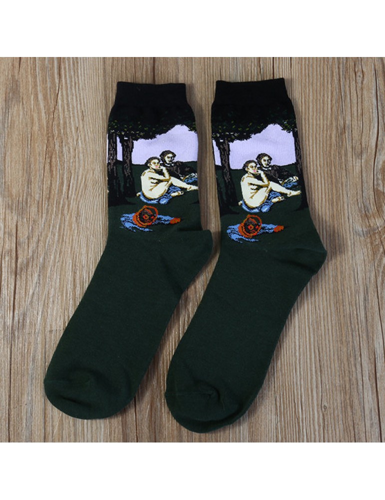 Men Famous Painting Series Cotton Middle Tube Socks Lovers Couple Socks Casual Sport Socks