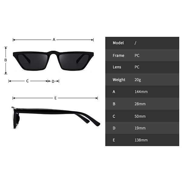 Women Lightweight UV400 HD Square Sunglasses Fashionable Face Thin Cat Eye Sunglasses