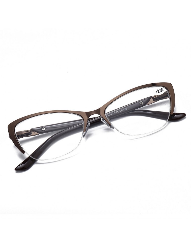 Women's Fashion Vintage Flexible Anti-fatigue Half Frame Metal Square Reading Glasses