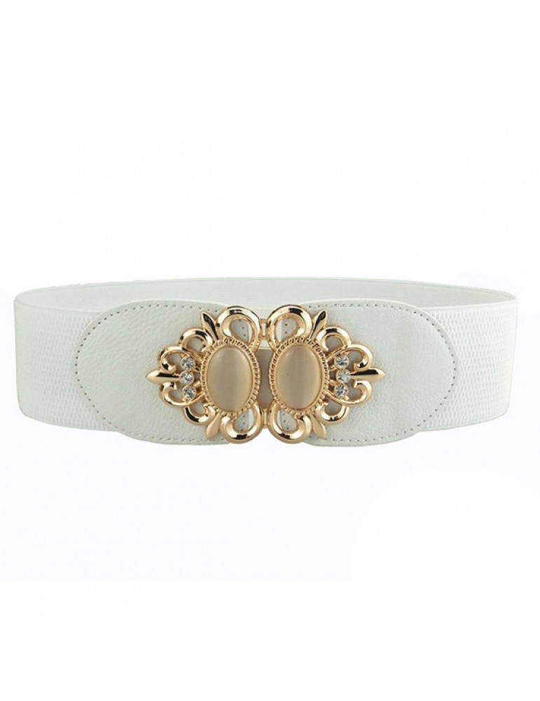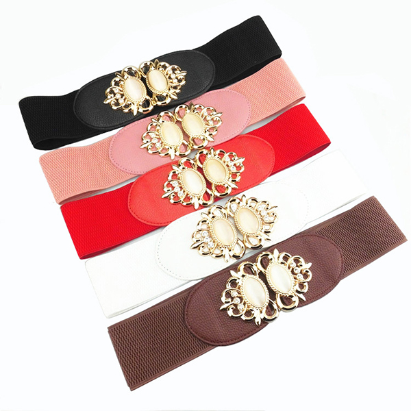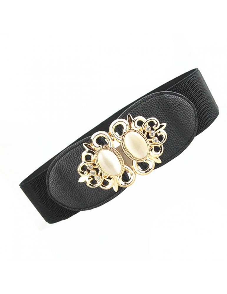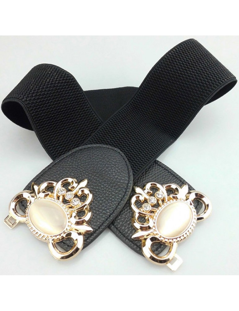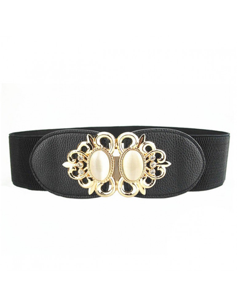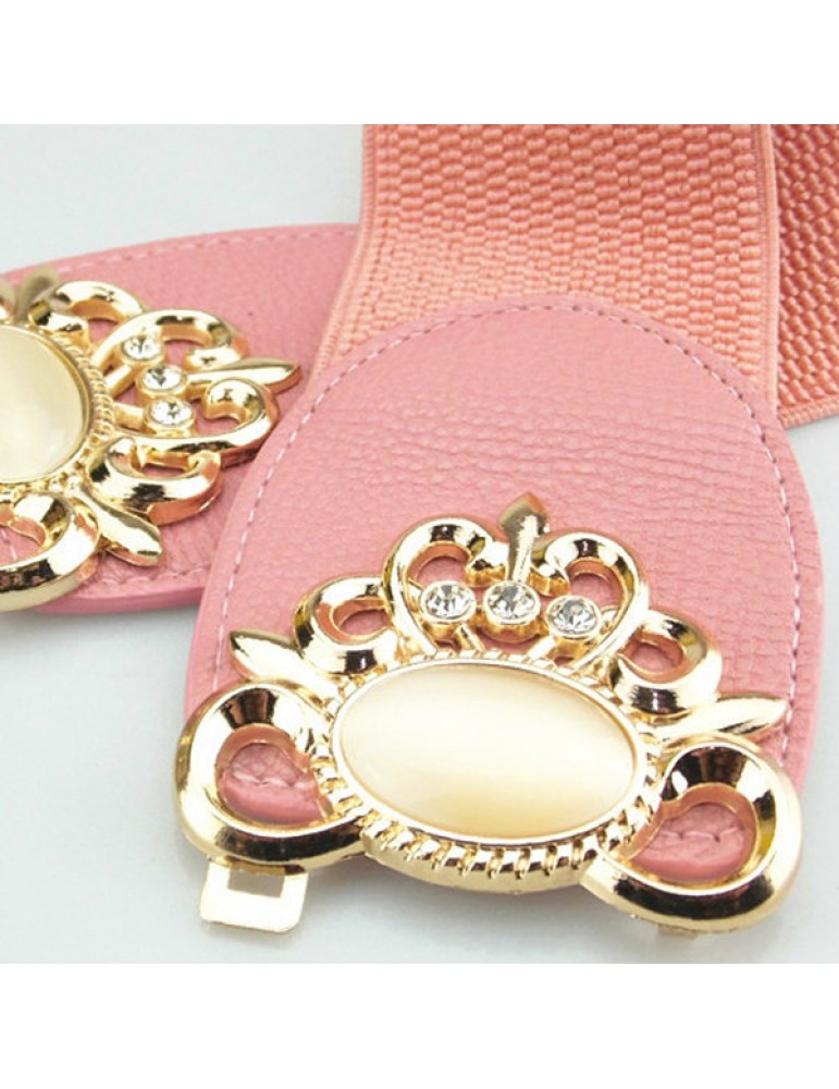 Women Elastic Stretch Corset Waistband Metal Button Diamond Waist Belt
