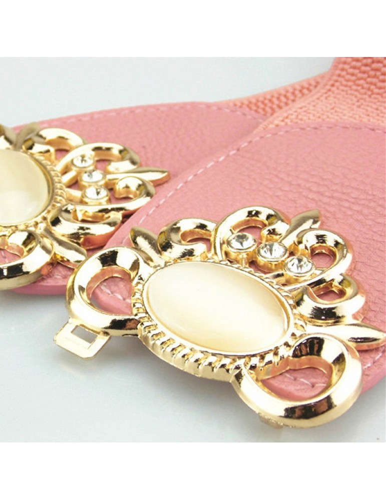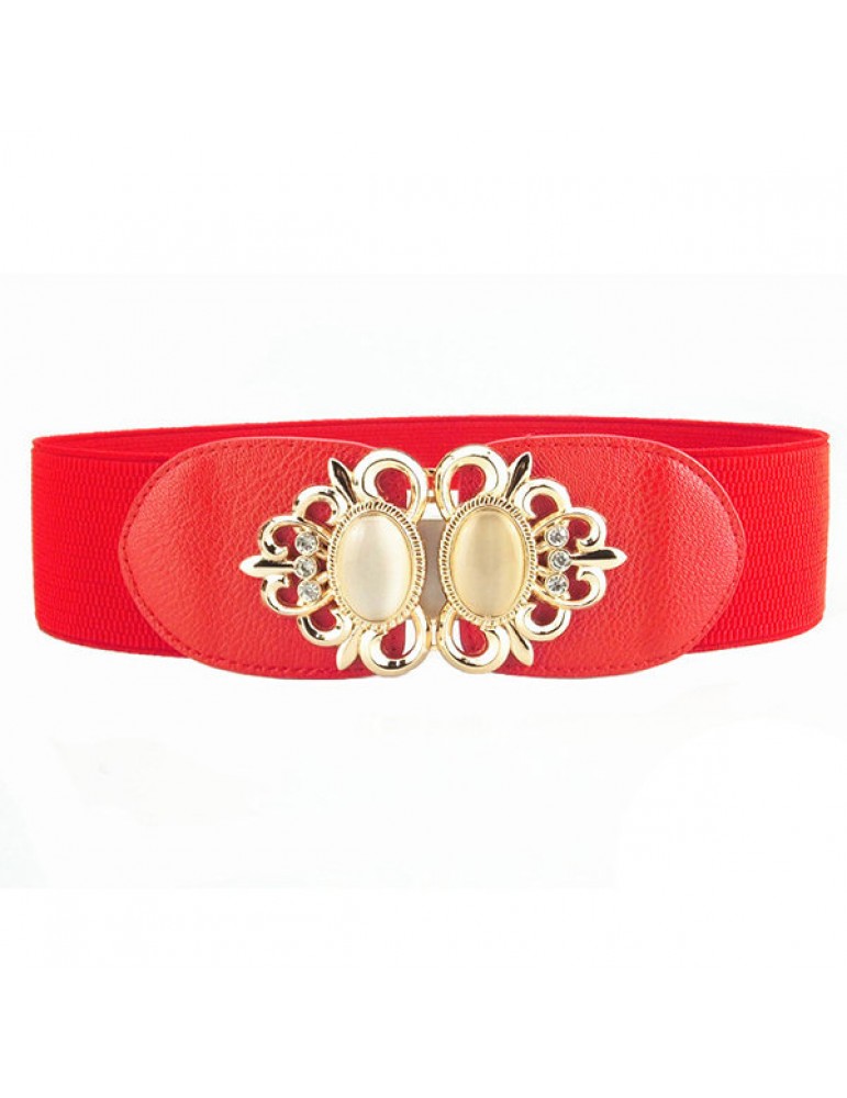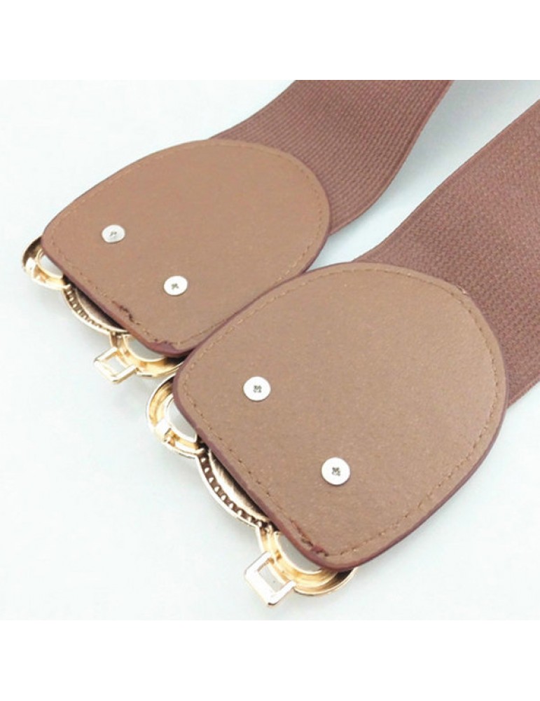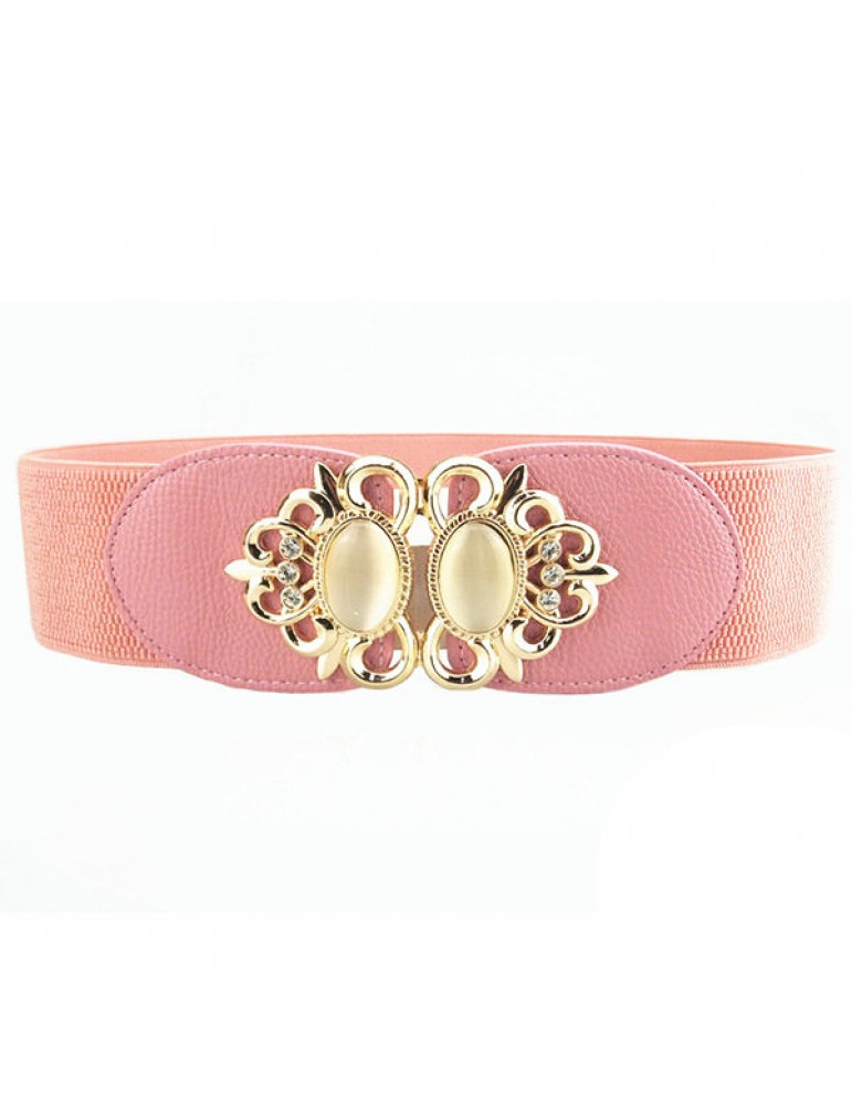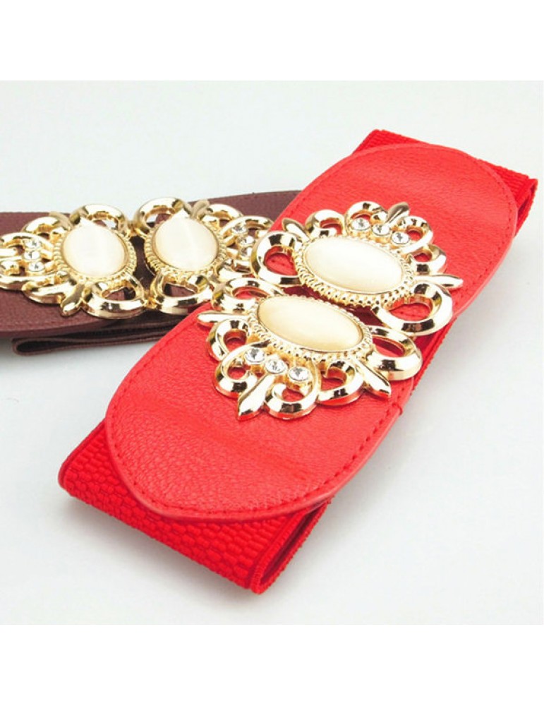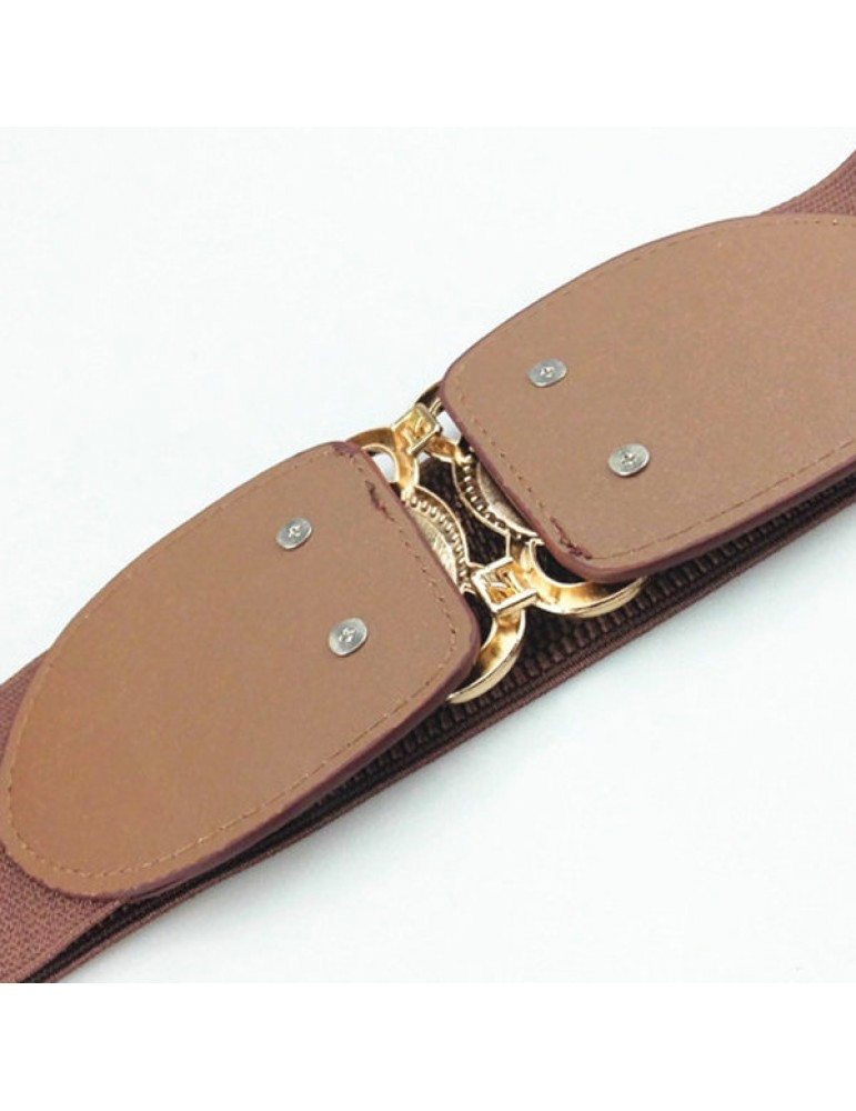 Women Elastic Stretch Corset Waistband Metal Button Diamond Waist Belt