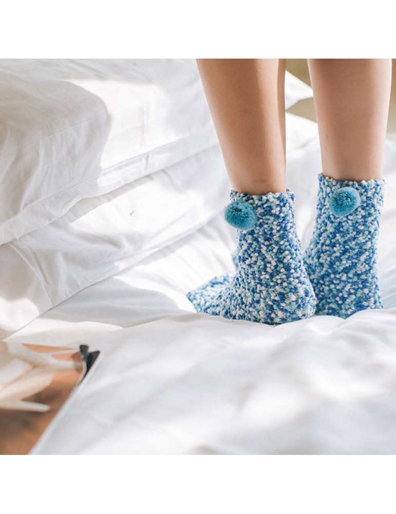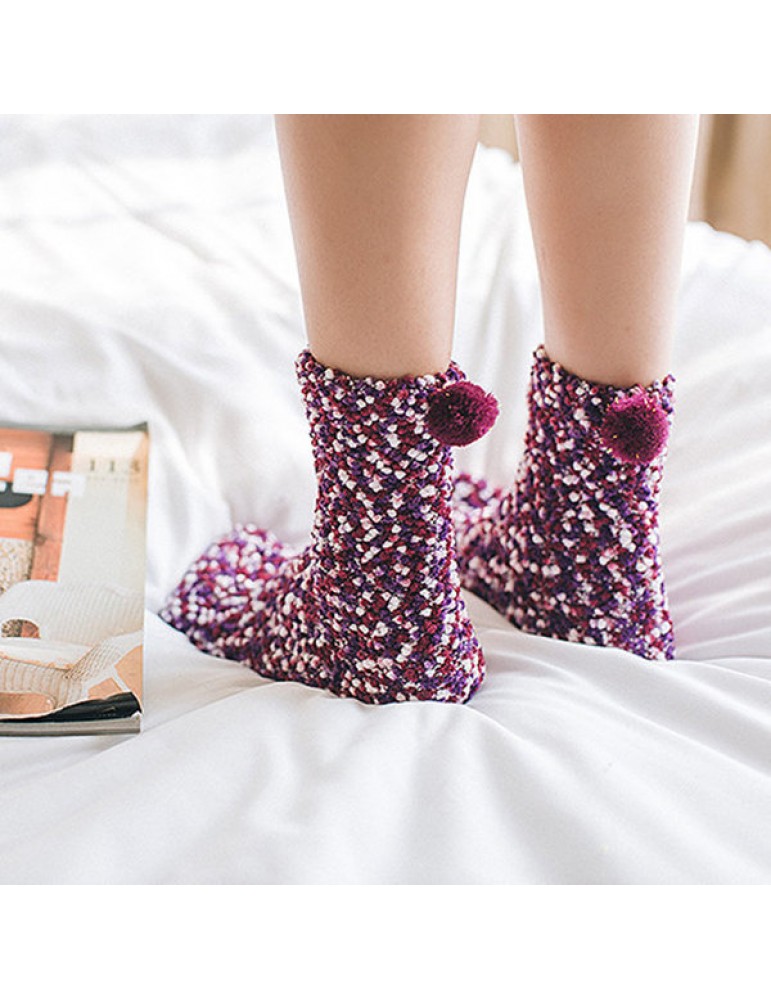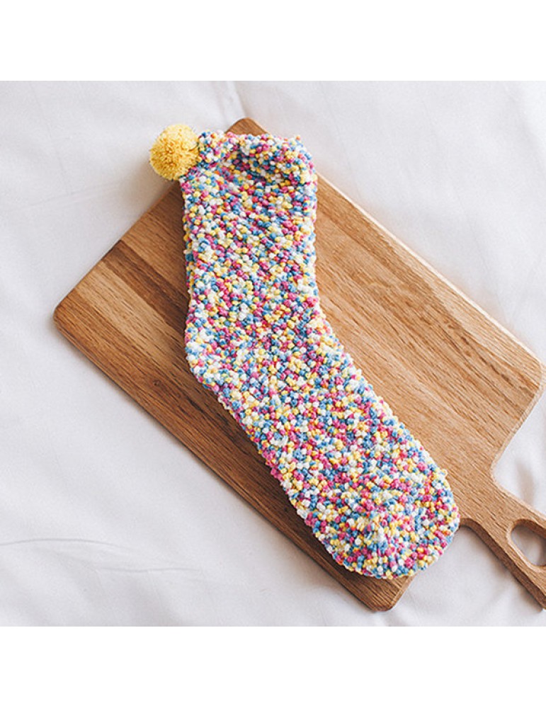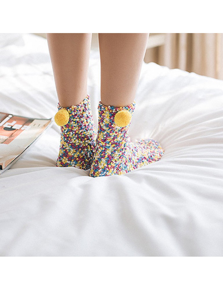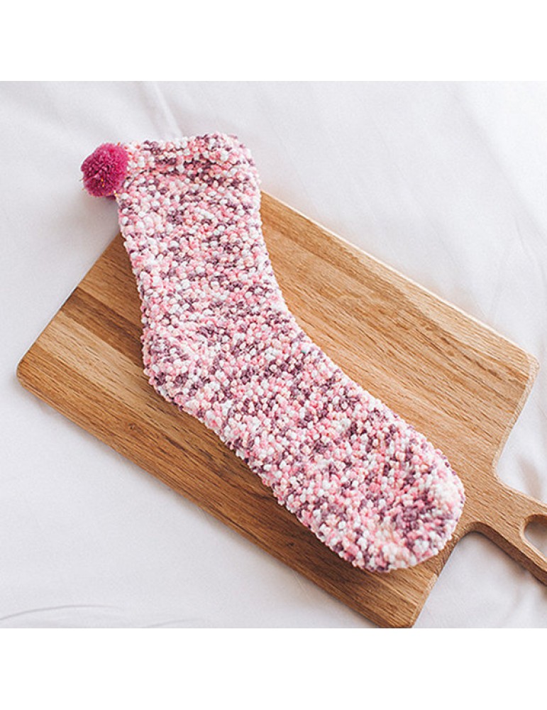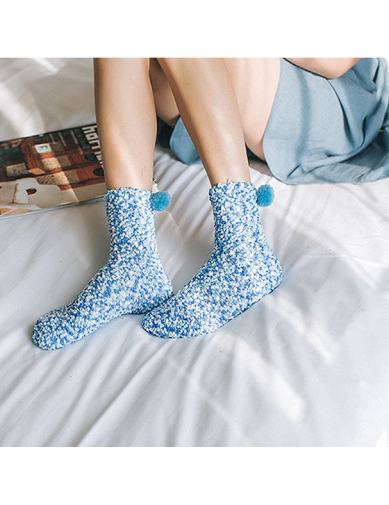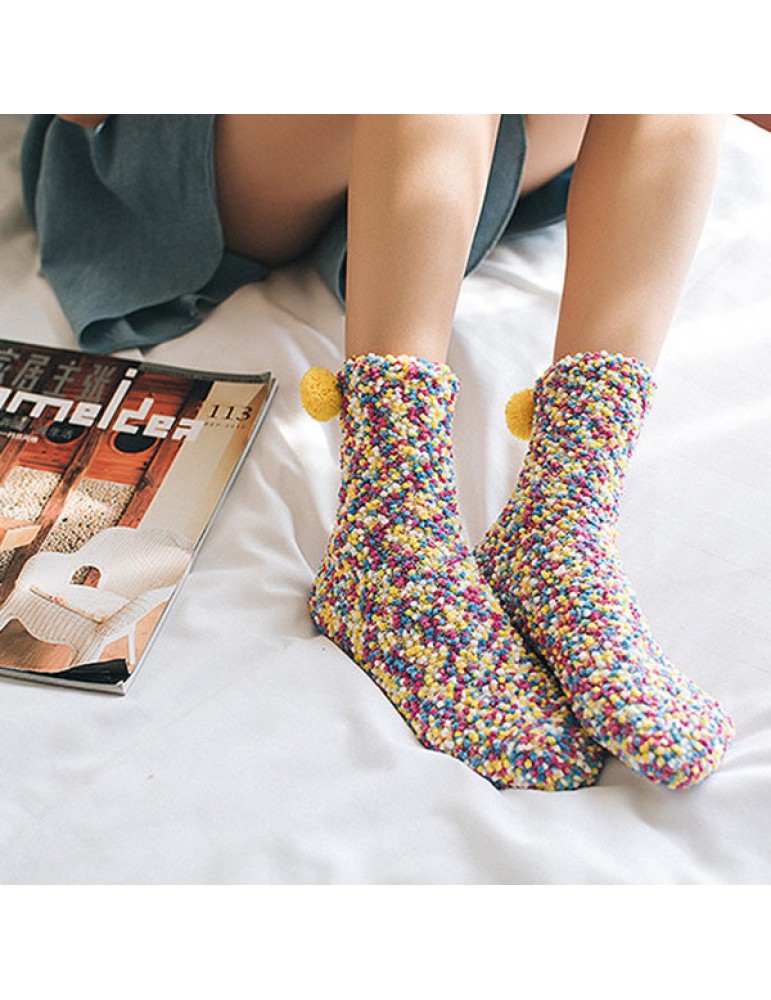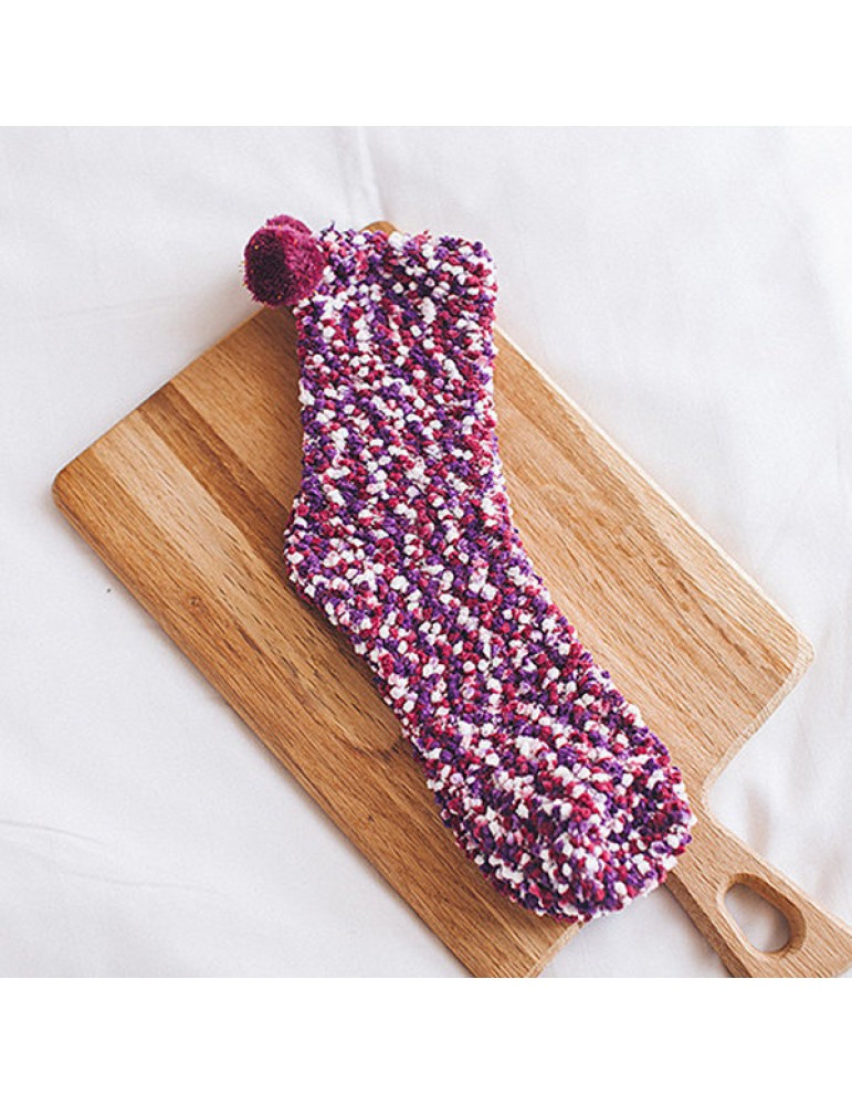 Women Cute Mixed Color Coral Velvet Socks Casual Thicken Warm Middle Tube Socks