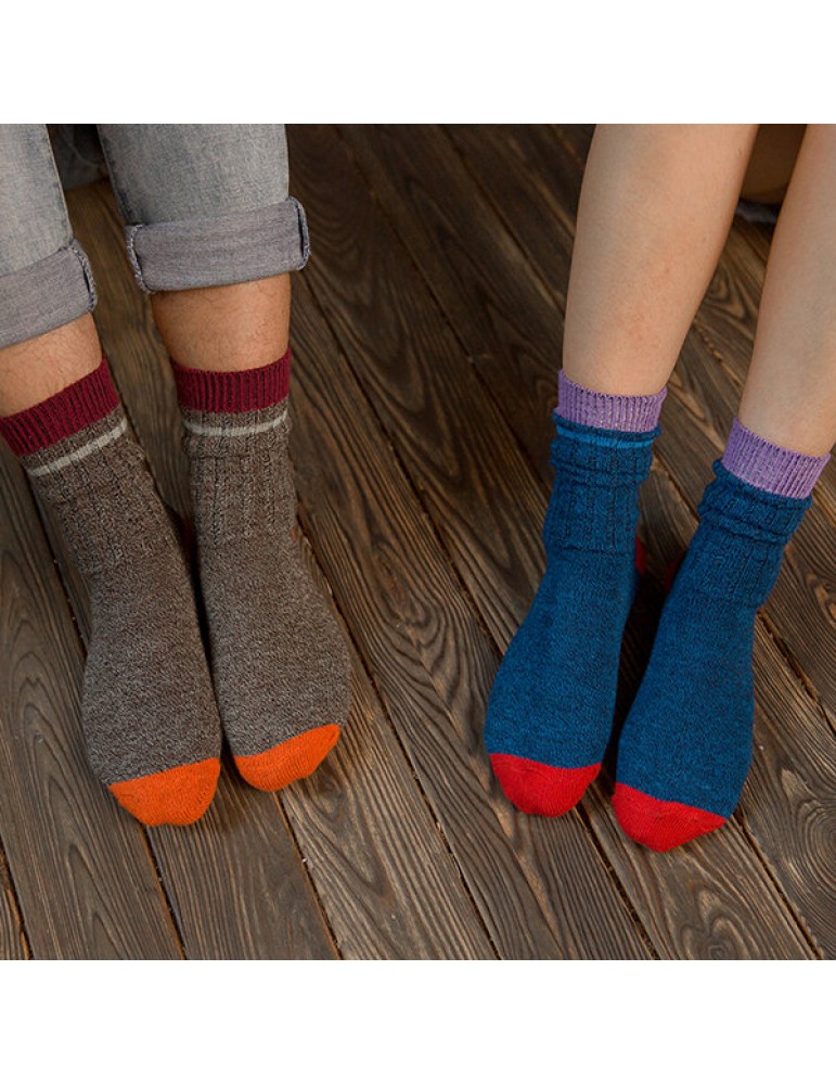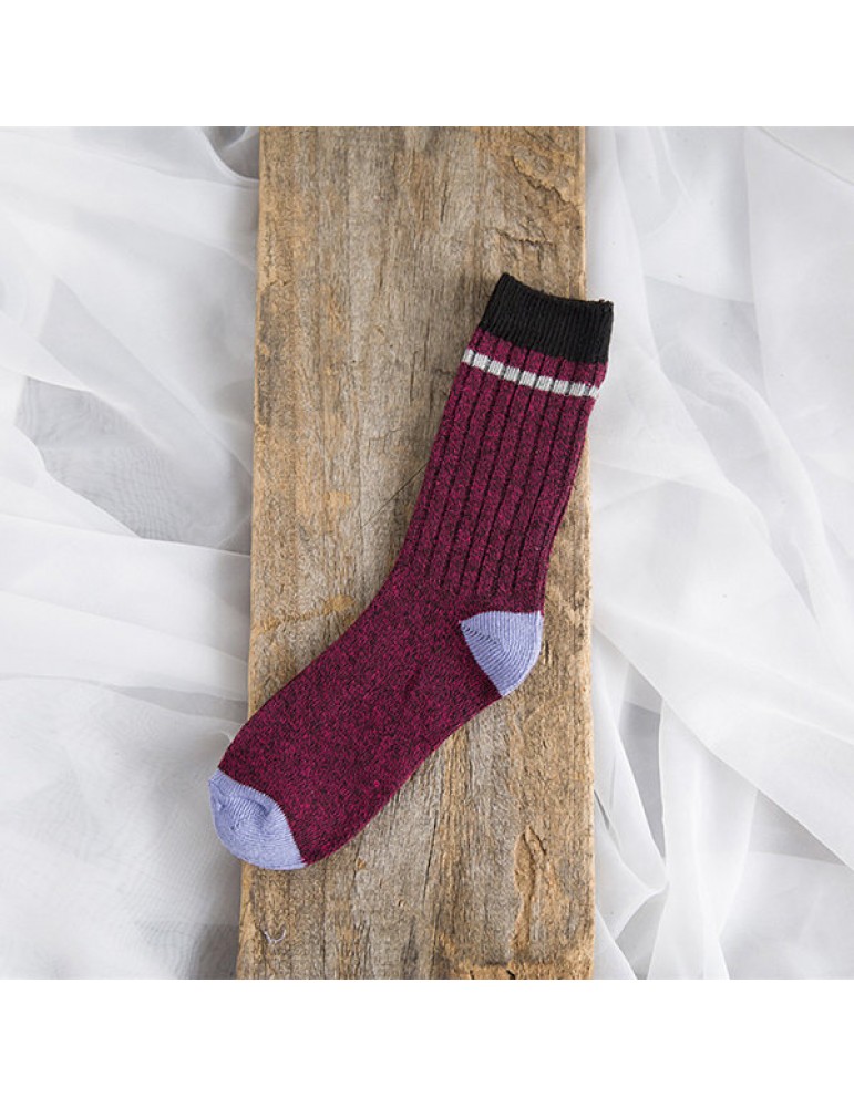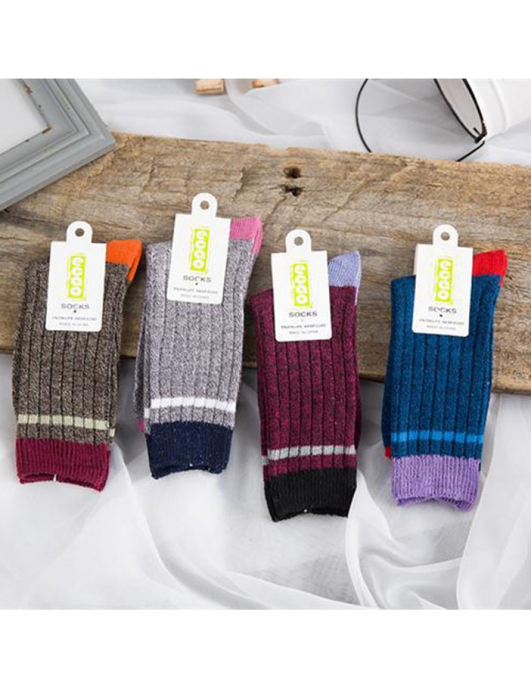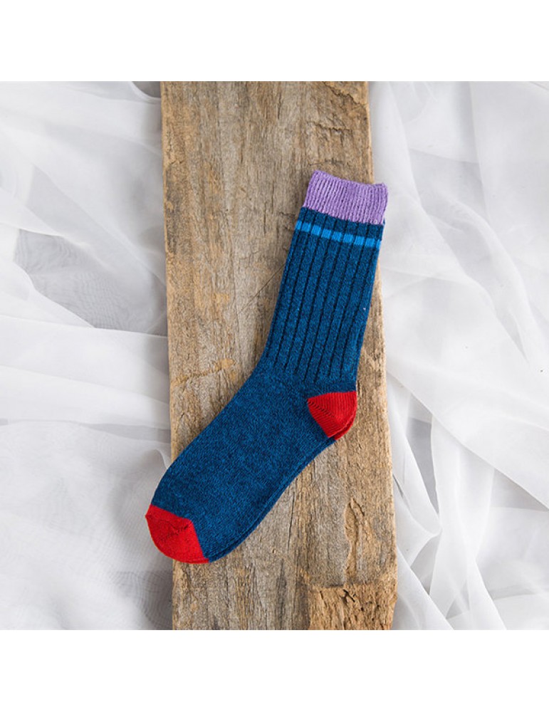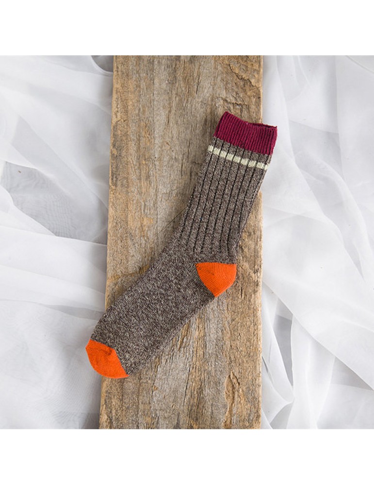 Men Women Vintage Patchwork Breathable Cotton Stripe Middle Tube Socks Comfortable Kintted Socks