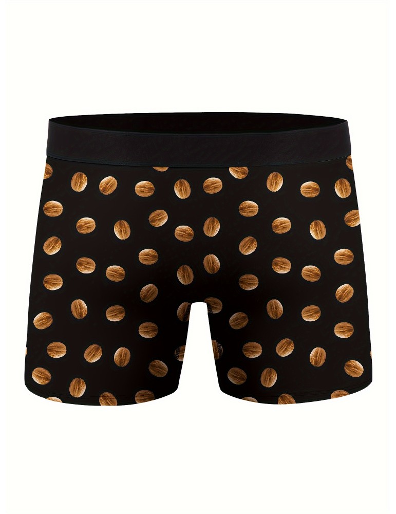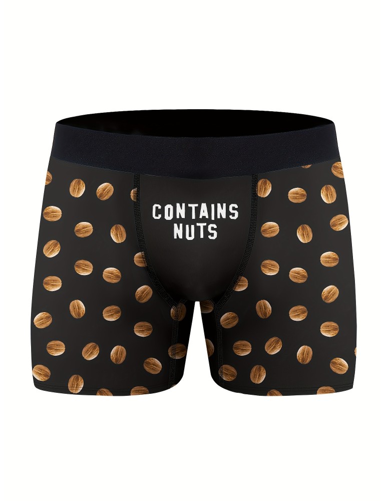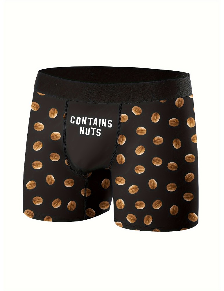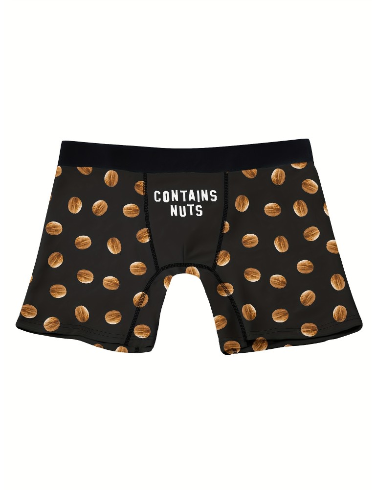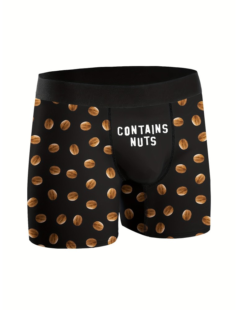 Contains Nuts Print Men's Fashion Novelty Boxer Briefs Shorts, Breathable Comfy High Stretch Boxer Trunks, Men's Underwear
