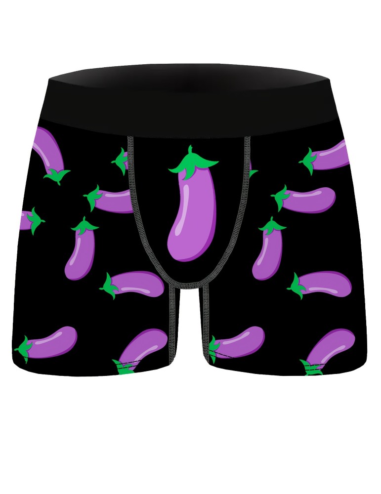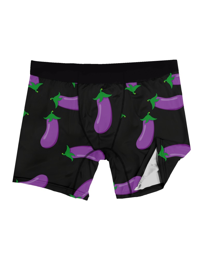 Men's Purple Eggplant Print Boxer Briefs - Breathable and Comfy High Stretch Trunks