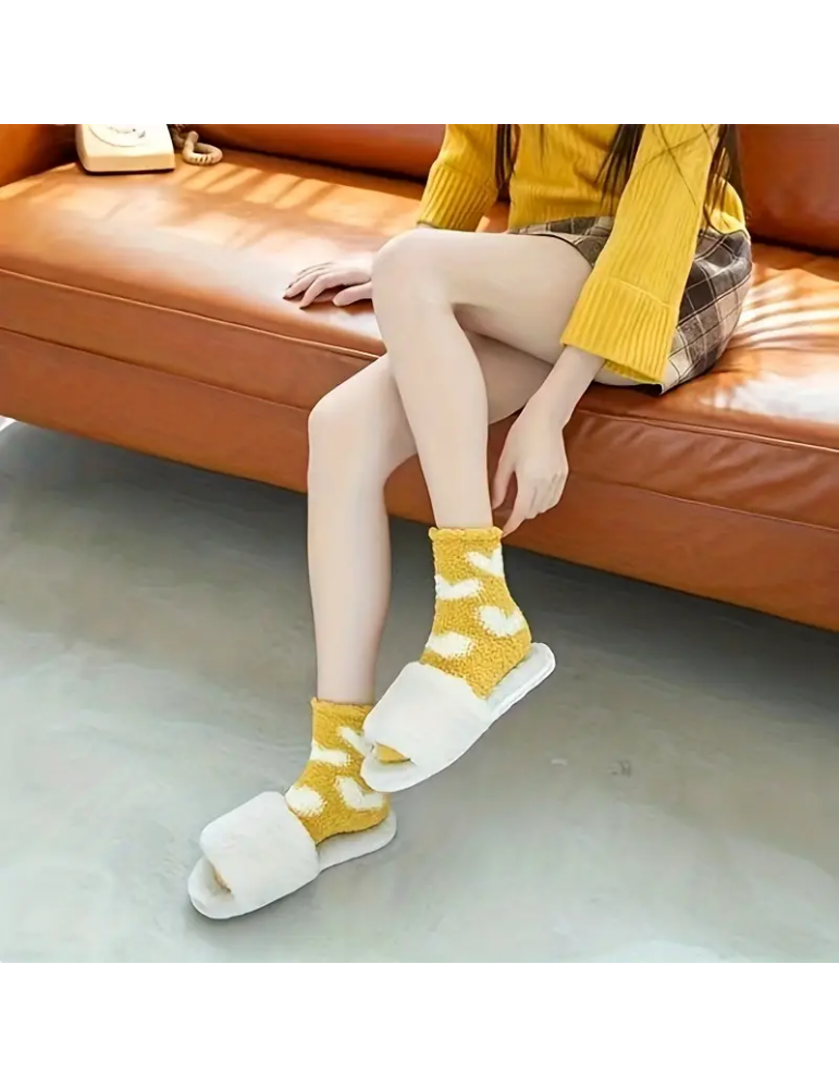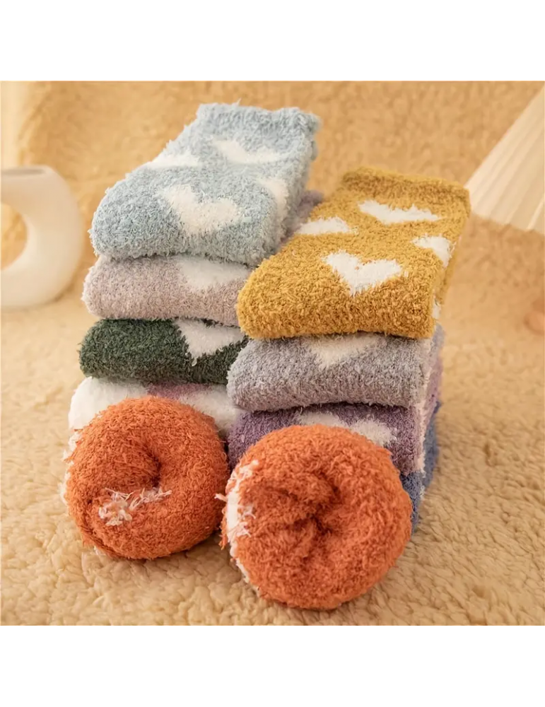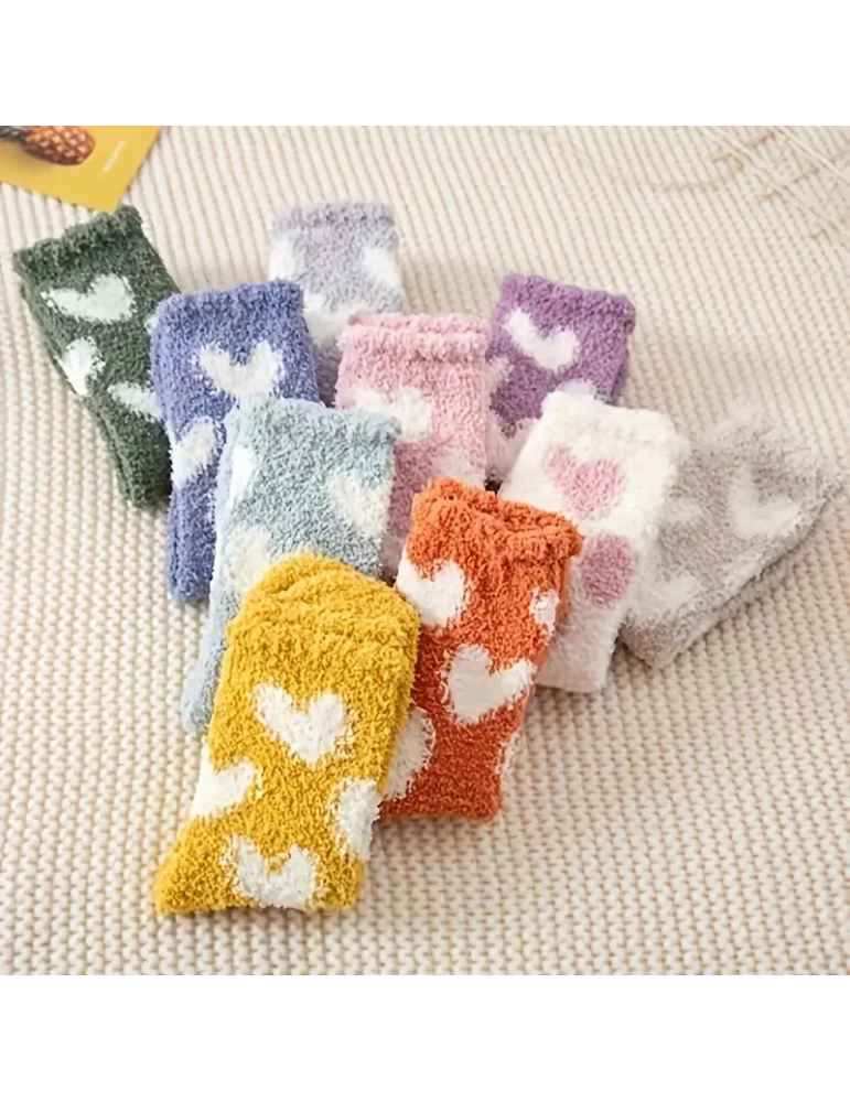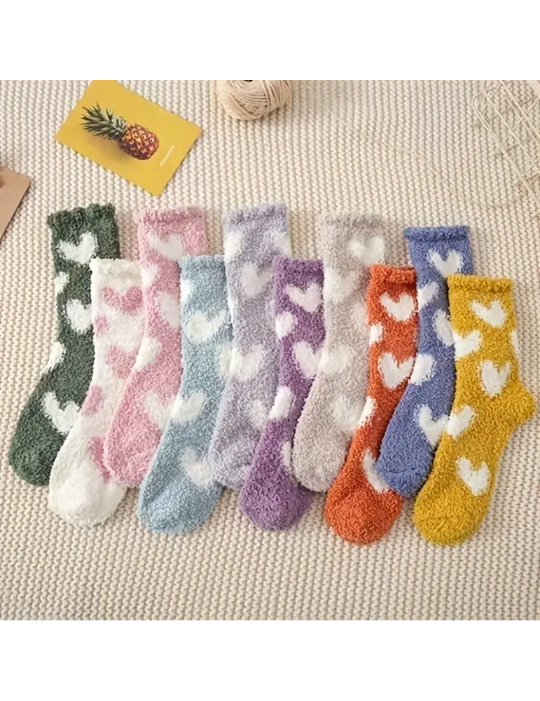 10 Pairs Heart Print Socks, Comfy & Warm Fuzzy Floor Socks, Women's Stockings & Hosiery