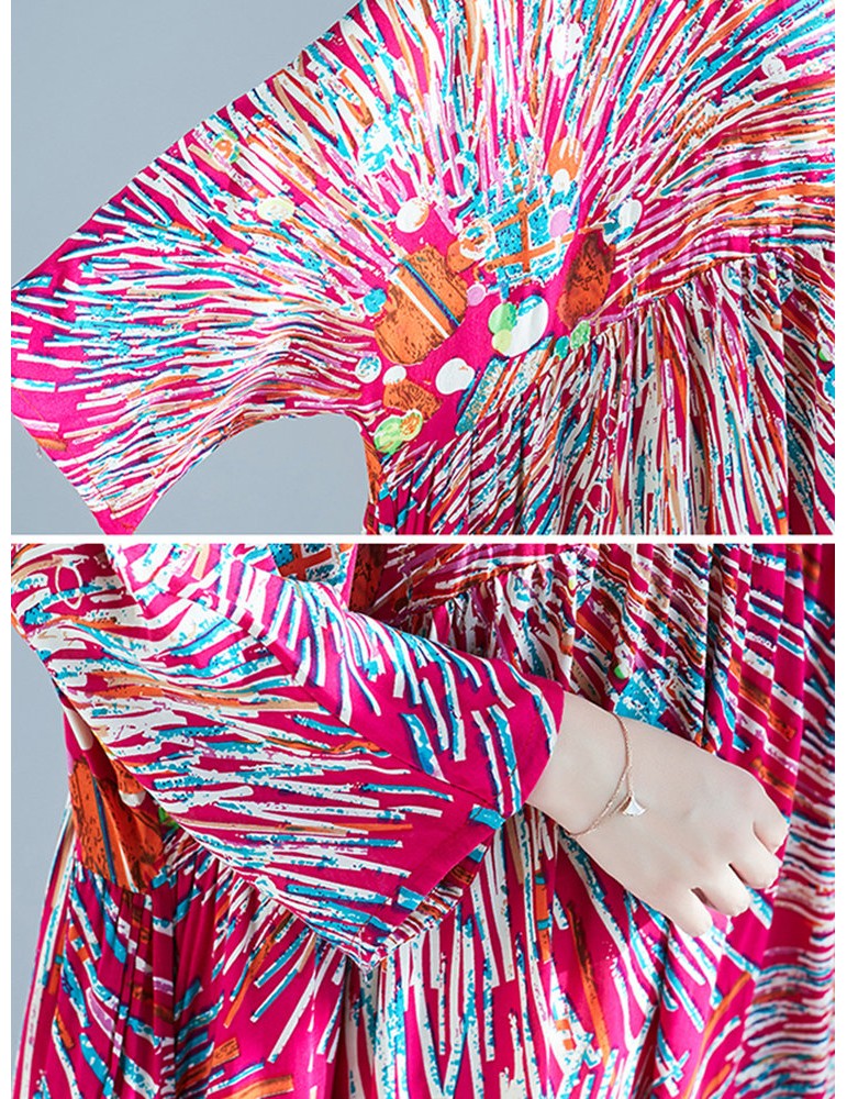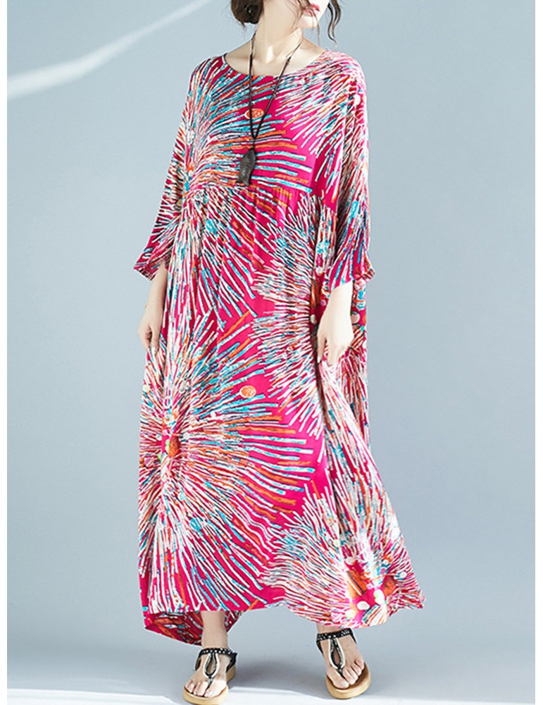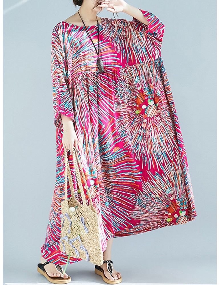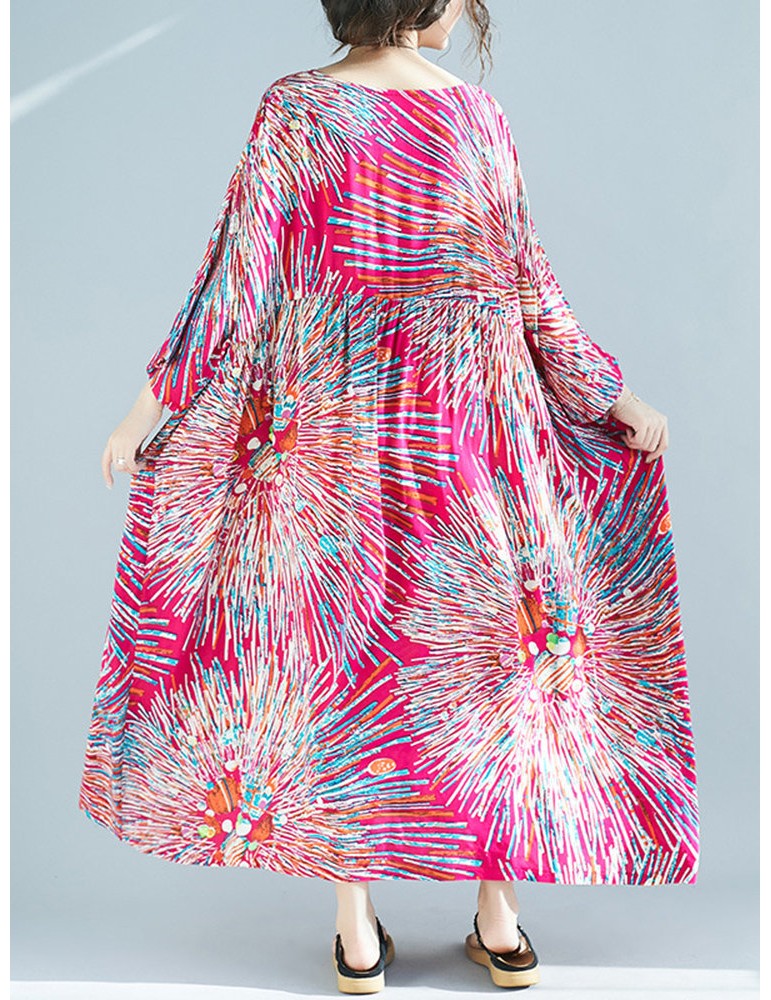 Firework Print Loose 3/4 Sleeve Maxi Dress For Women