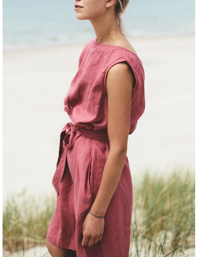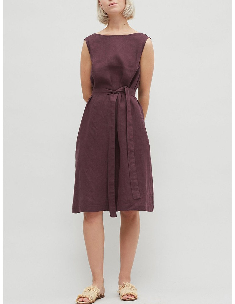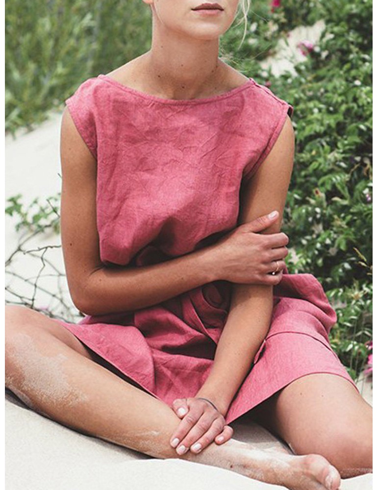 Vintage Solid Color Crew Neck Sleeveless Dress